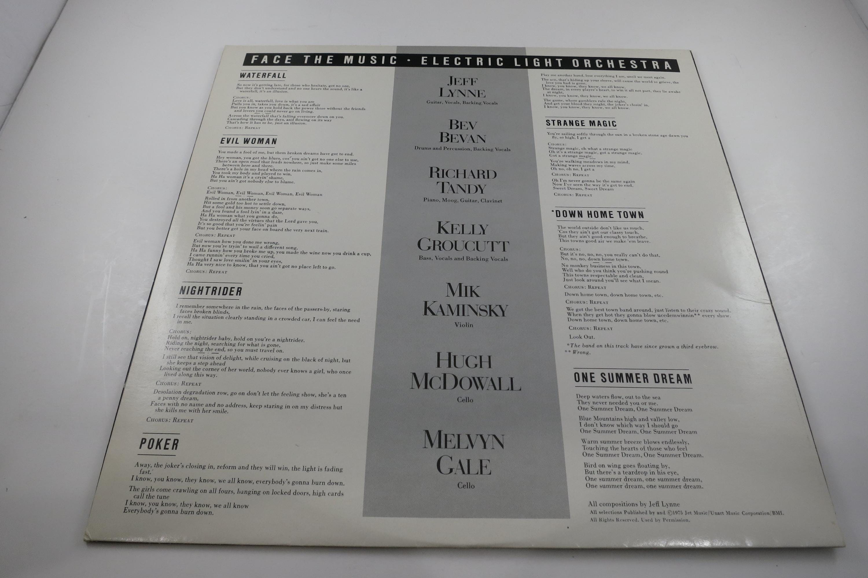 Vintage 1975 Vinyl LP Record Face the Music Electric Light Orchestra Excellent Condition. Original cover is in excellent condition and includes the original inner sleeve. Record is excellent. Tracks are as follows