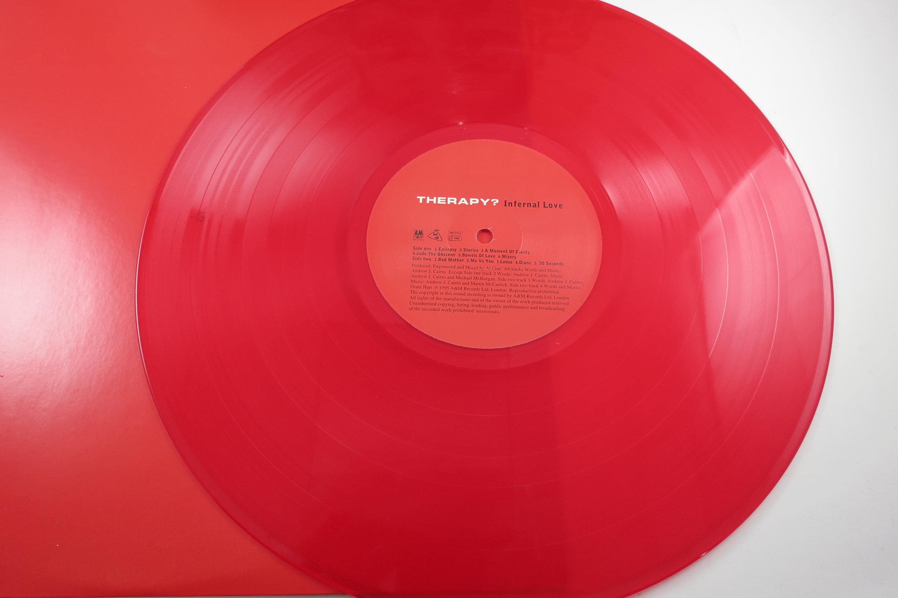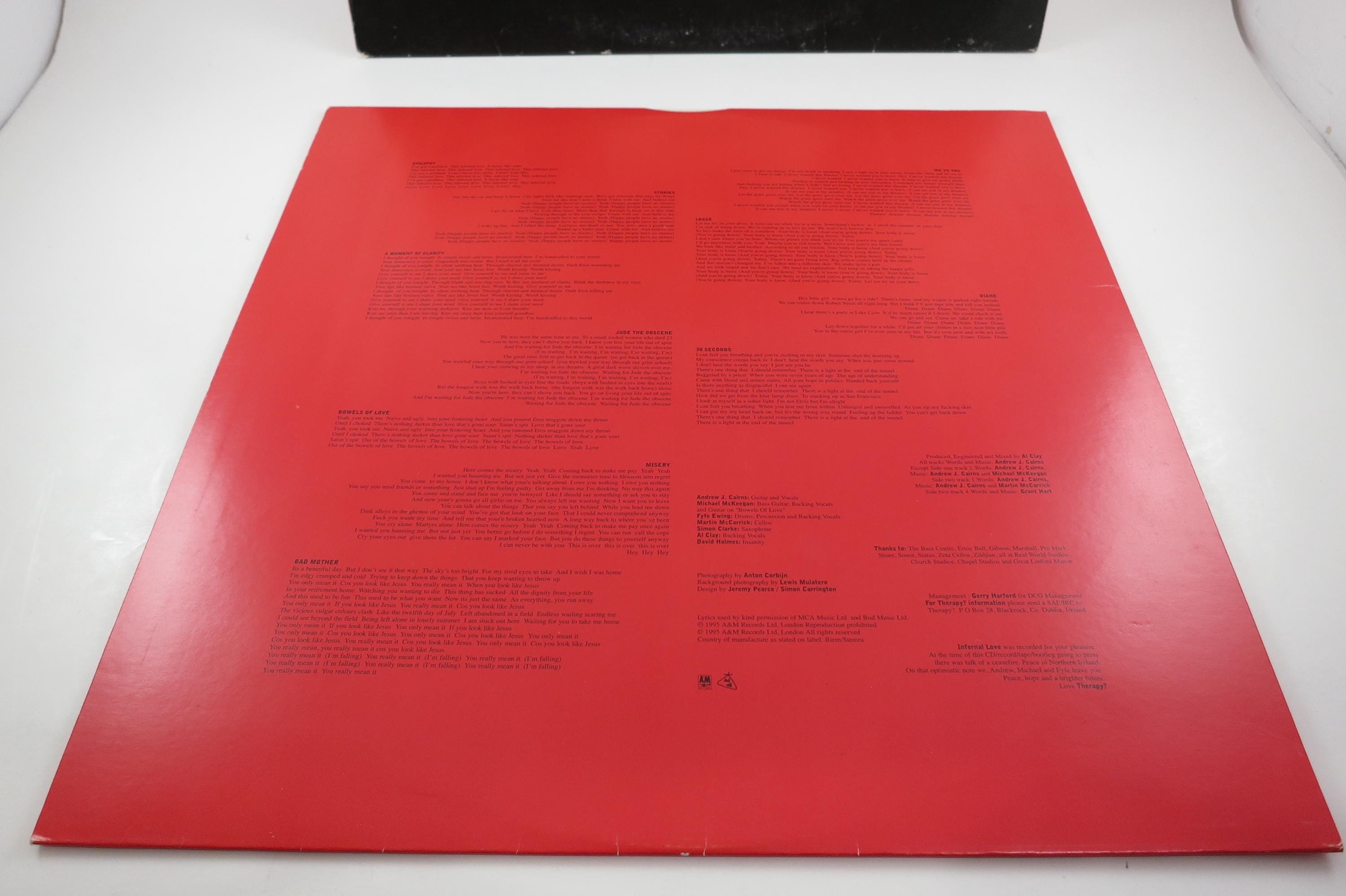1995 Vinyl LP Record Infernal Love Therapy? Excellent Condition Red Vinyl Pressing Rare. Original cover is in very good condition and includes the original inner paper sleeve. Record is excellent with light marks. Red Vinyl Pressing. Rare Alternative Rock Record. Tracks are as follows