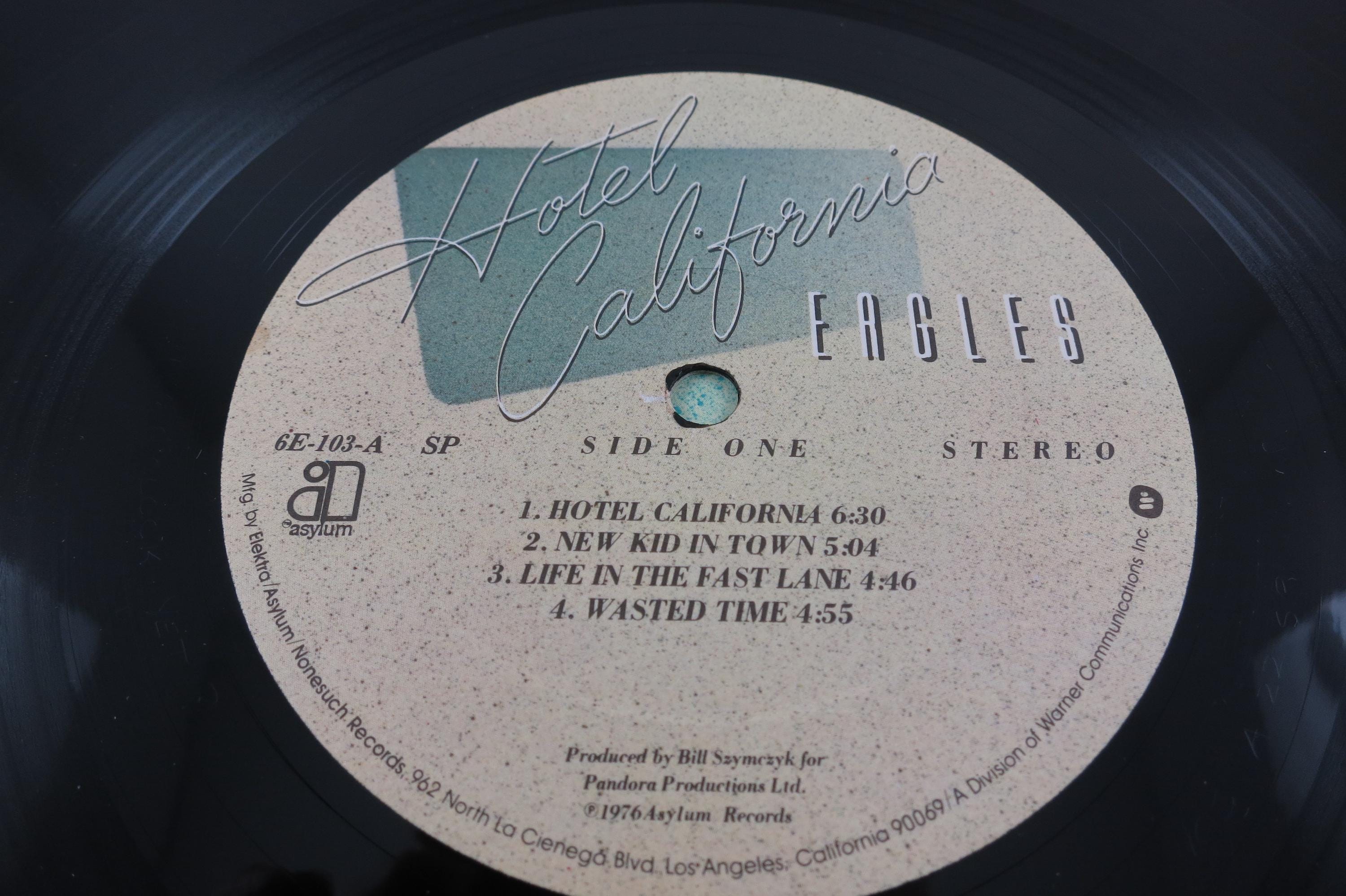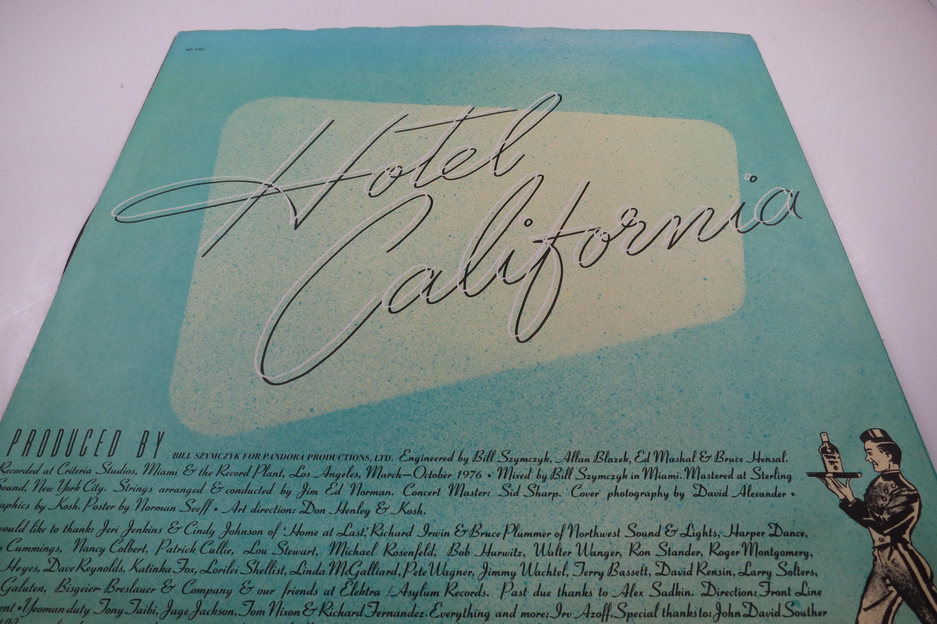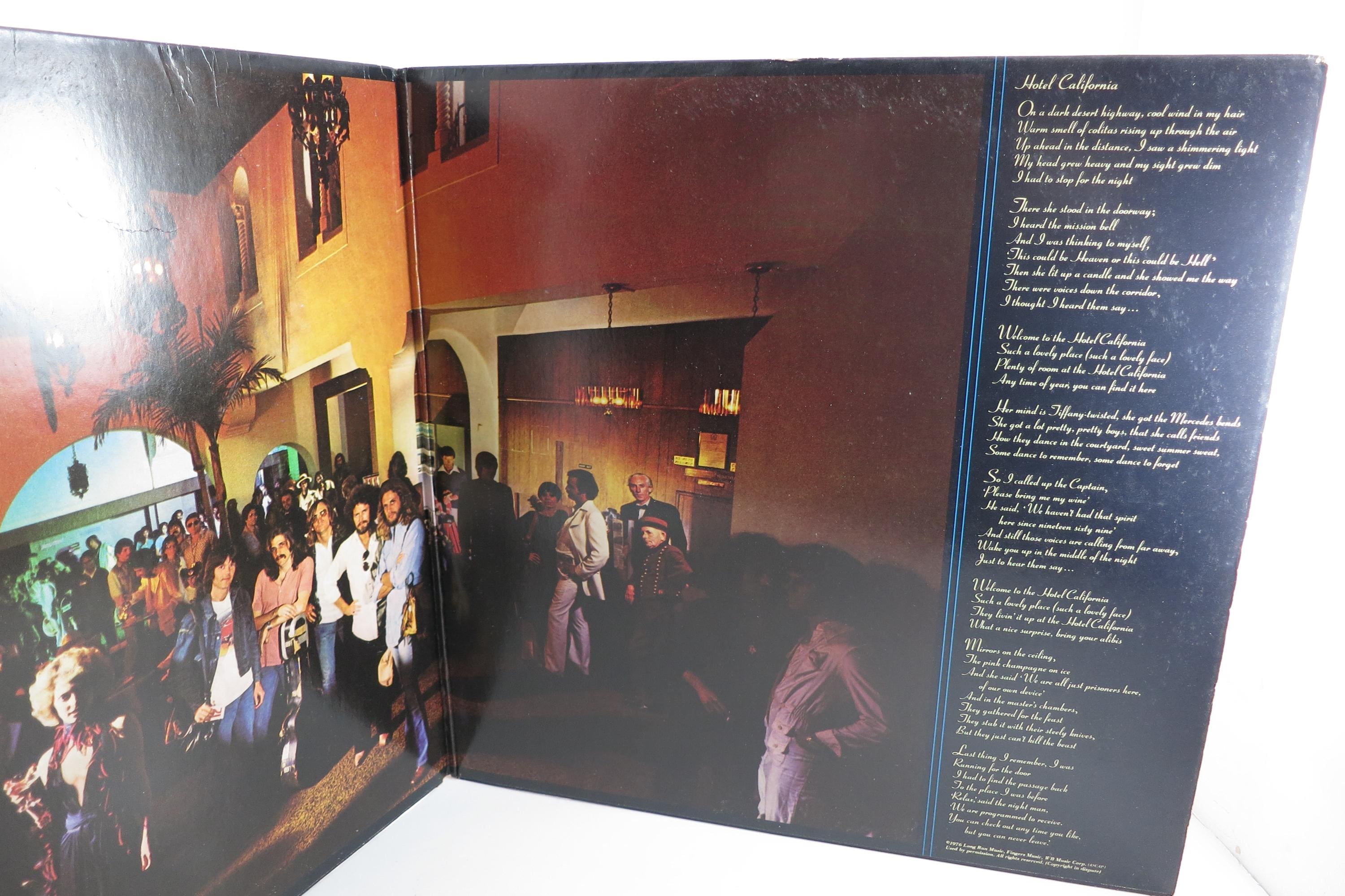 Vintage 1976 Vinyl LP Record The Eagles Hotel California Very Good Condition. Original gate fold cover is in very good condition and includes the original inner paper sleeve and poster. Record is very good. Record has light marks, has been tested and plays great with no skips or sticks. Tracks are as follows