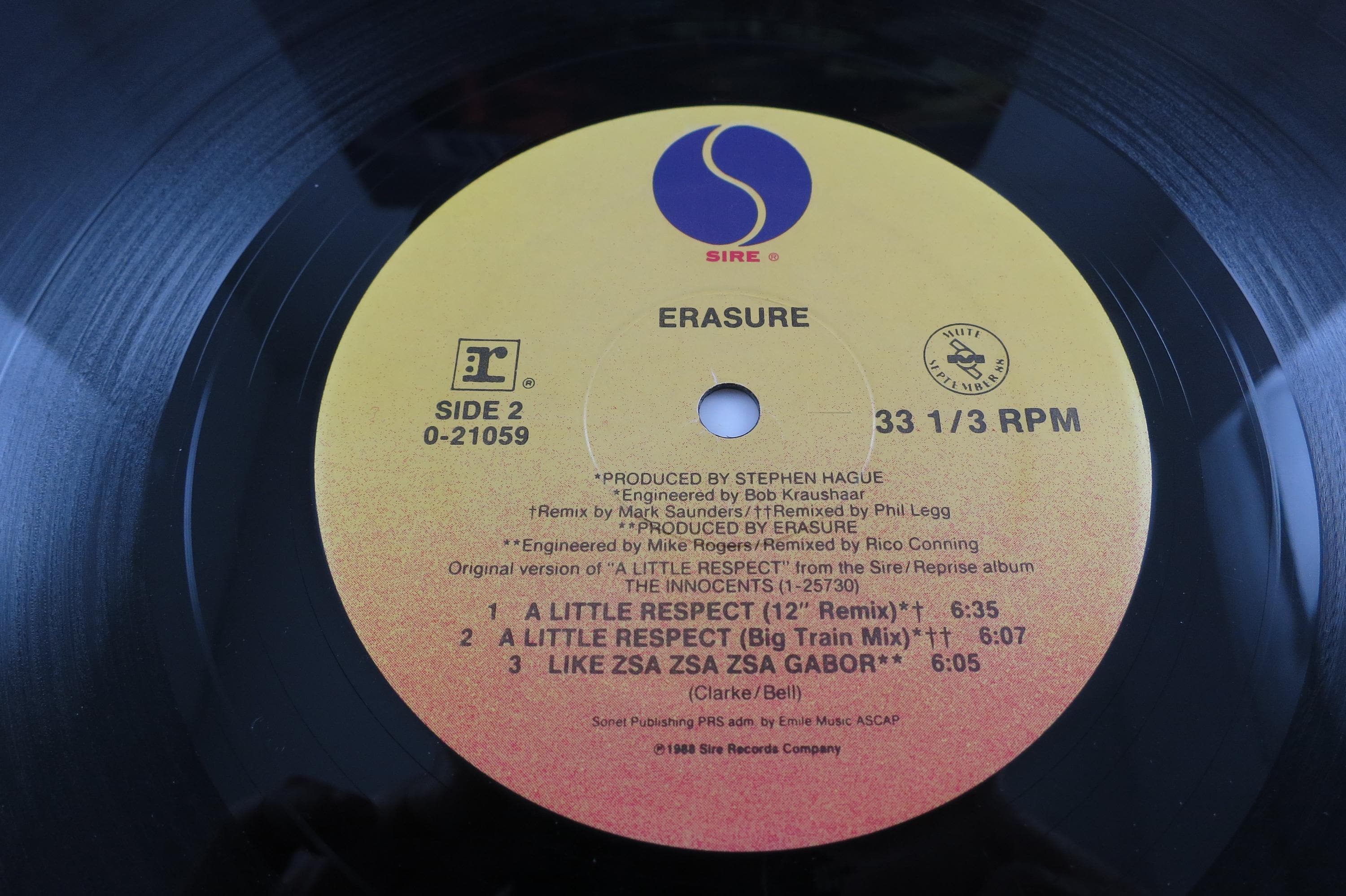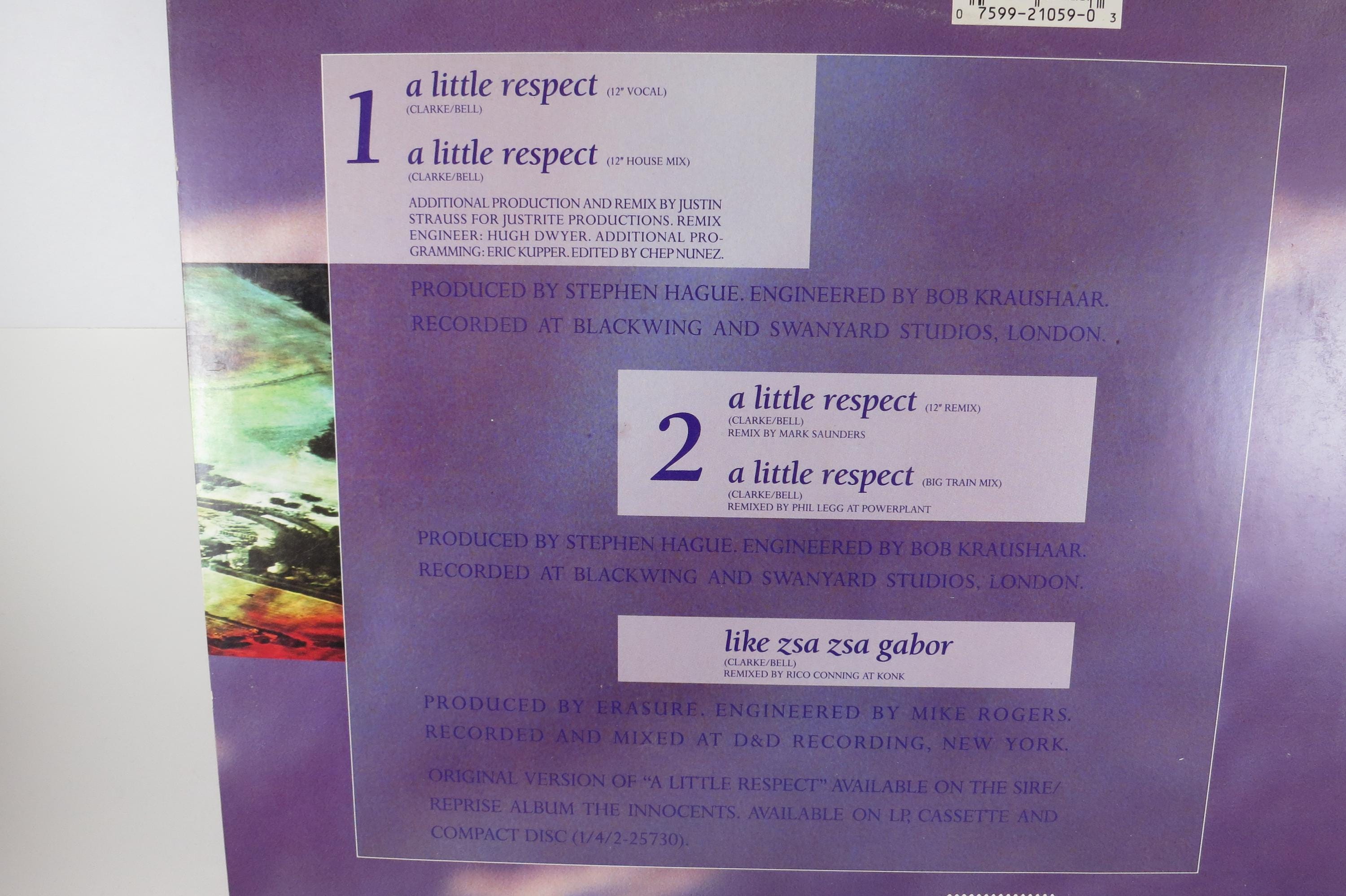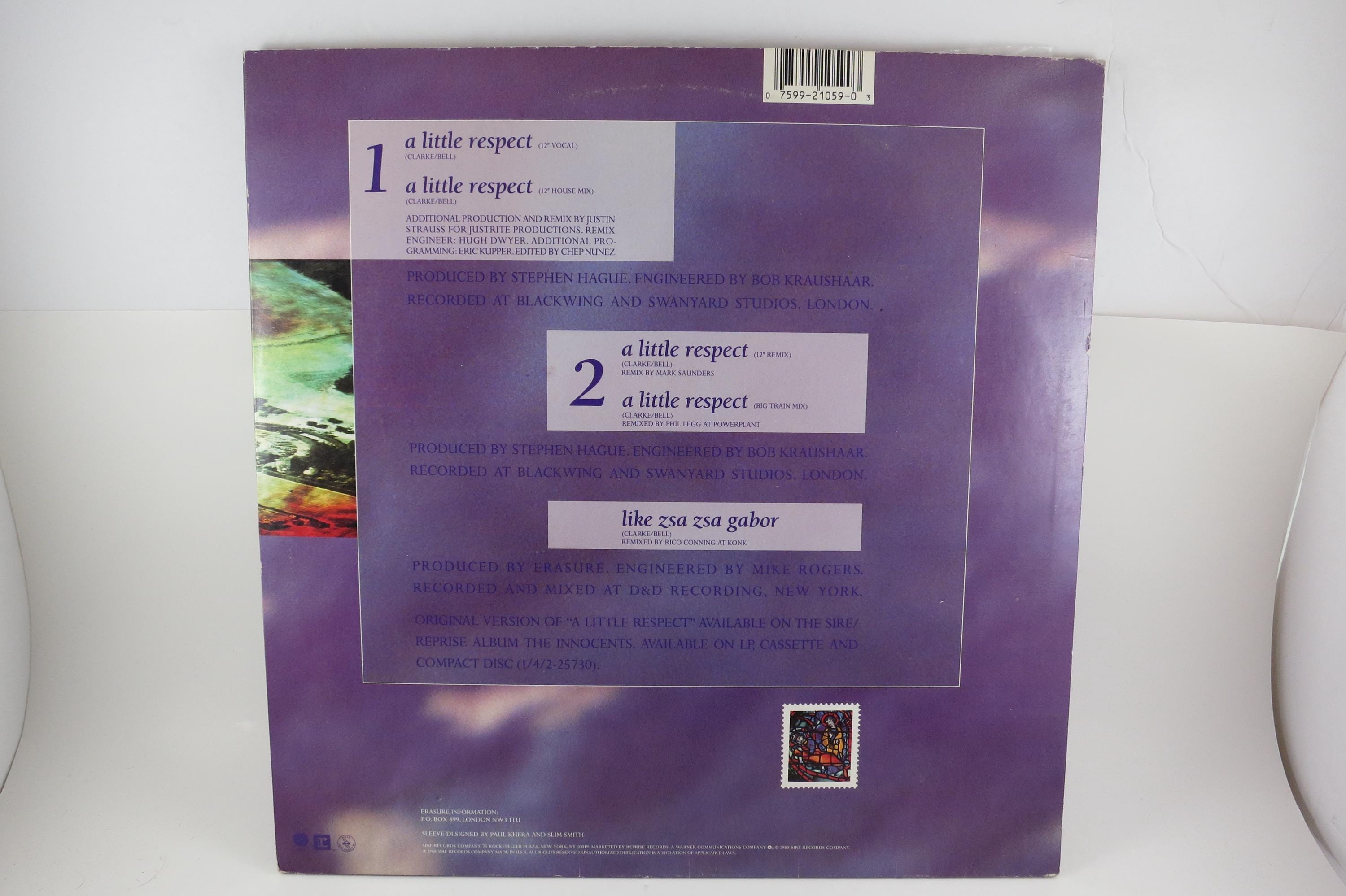 Vintage 1988 Vinyl EP Record Erasure A Little Respect EX. Original cover is in excellent condition and includes the inner paper sleeve. Record is excellent as well with light marks. Tracks are as follows