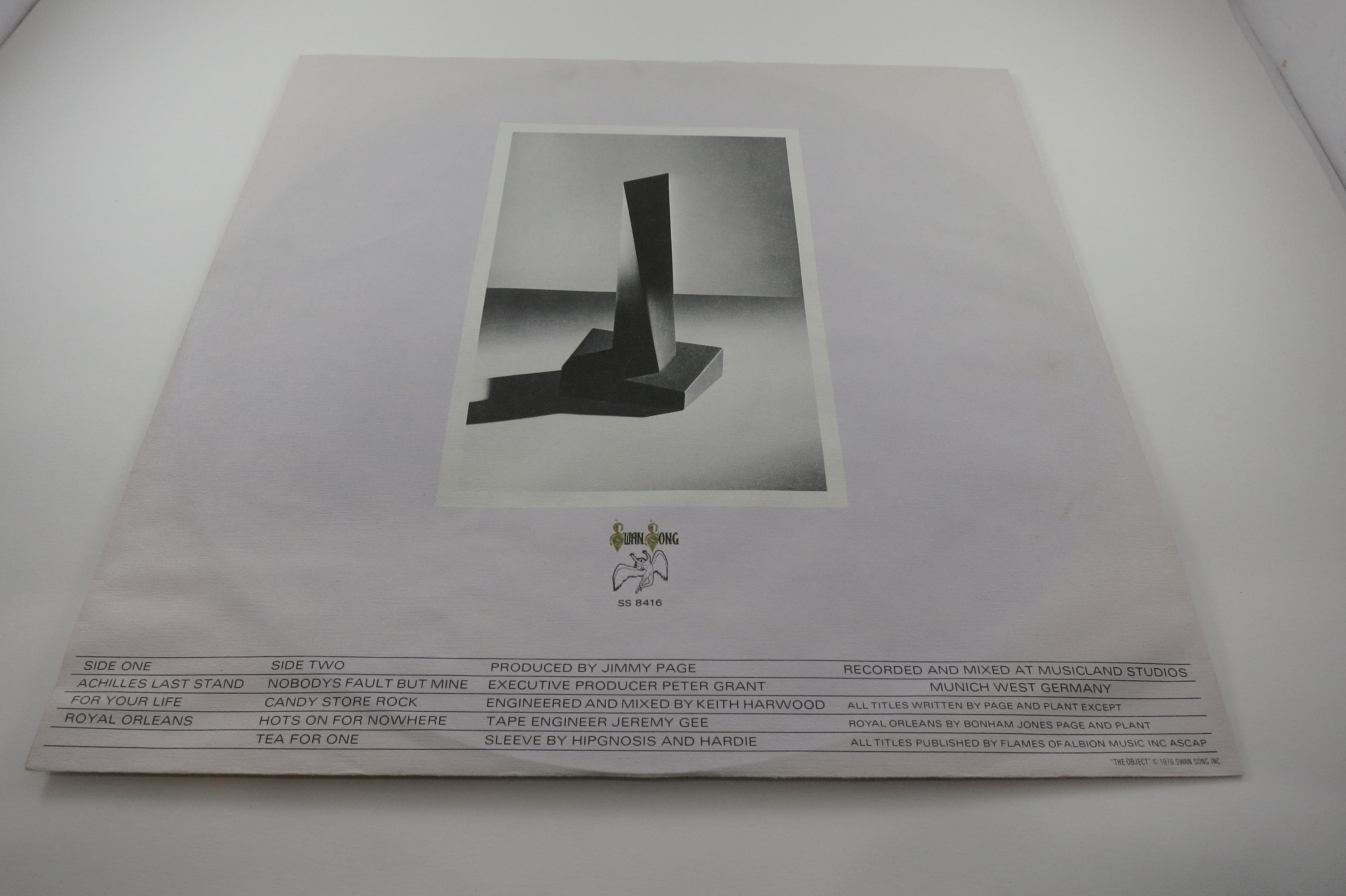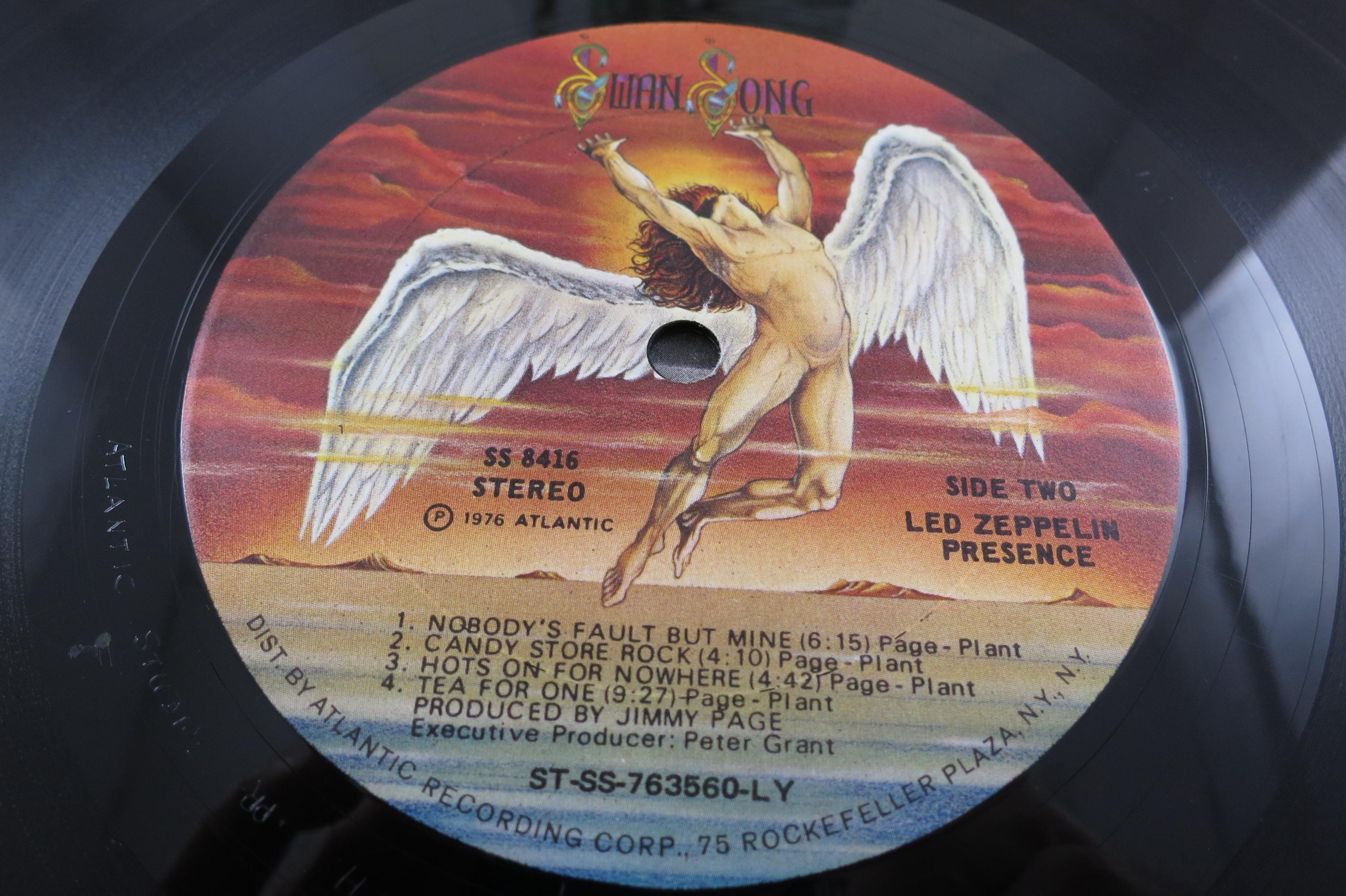 Vintage 1976 LP Record Led Zeppelin Presence Excellent Condition. Original Cover is in very good condition and includes the original inner paper sleeve. Cover has a stain toward the bottom. Record is excellent. Tracks are as follows