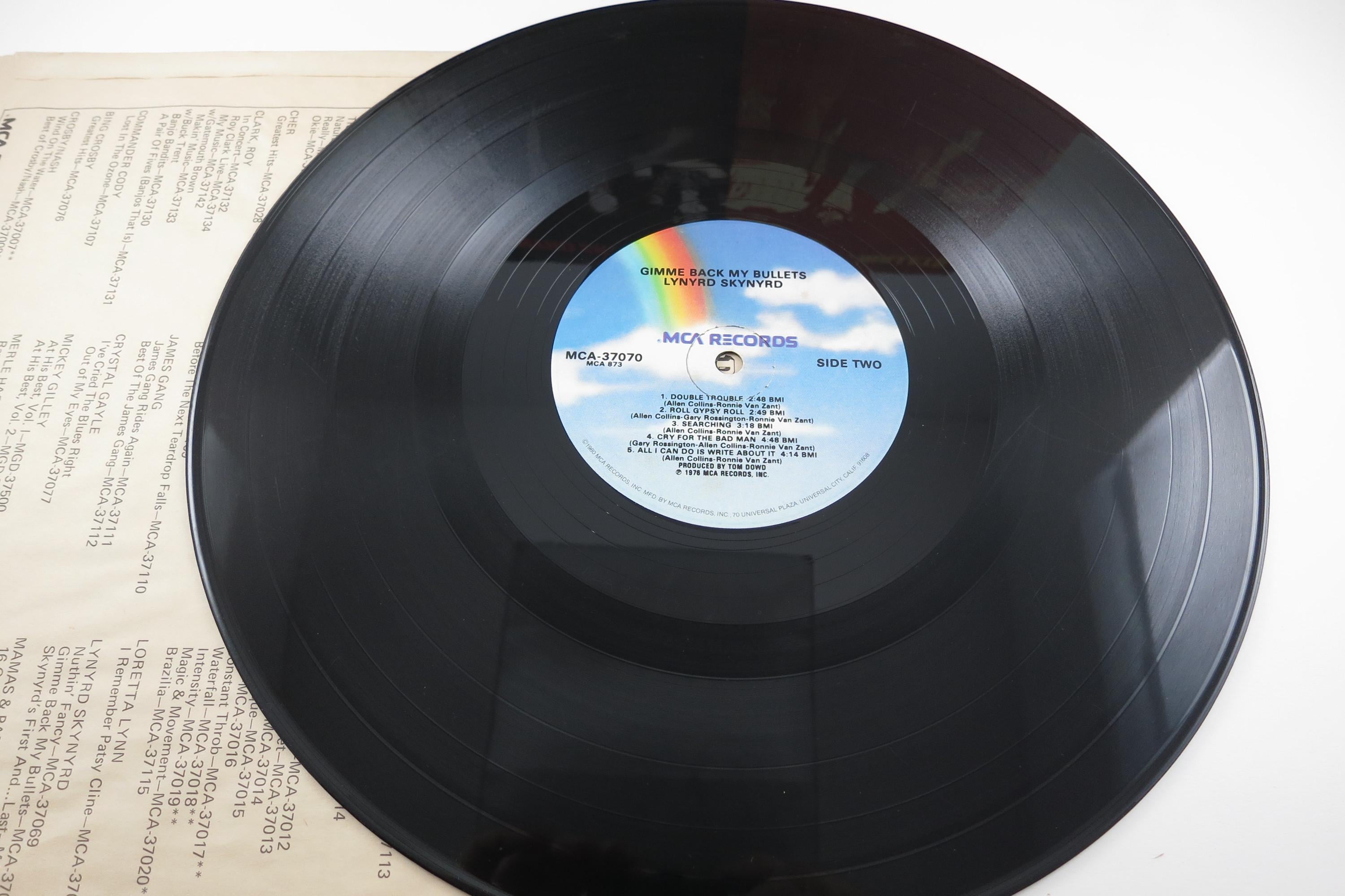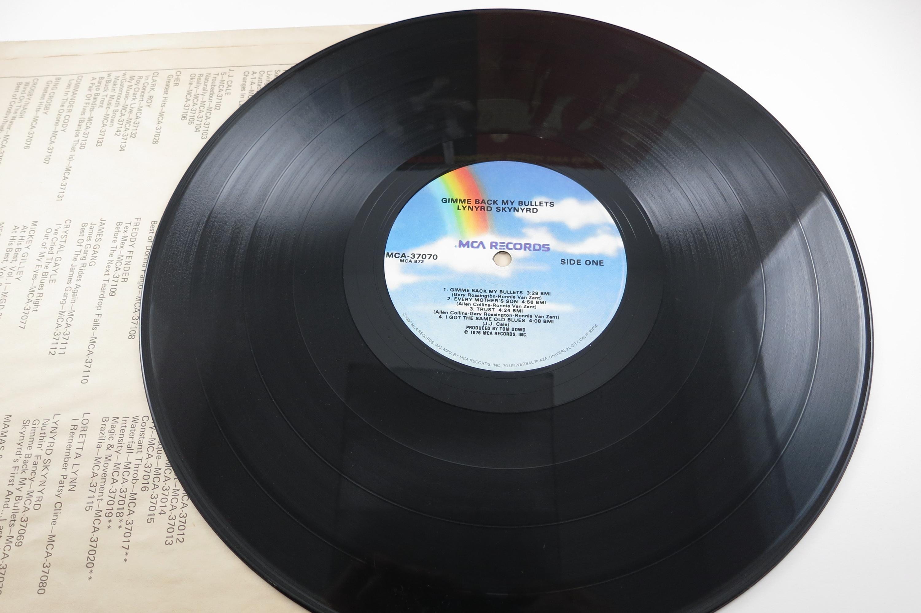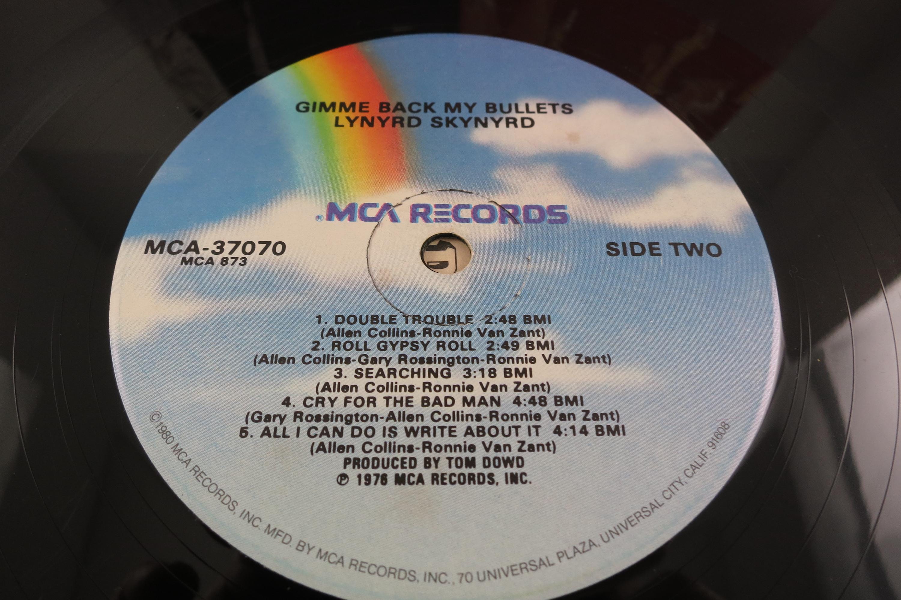 Vintage 1980 LP Record Lynyrd Skynyrd Gimme Back My Bullets Very Good Condition Original cover is in very good condition and includes the inner paper sleeve. Record is very good with light marks. Tracks are as follows