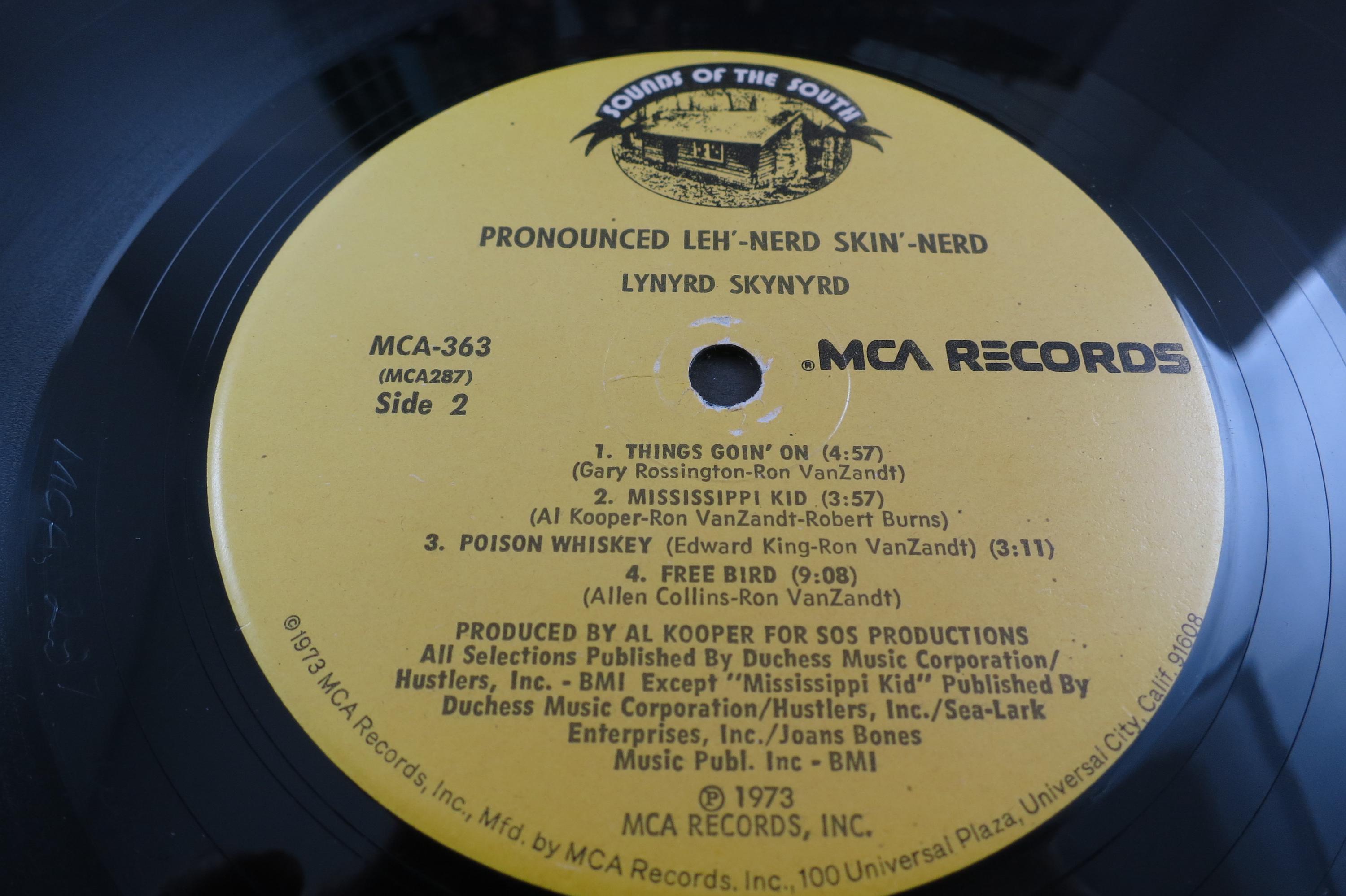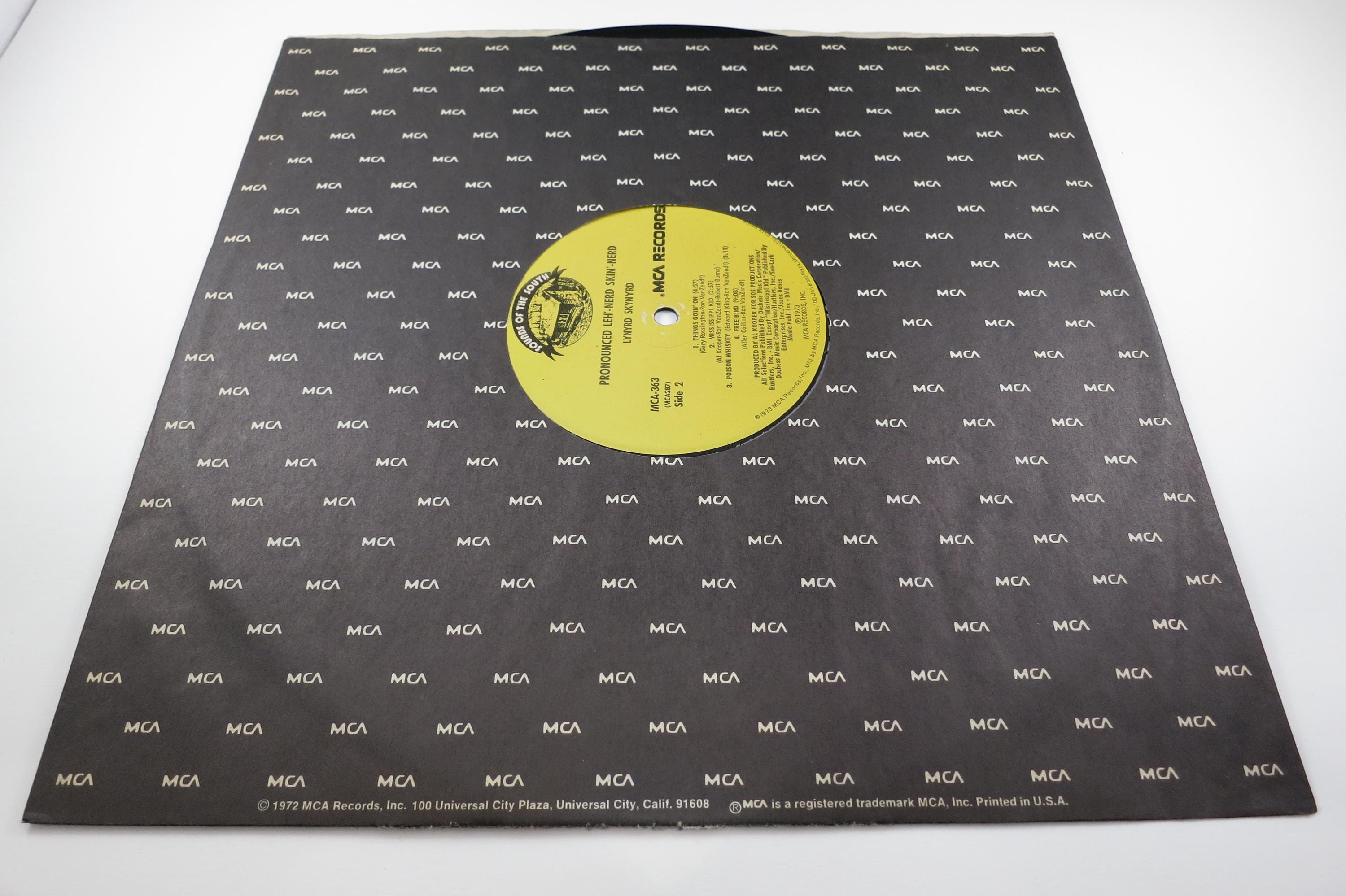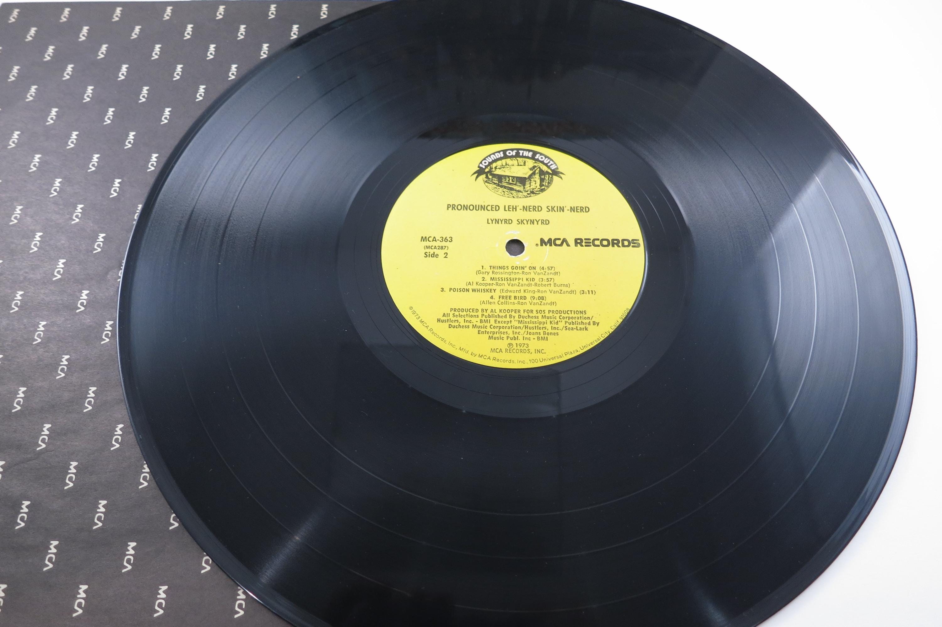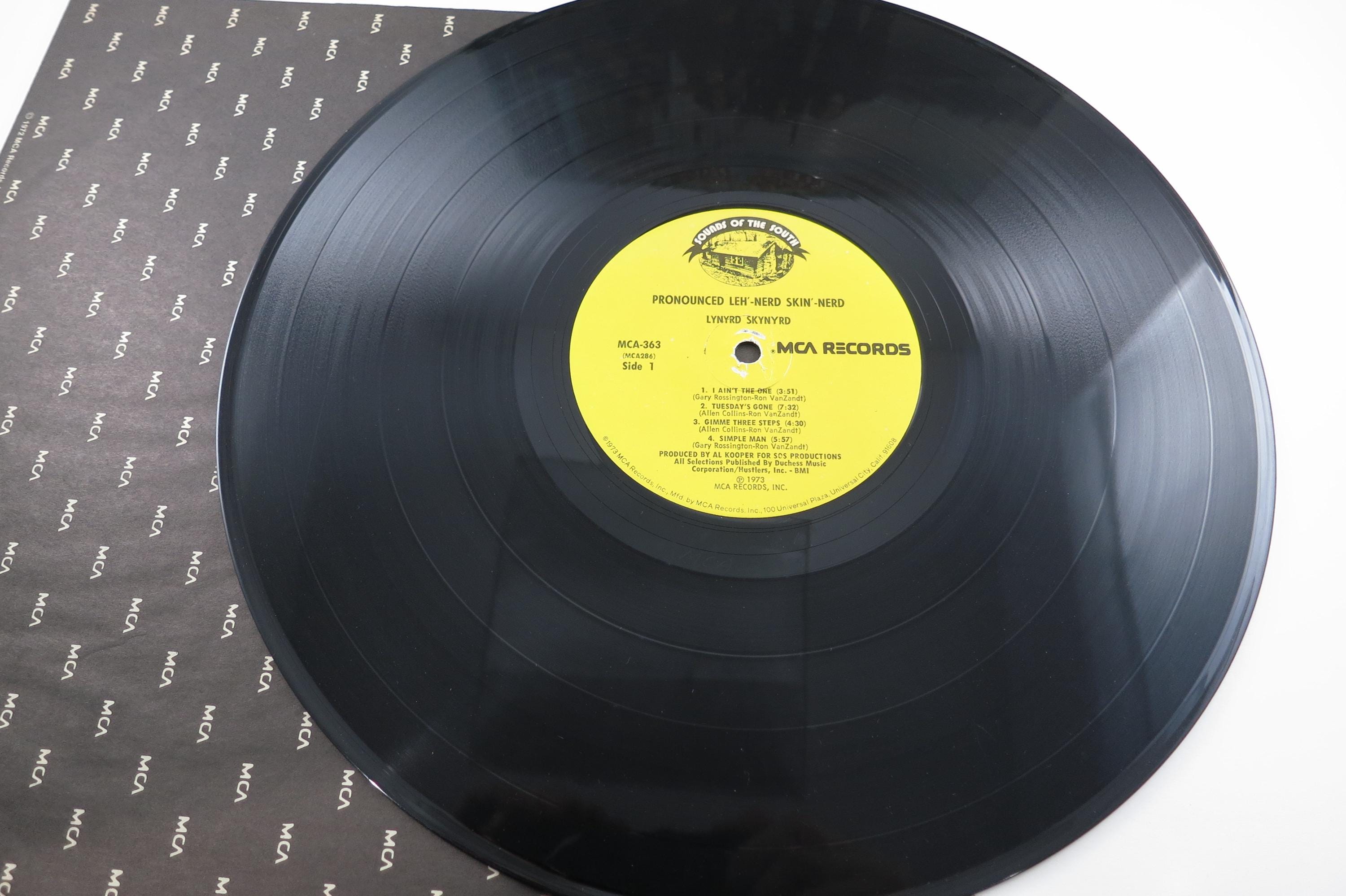 Vintage 1973 Vinyl LP Record Lynyrd Skynyrd Pronounced leh-nerd skin nerd. Rare Sounds of the South MCA Original 1973 Pressing!! Original cover is in very good condition and includes the original inner paper sleeve. Record is excellent. Has light marks. Yellow Original Sounds of the South Label Pressing!! Tracks are as follows