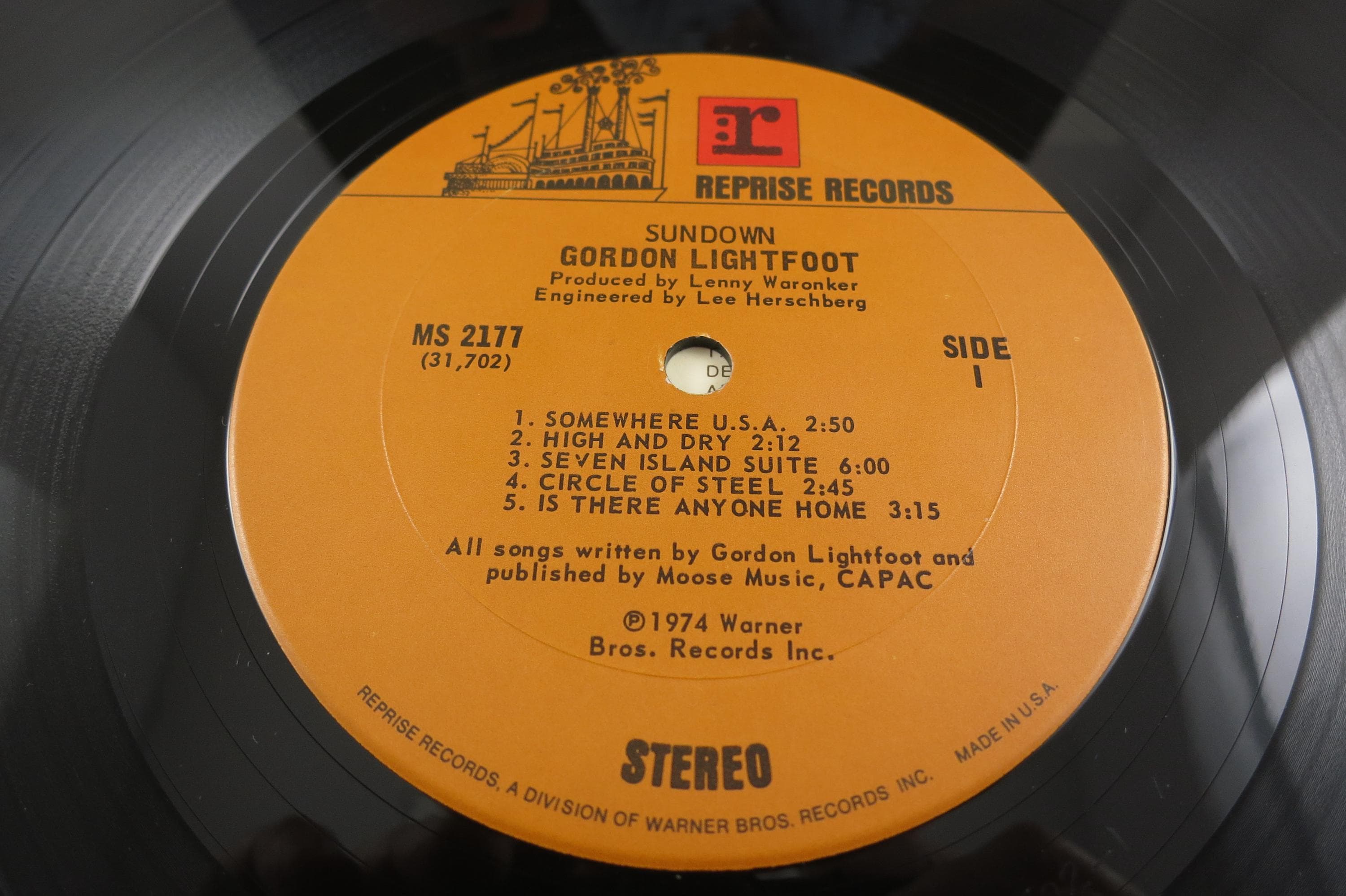 1974 Gordon Lightfoot Vinyl Record, Sundown EX. Original cover is in very good condition and includes the inner sleeve. Record is excellent.