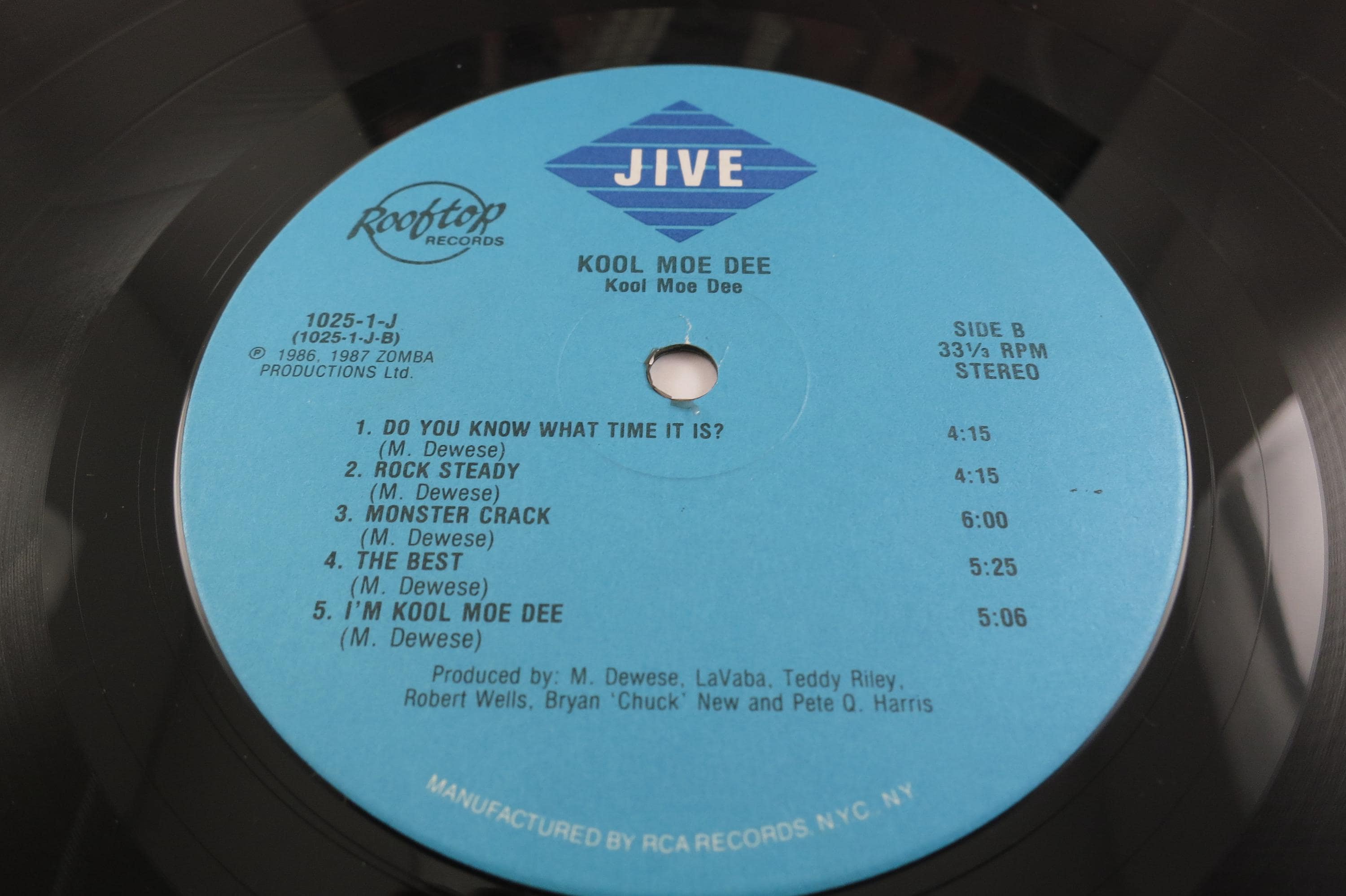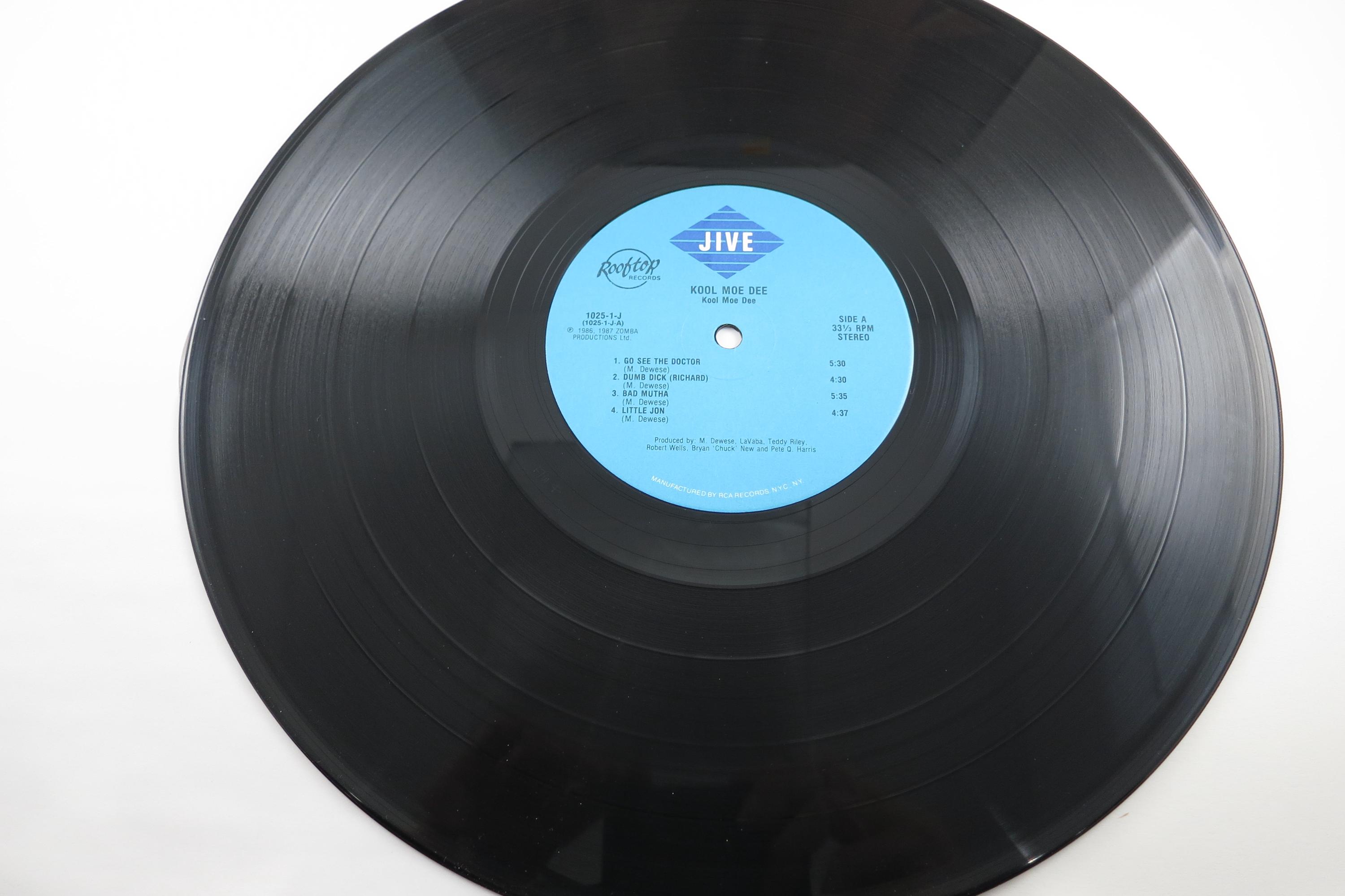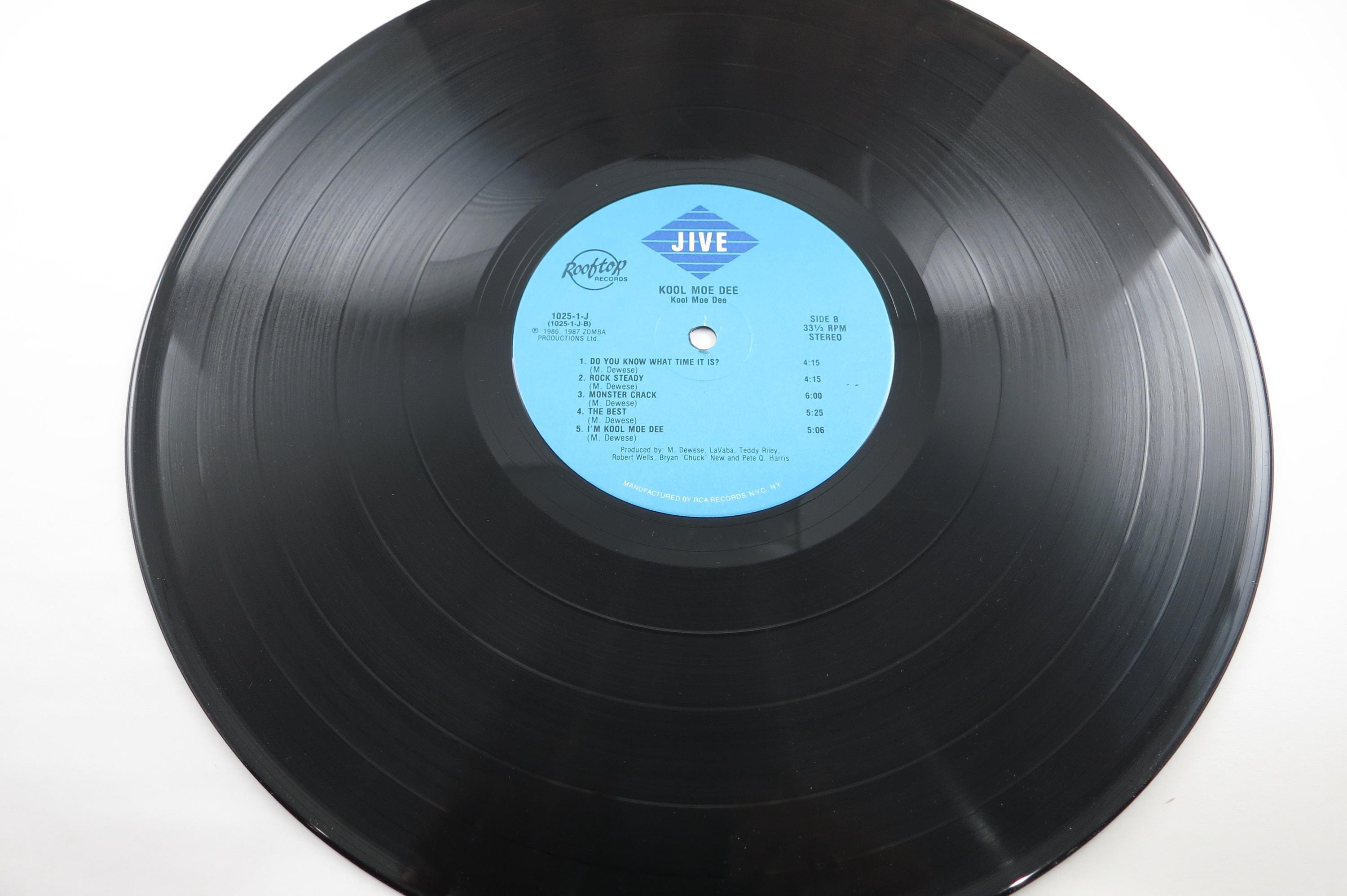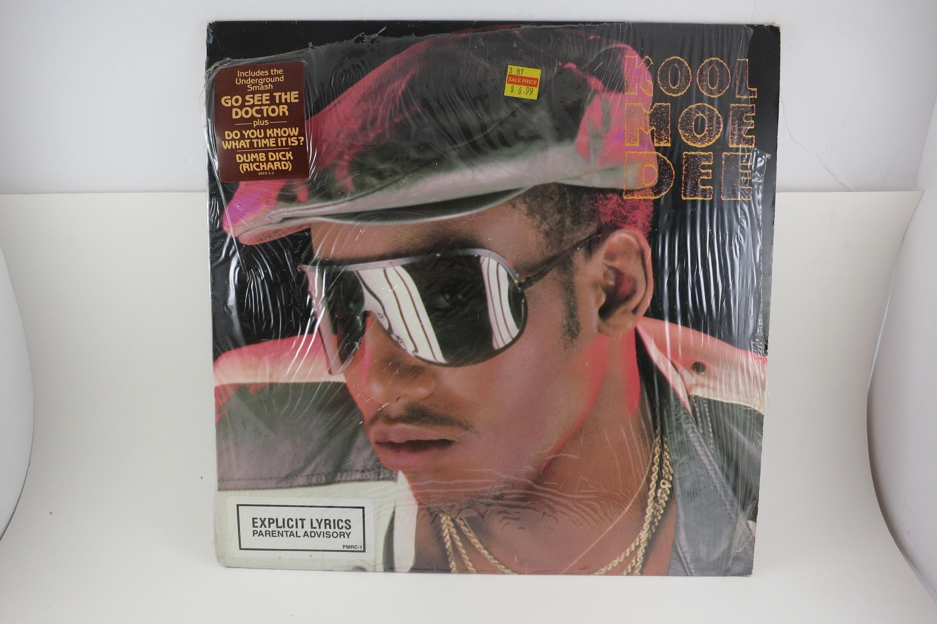 1987 LP Record Kool Moe Dee Self Titled Excellent Condition In Shrink Hype Sticker Original Pressing. Original cover is in fair condition and includes the inner paper sleeve. Cover looks great from the front and has the factory shrink wrap and hype sticker. On the back at the top right is a small area of paper that is burned. Aside from that, cover is beautiful. Record plays perfect and is in excellent condition. Tracks are as follows