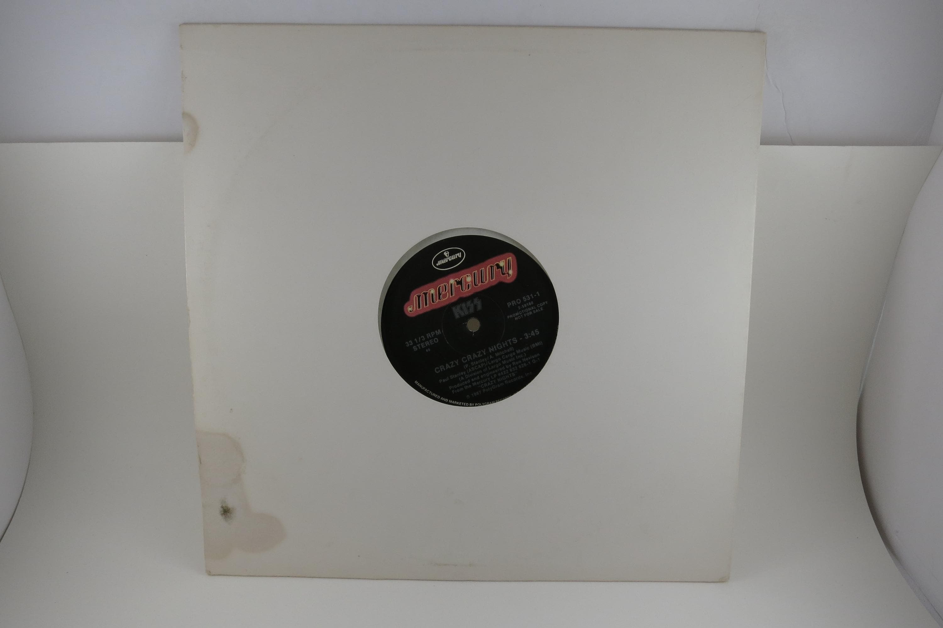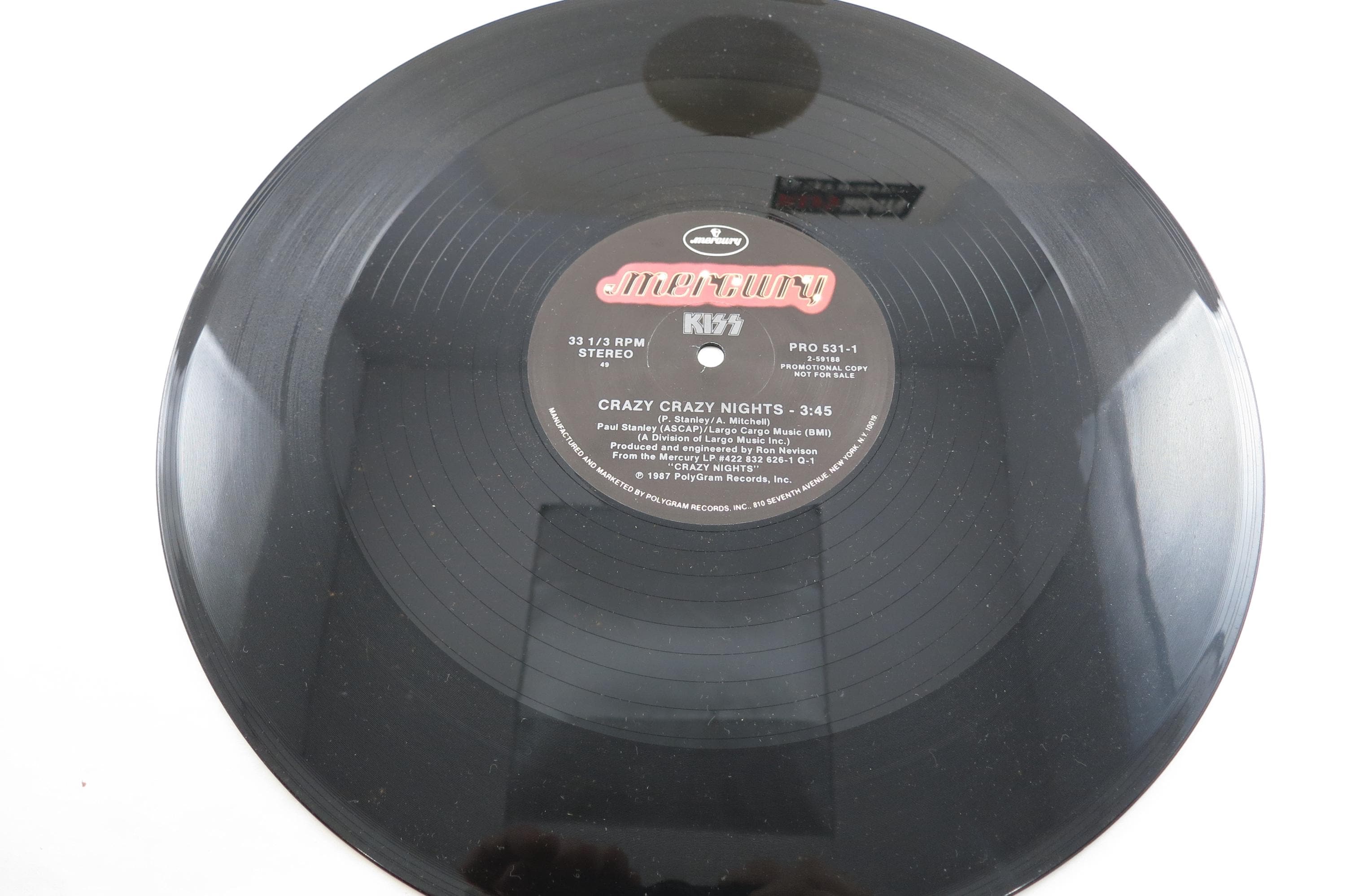 Vintage 1987 Vinyl Record Crazy Crazy Nights Kiss Promo EP VG+. Original cover is in very good condition and includes the inner paper sleeve and sticker. Record is very good plus. Tracks are as follows