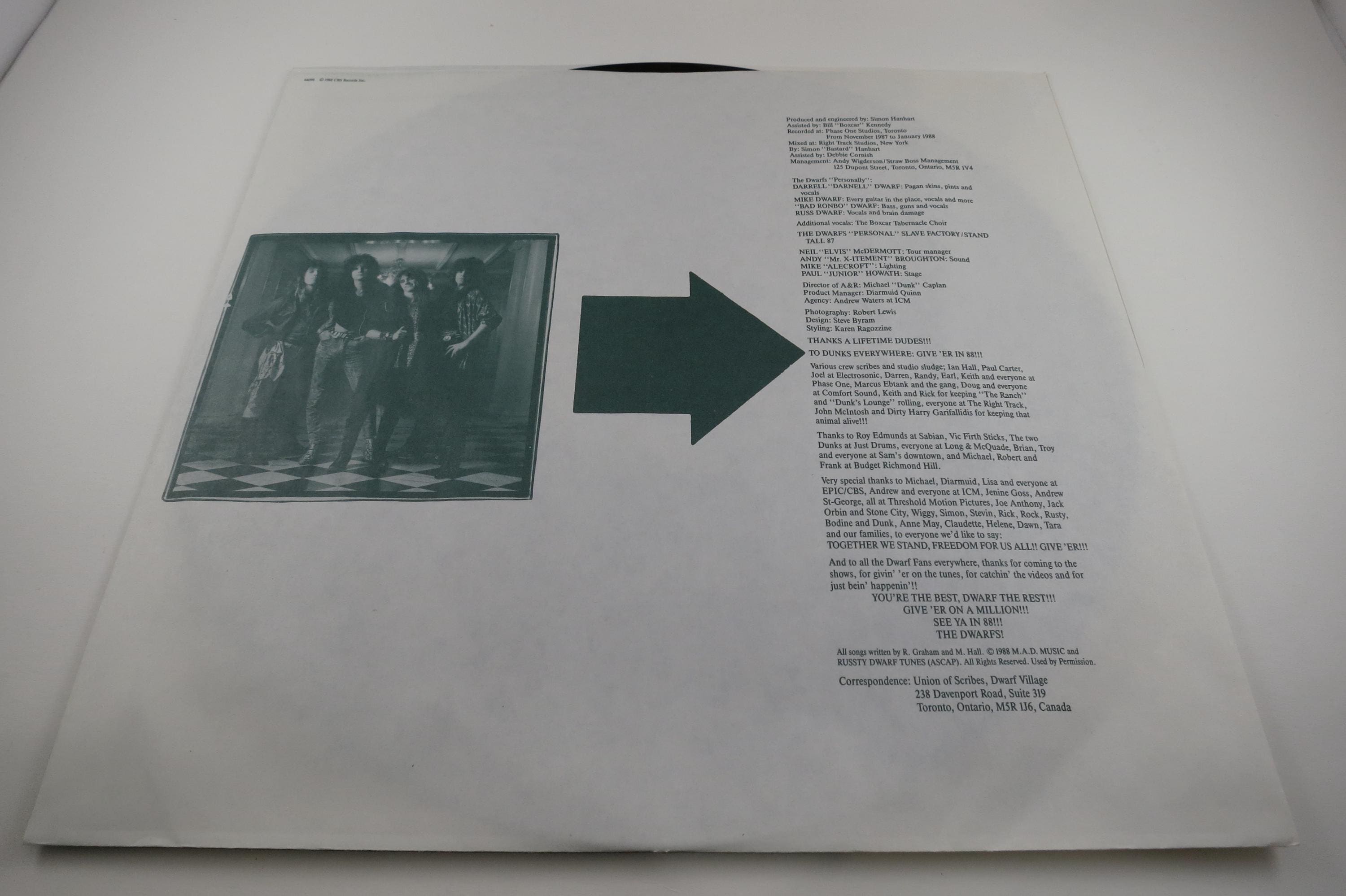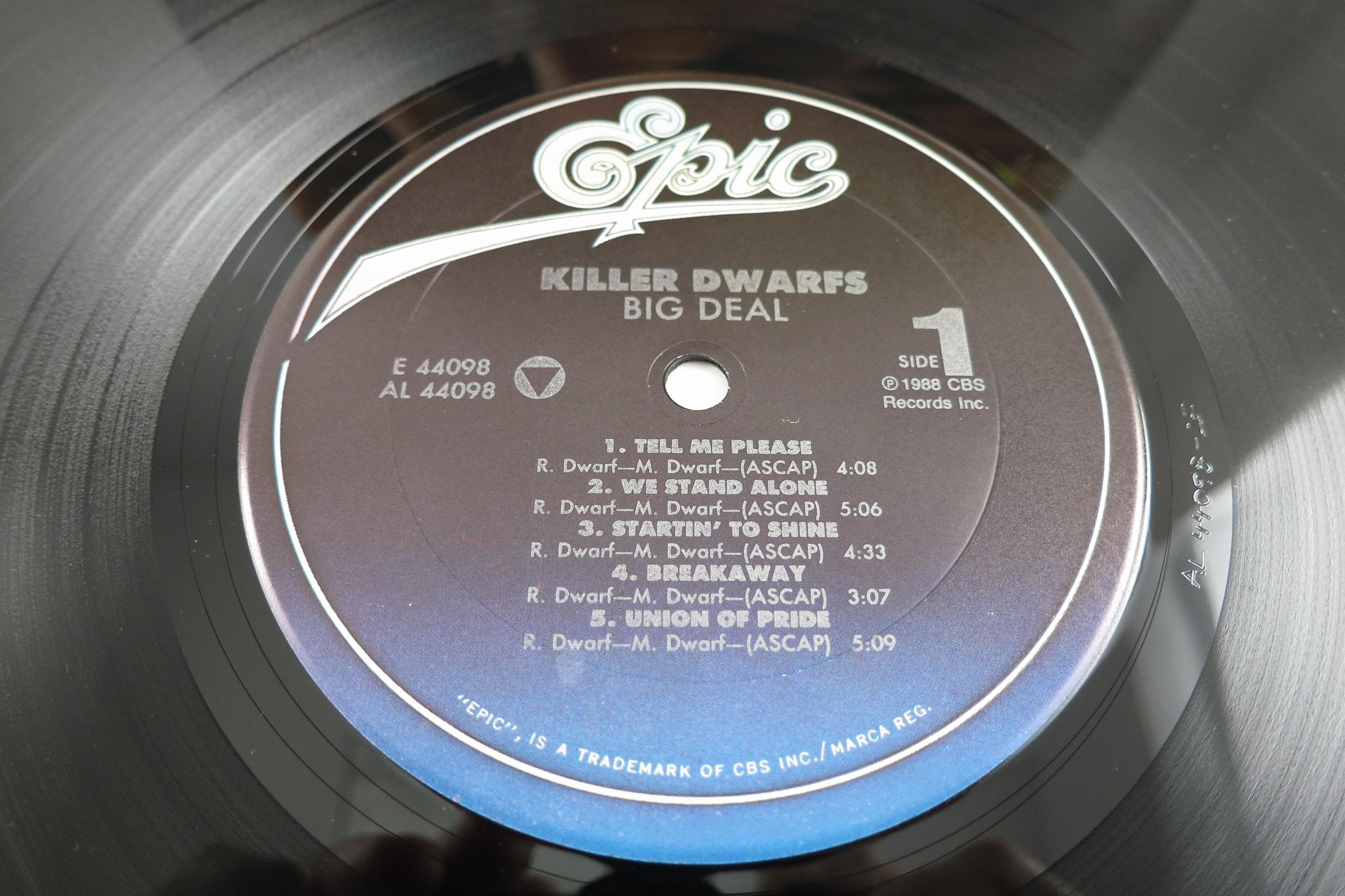 1988 Vinyl LP Record Big Deal Killer Dwarfs Near Mint Condition. The original cover is in excellent condition and includes the original inner paper sleeve. Record is Near Mint. Tracks are as follows
