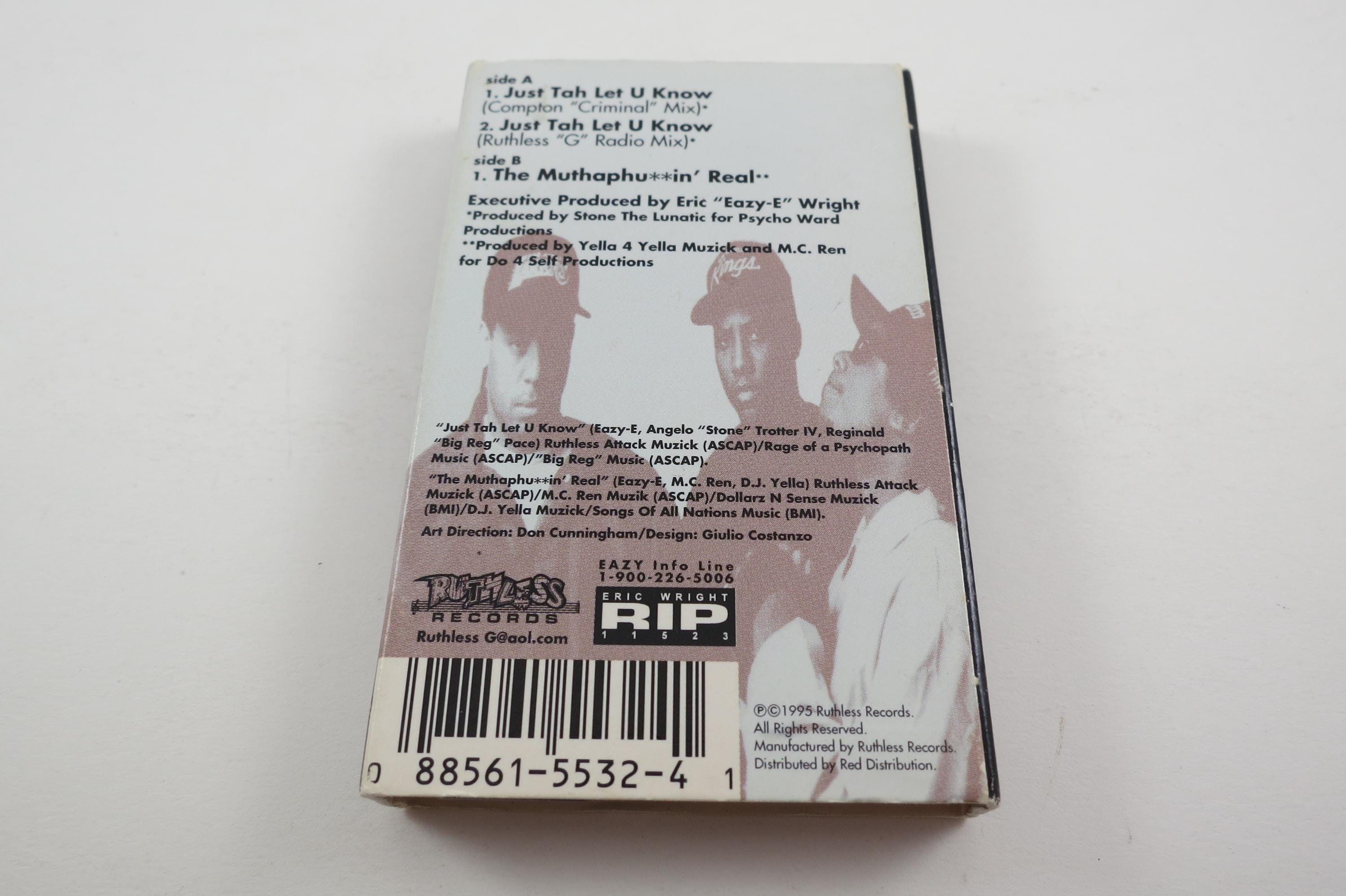 Vintage 1995 Cassette Tape Just Tah Let U Know Eazy-E Single. Tracks are as follows
