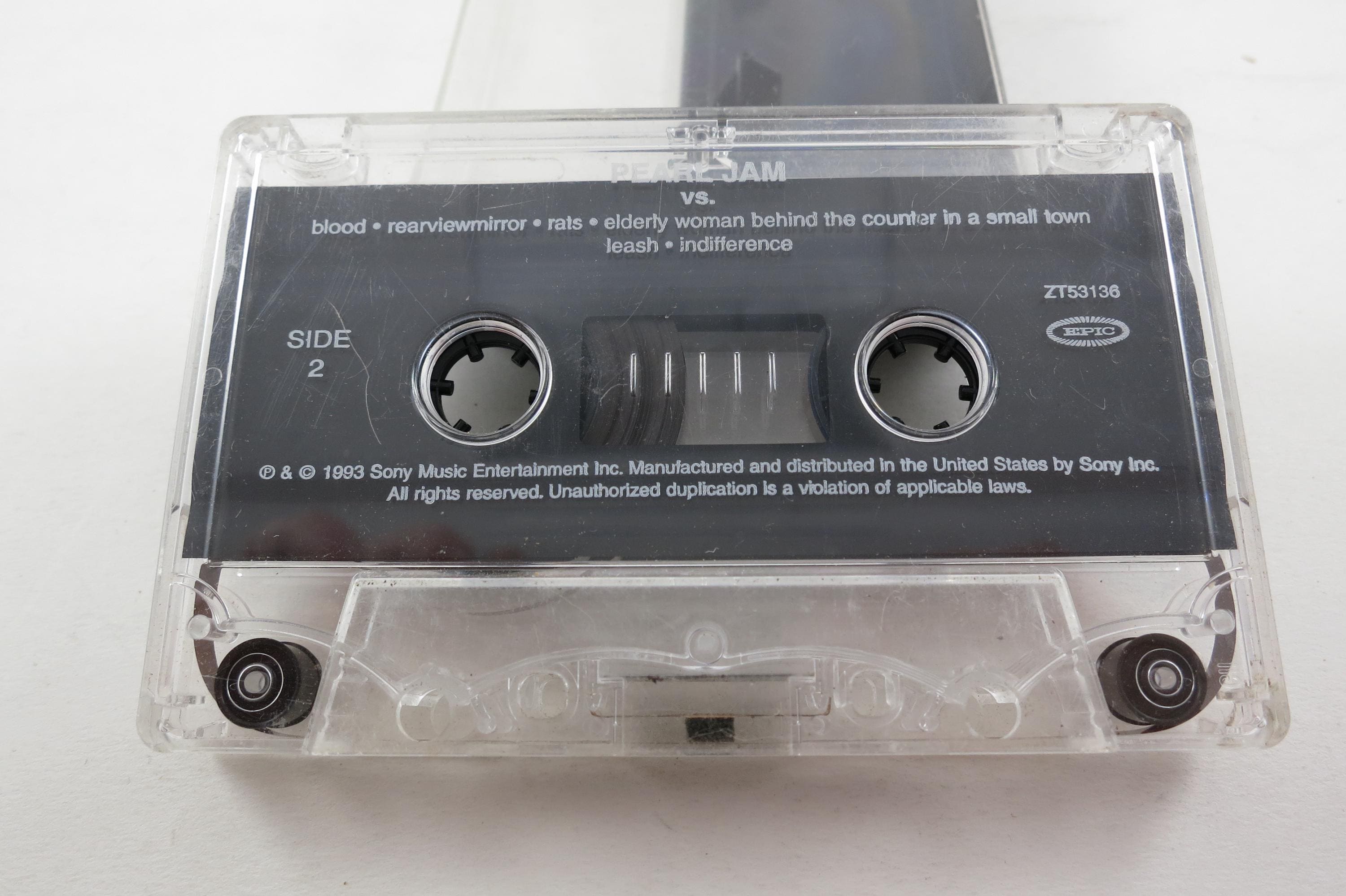 Vintage 1993 Cassette Tape Vs Pearl Jam. Tracks are as follows