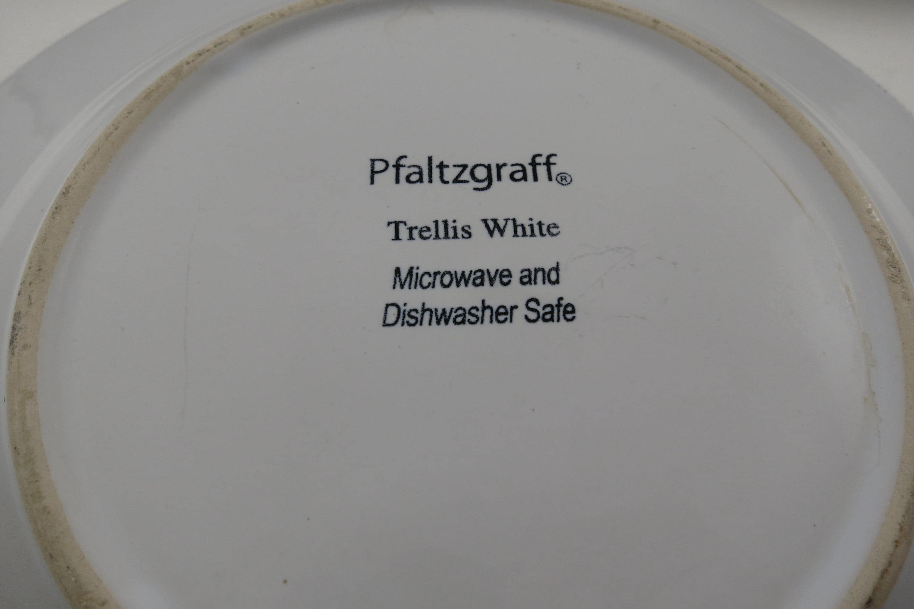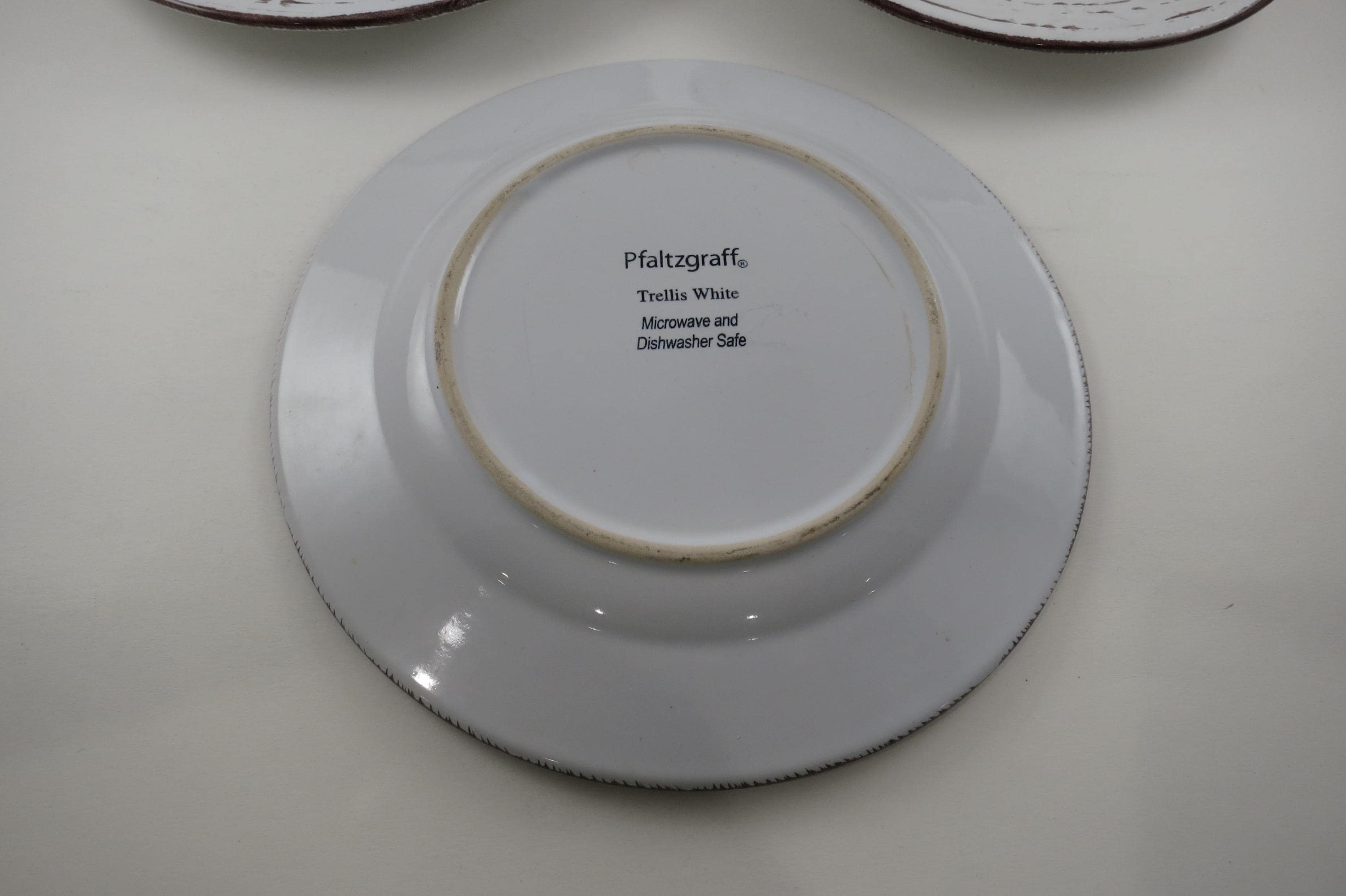 Set of Three Pfaltzgraff Trellis White 8 Inch Salad Plates.