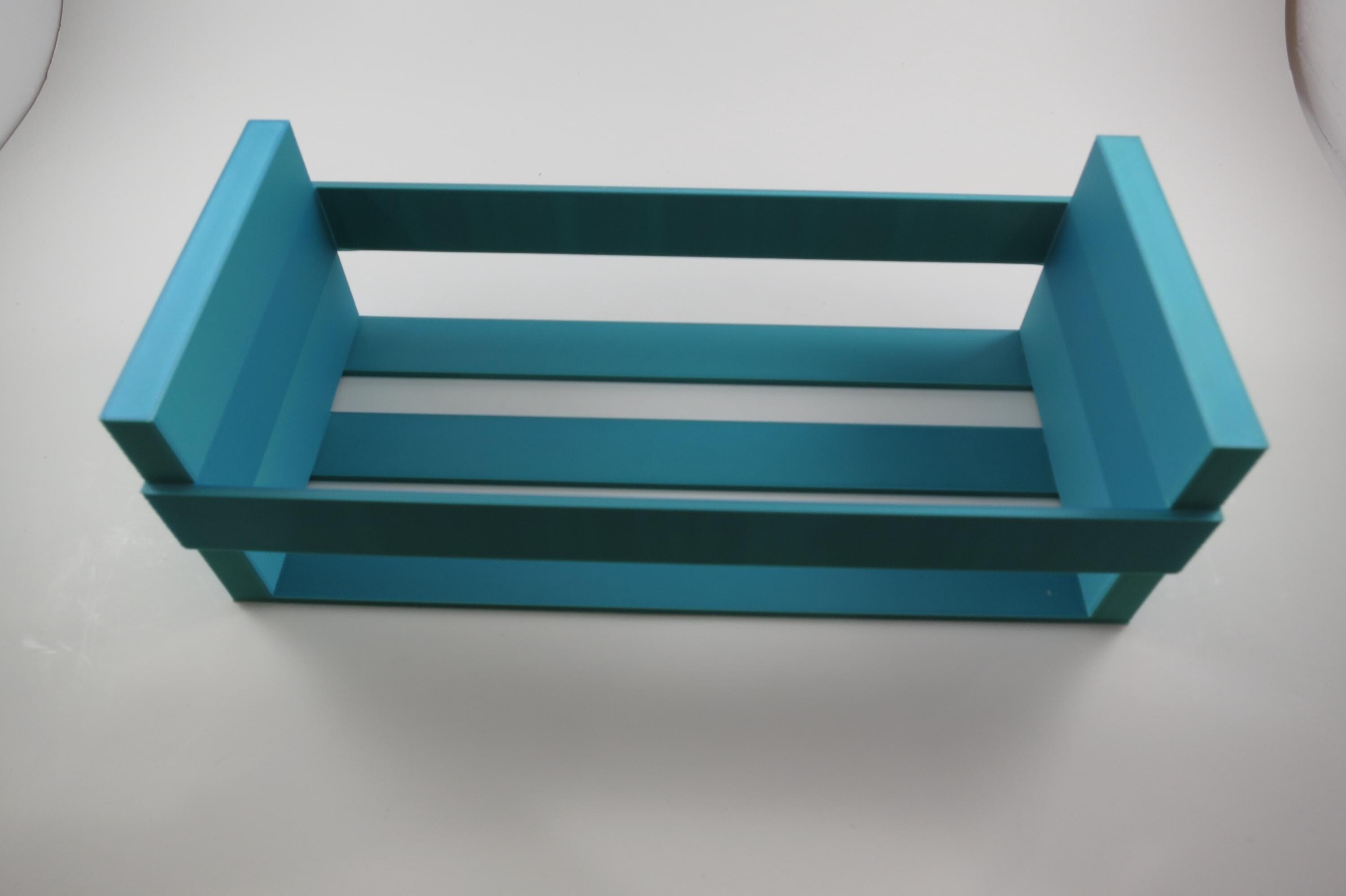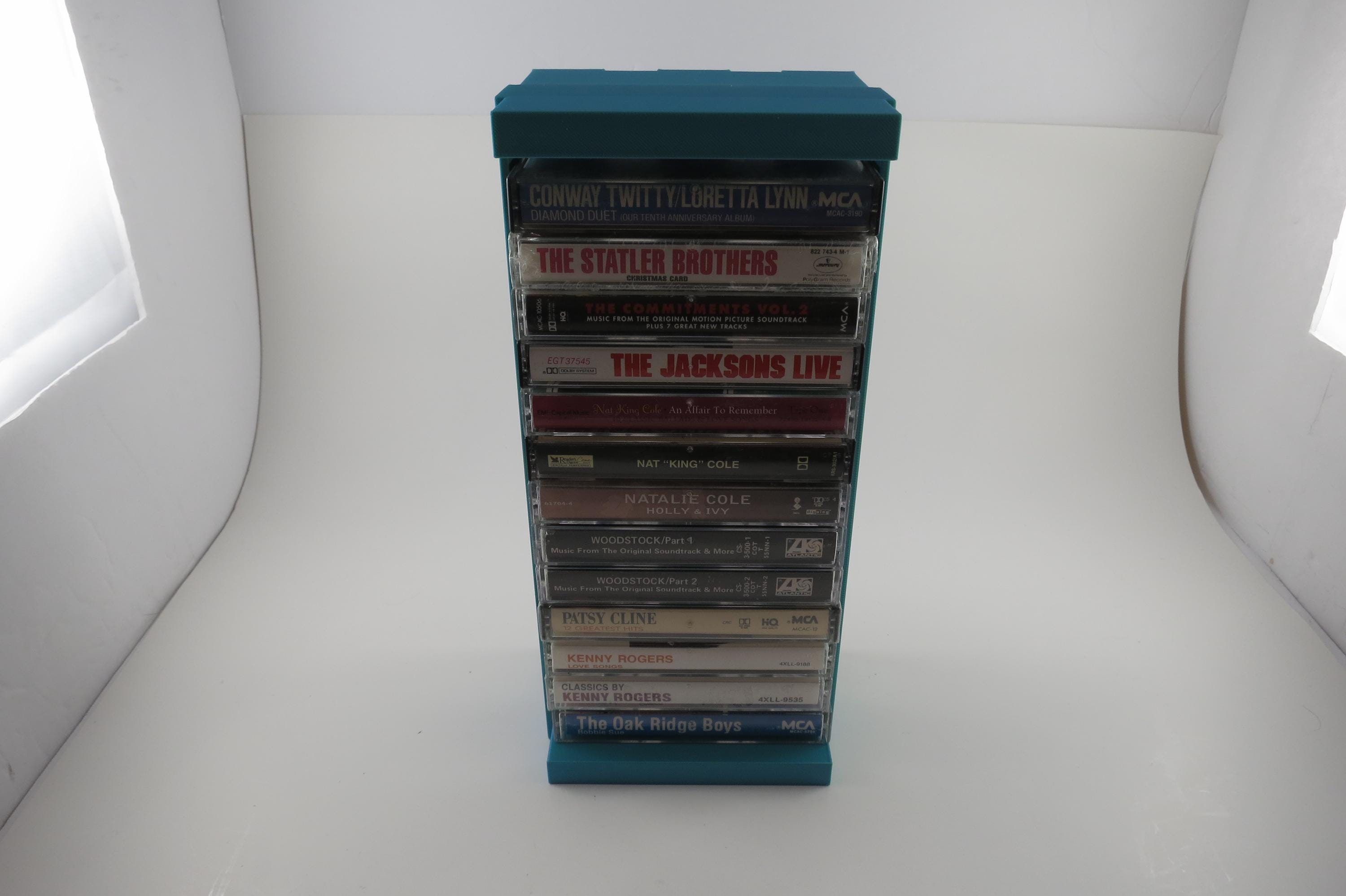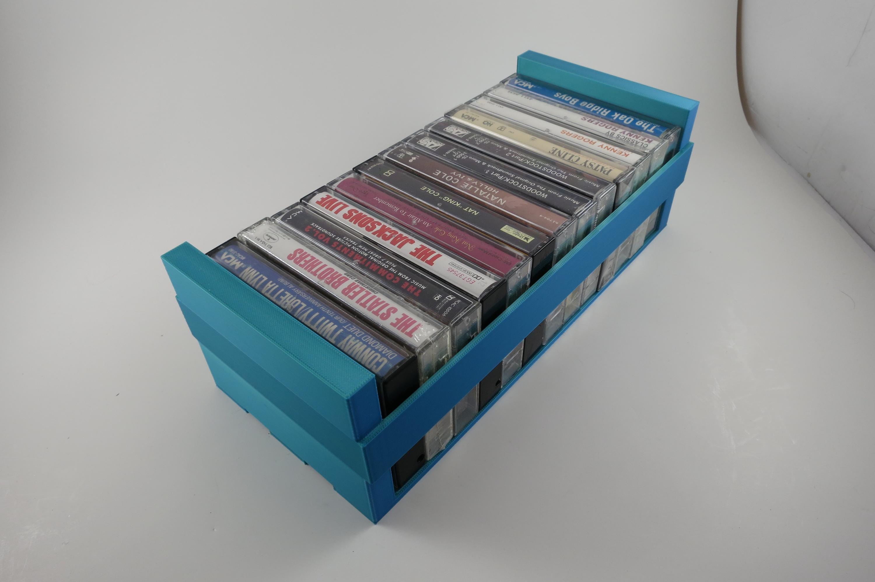 Custom 3D Printed 13 Cassette Holder In Teal Cassette Display. Similar design to the little wooden ones you see, but much more modern and sturdy! Measures 10 inches long, 4 1/2 inches wide and 3 1/2 inches tall. Will hold 13 cassette tapes in their cases. Can be displayed vertical or horizontal, these can also be stacked.