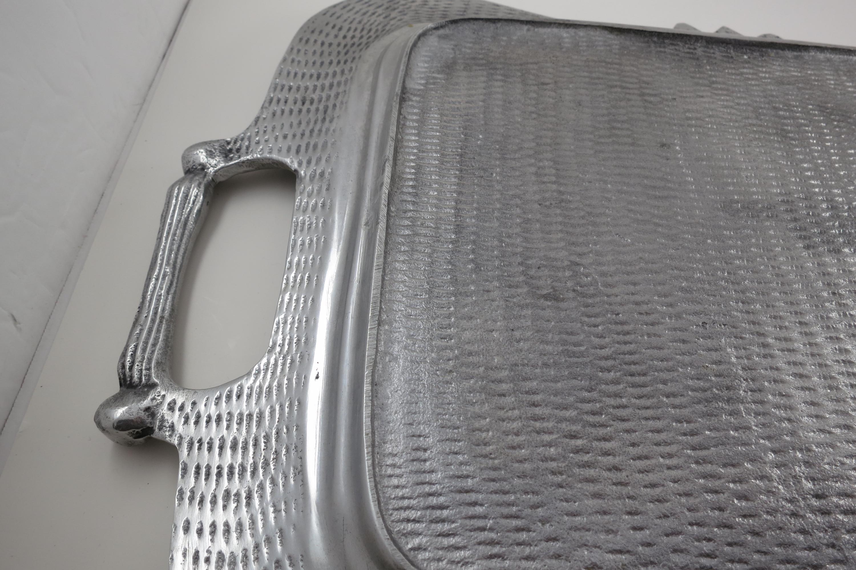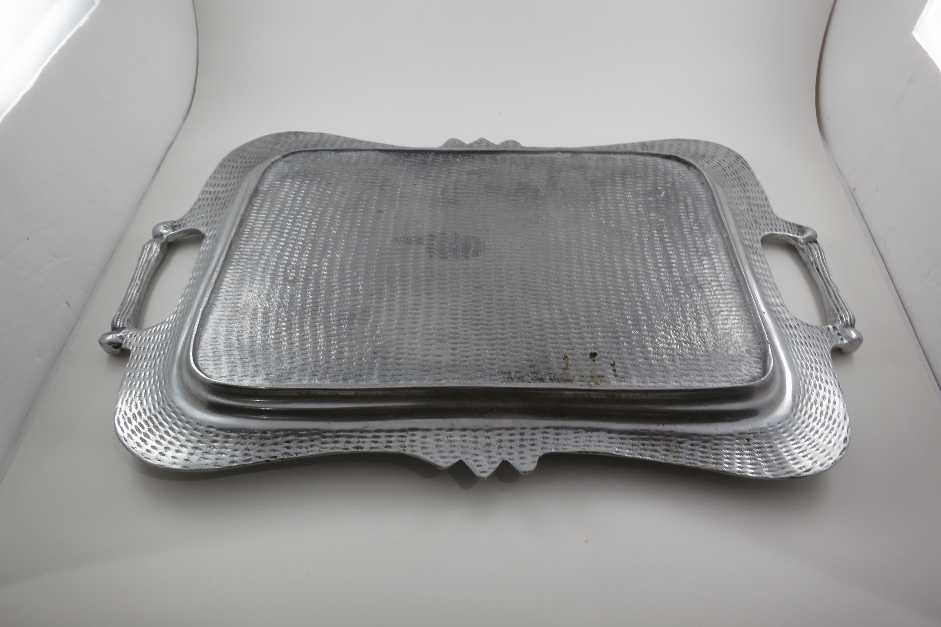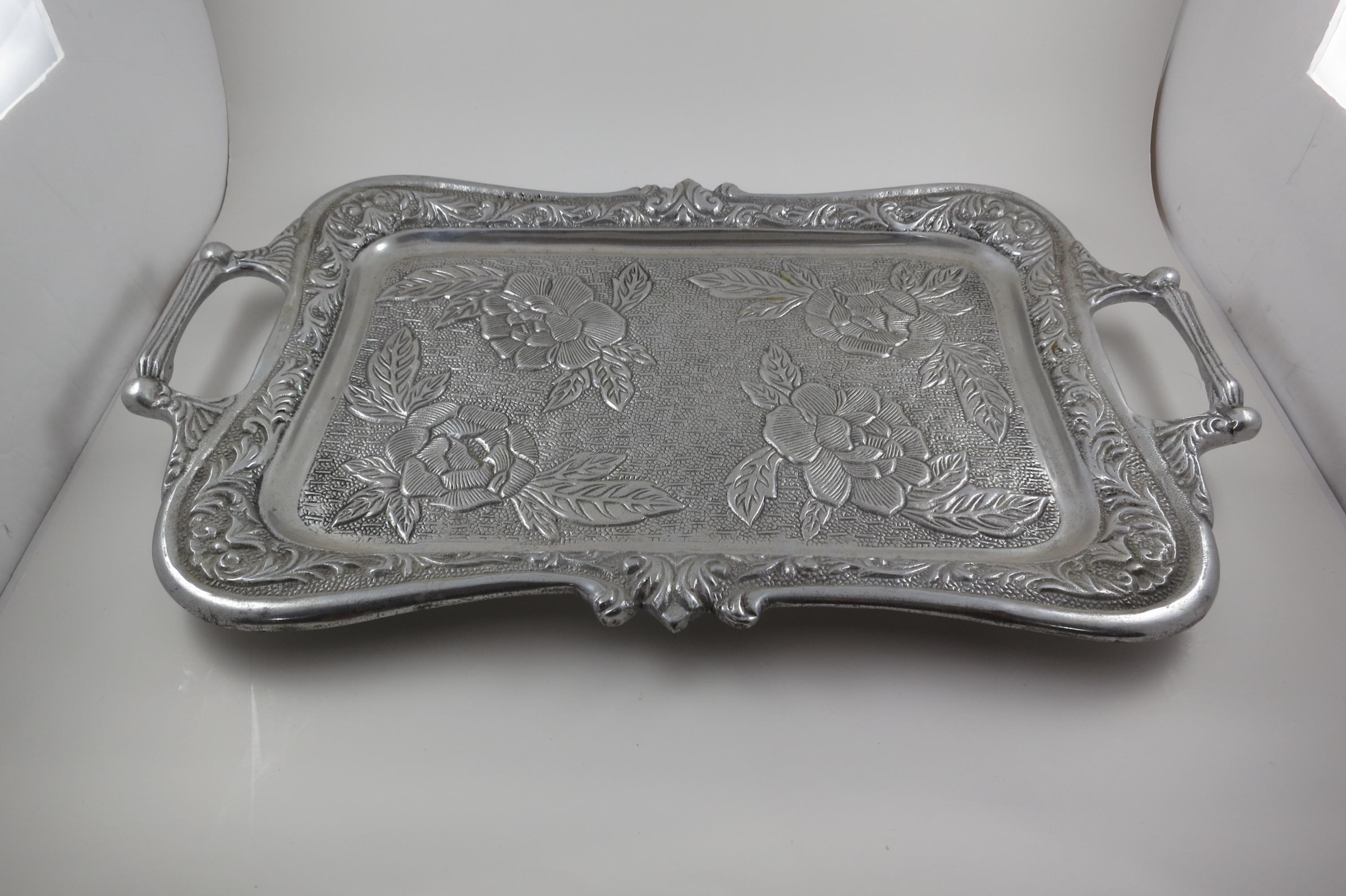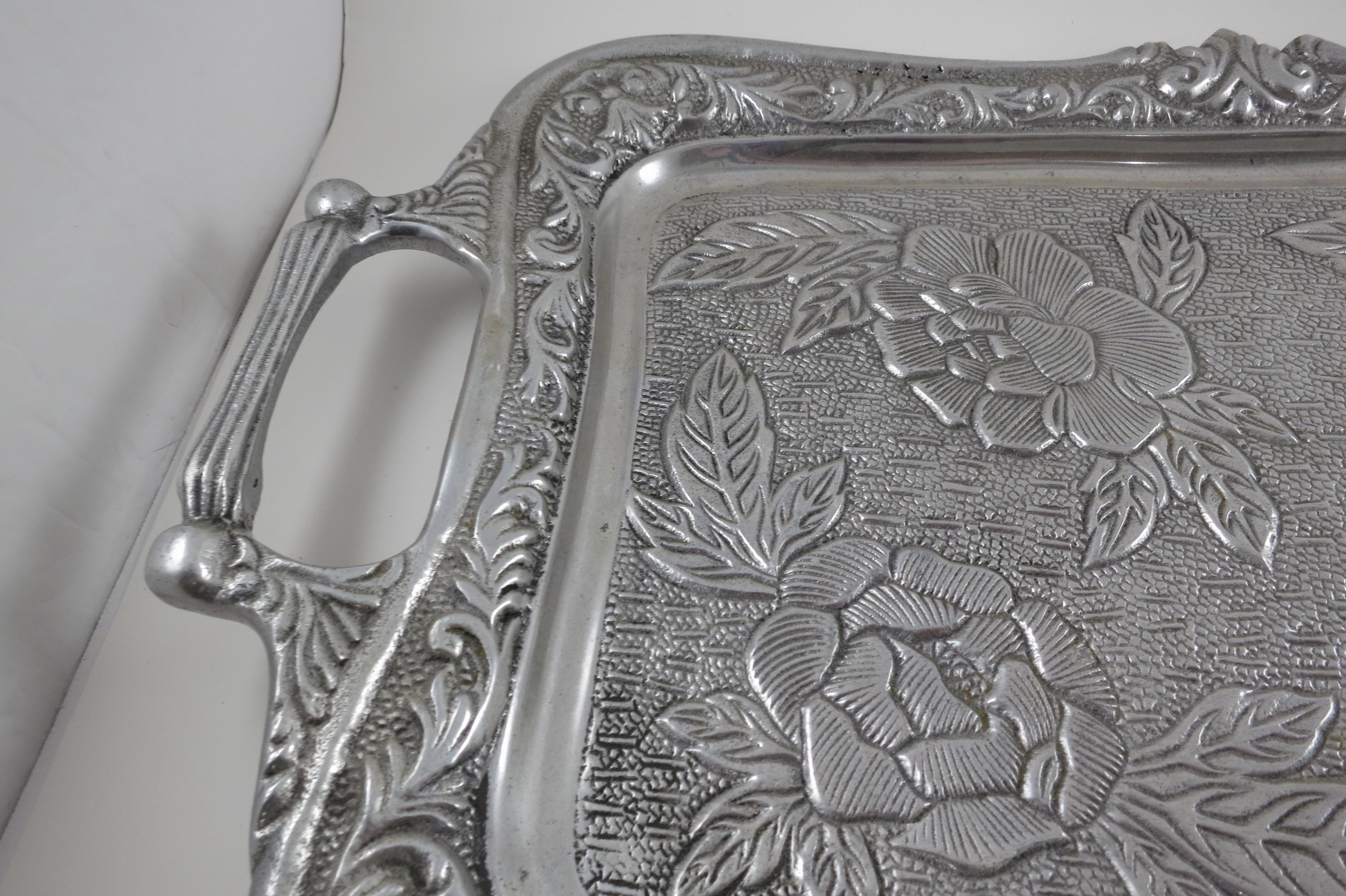 Large Vintage Ornate Hammered Aluminum Double Handled Tray 19x12