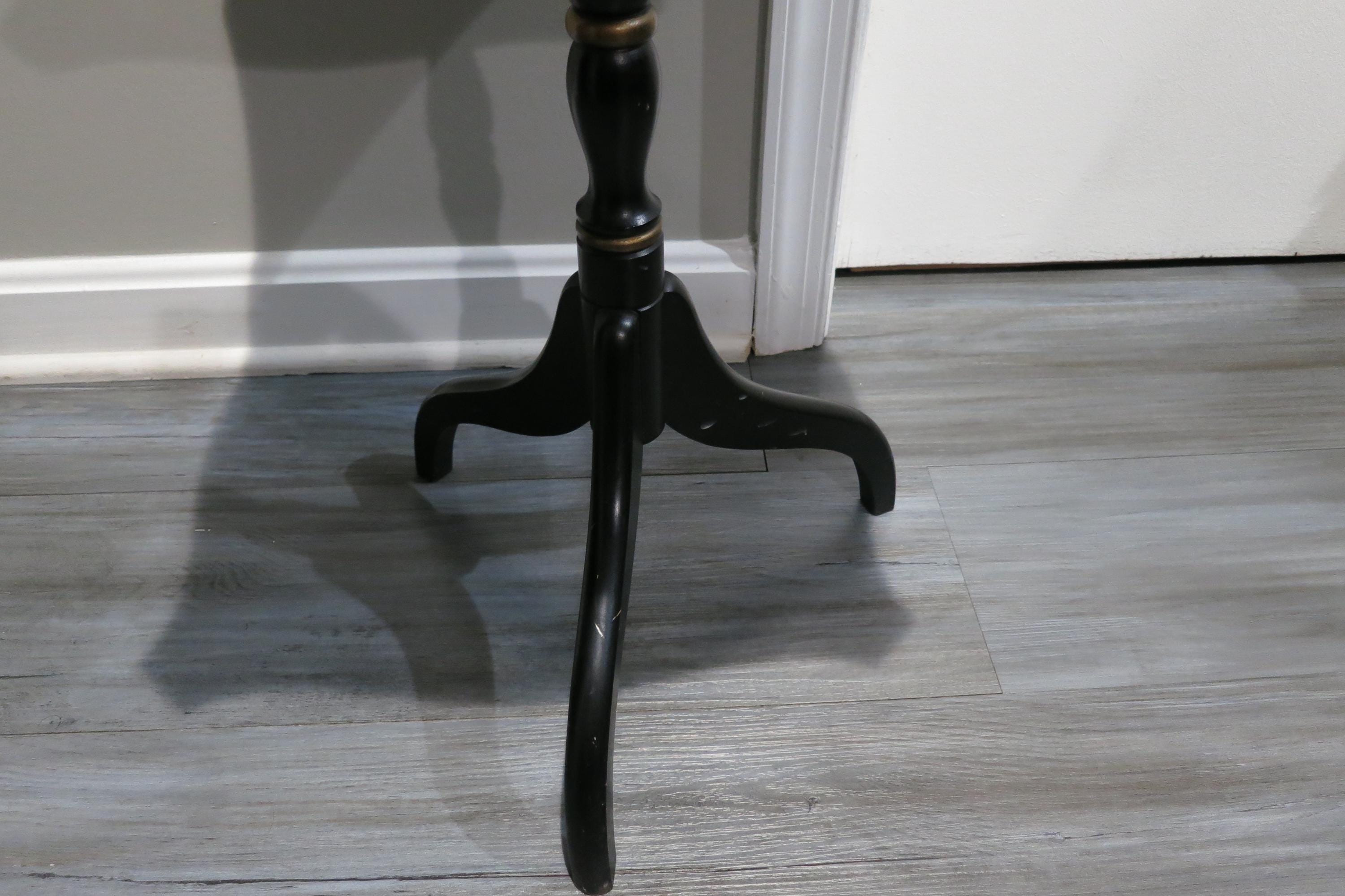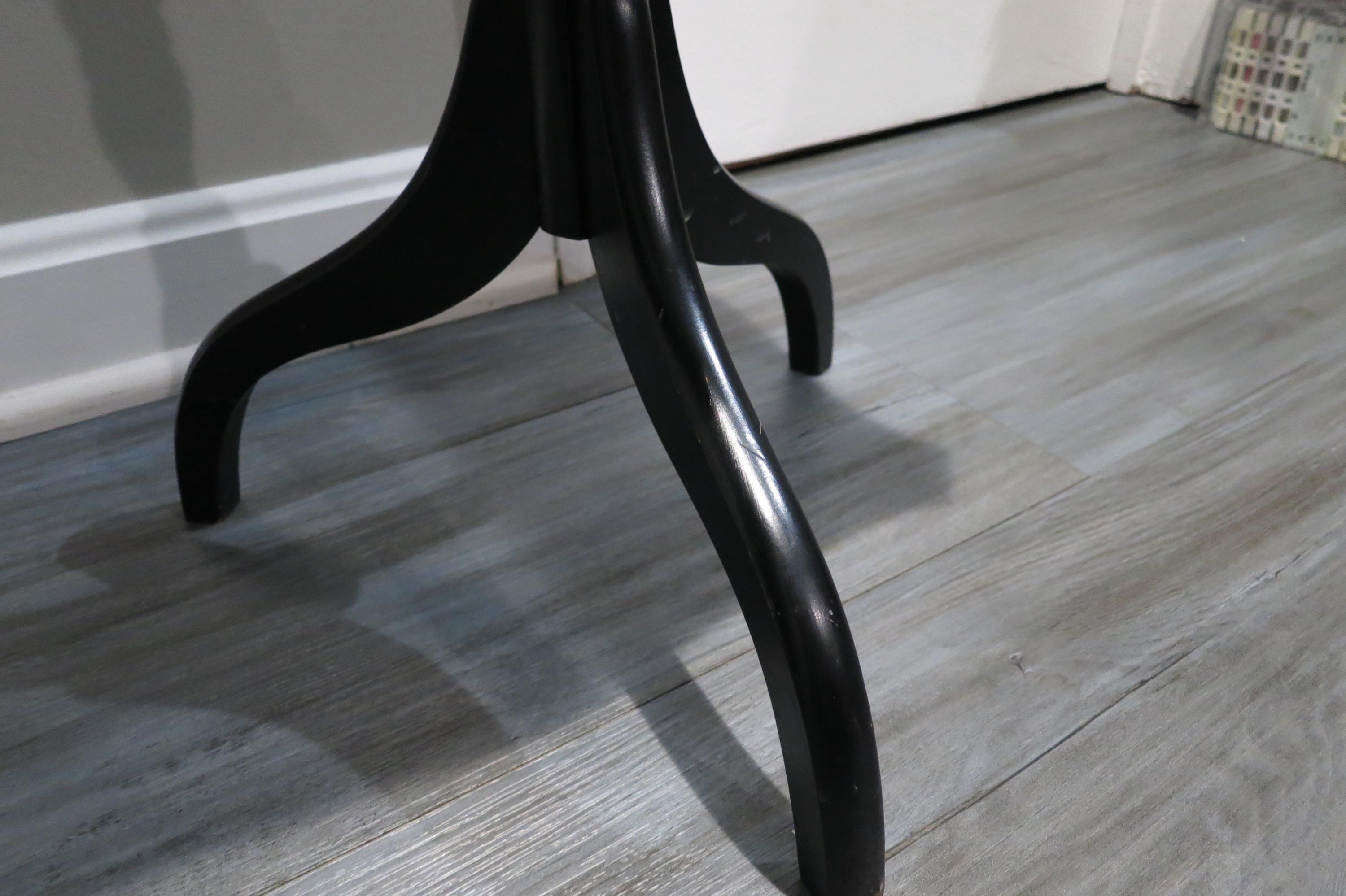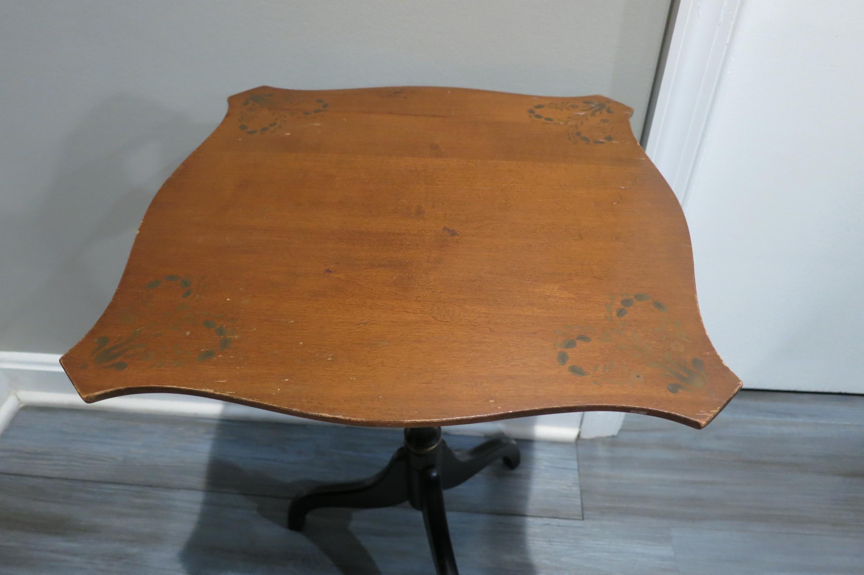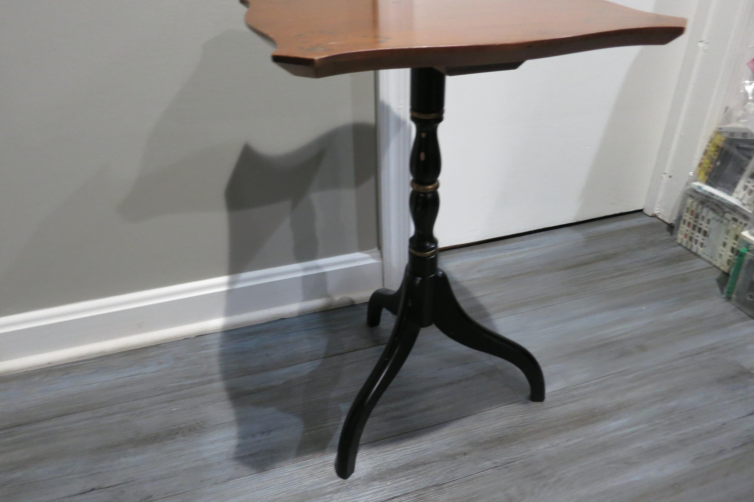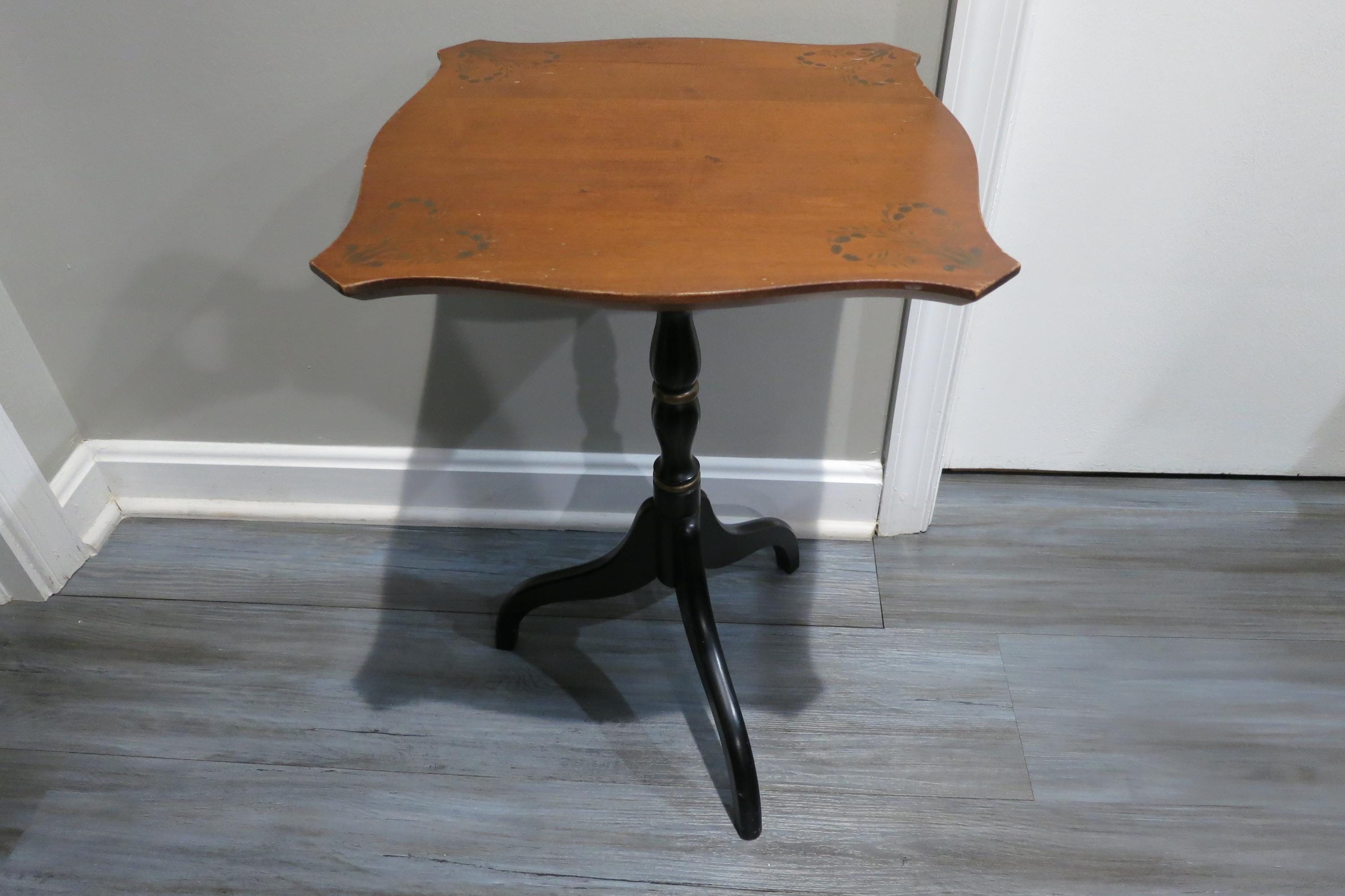 Vintage L Hitchcock Side Table Tri leg Stenciled Signed Black Base.