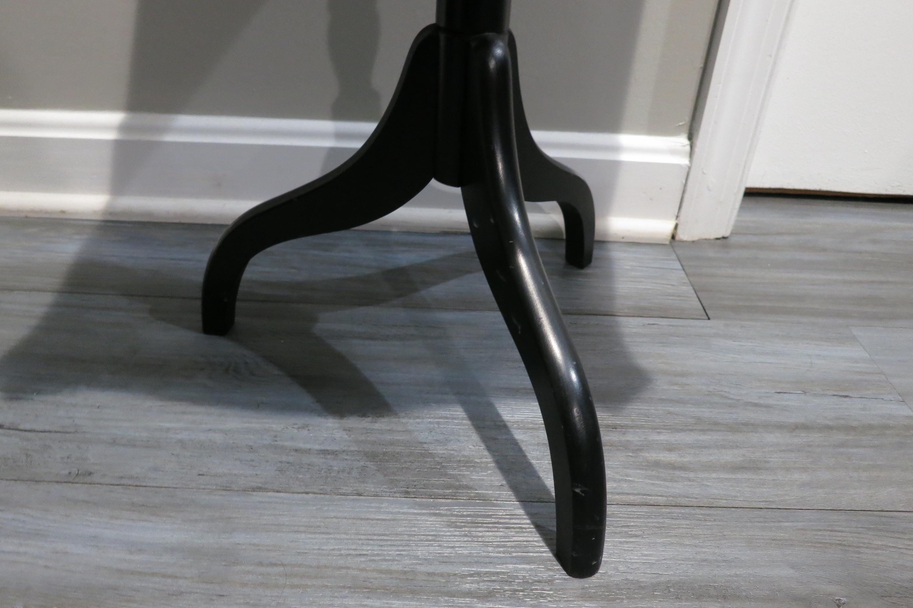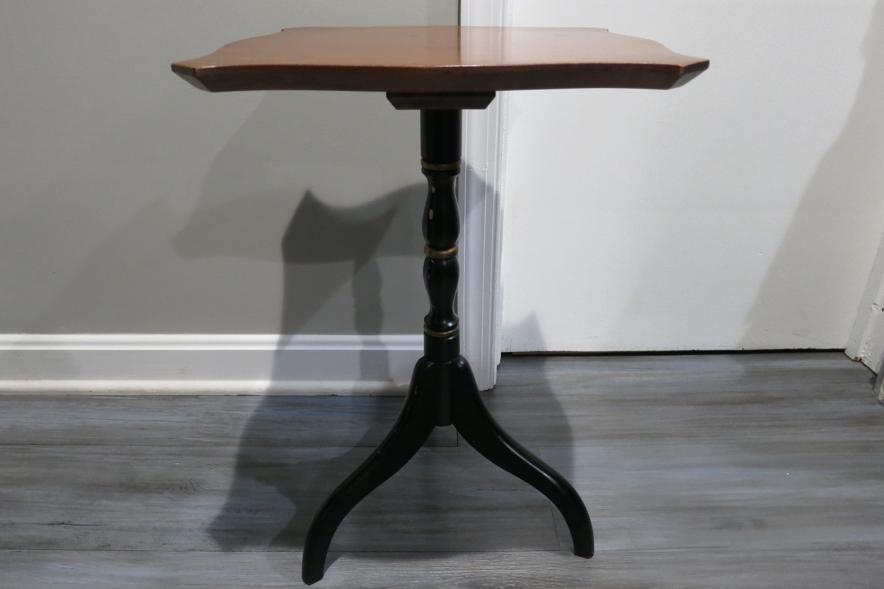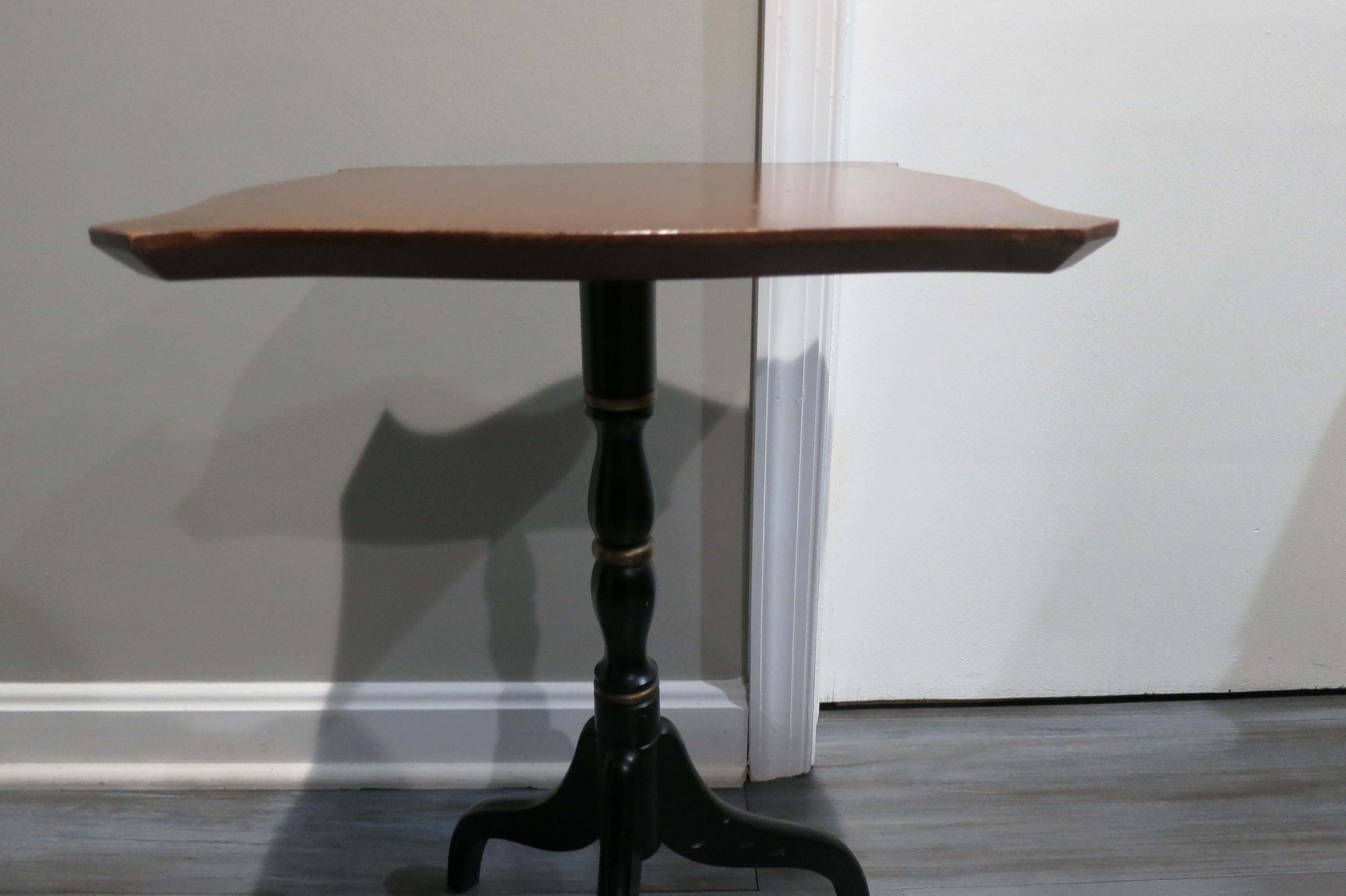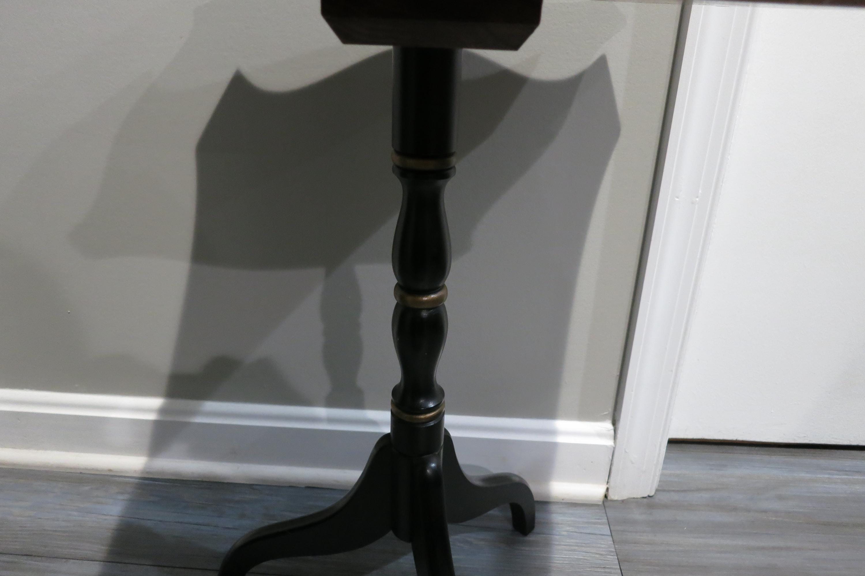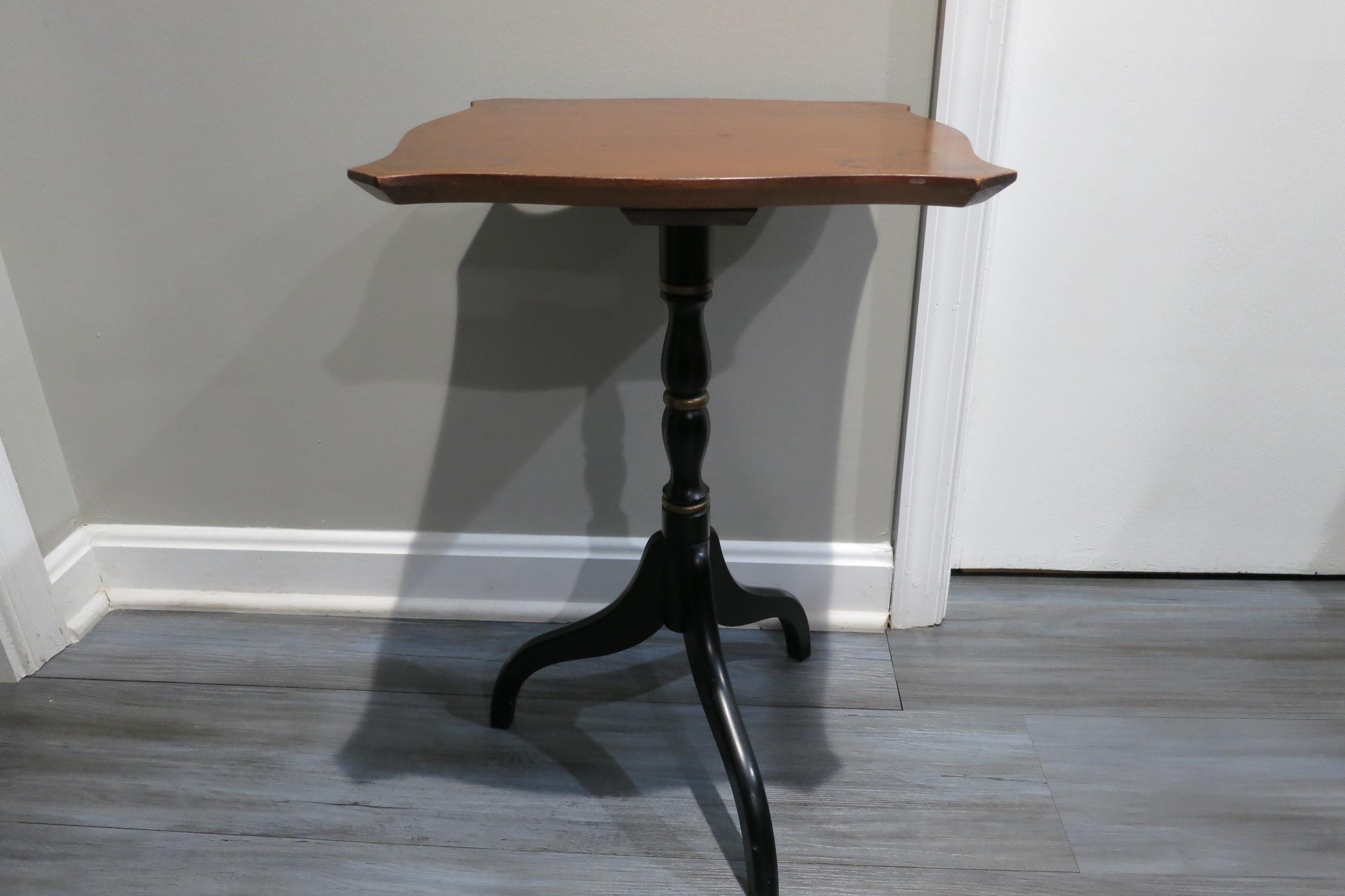 Vintage L Hitchcock Side Table Tri leg Stenciled Signed Black Base.