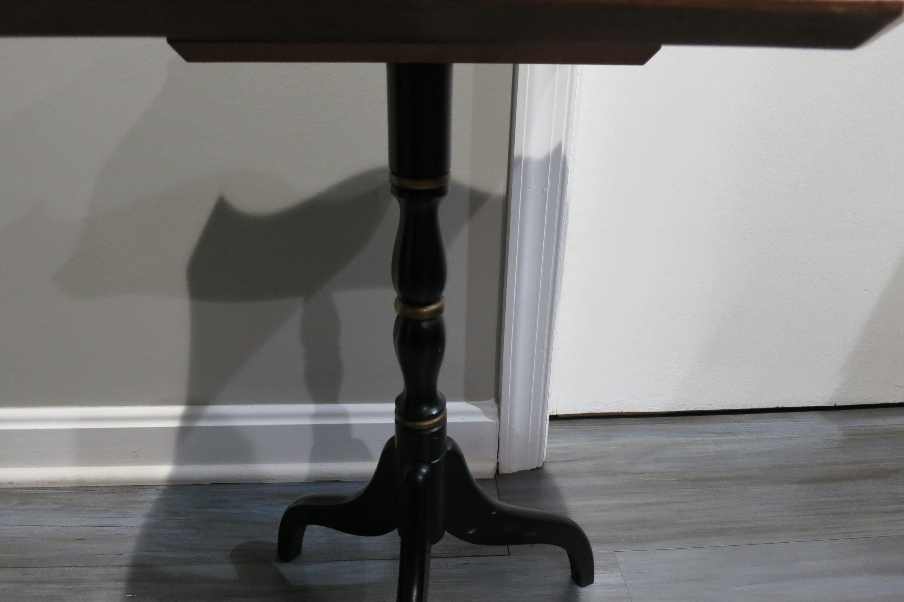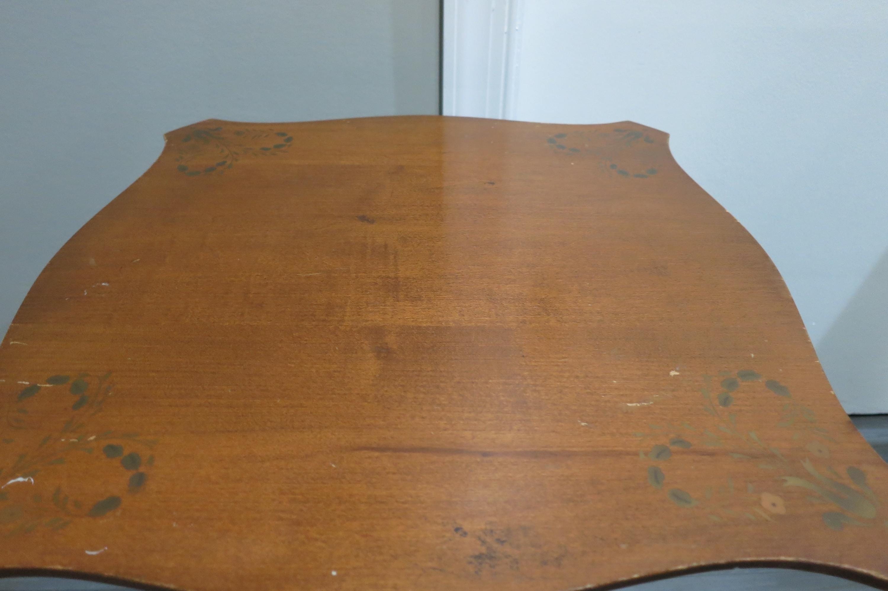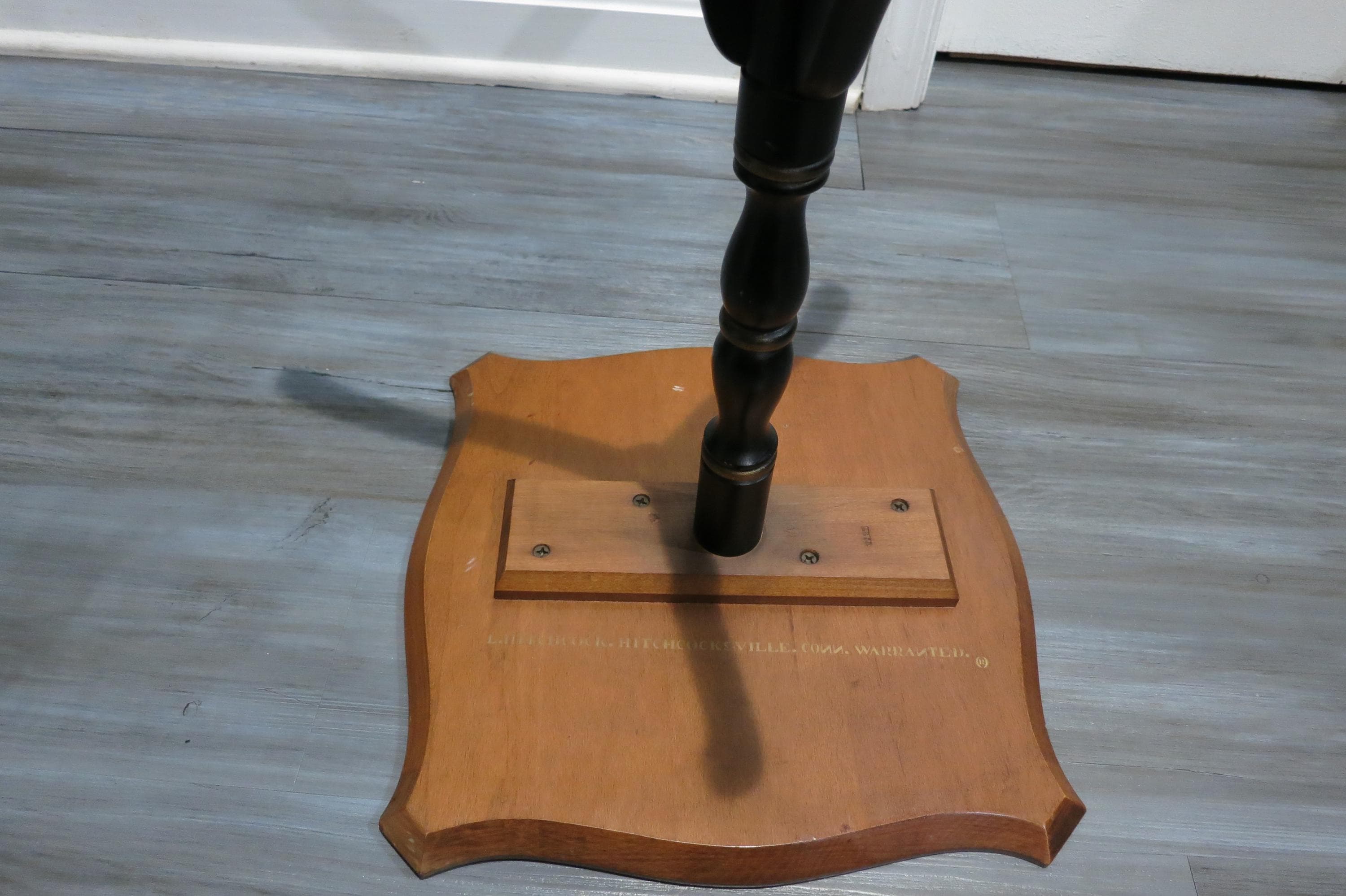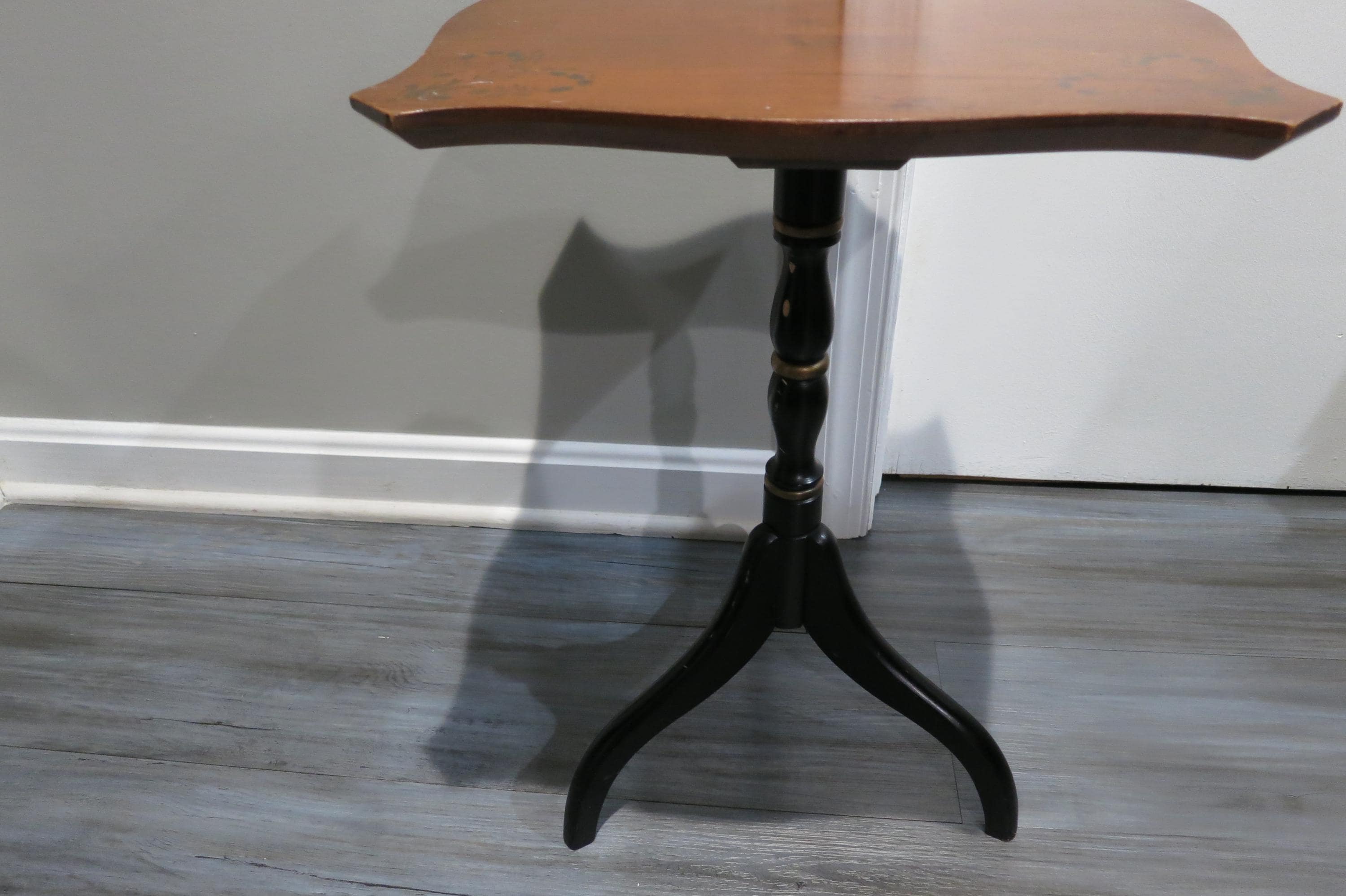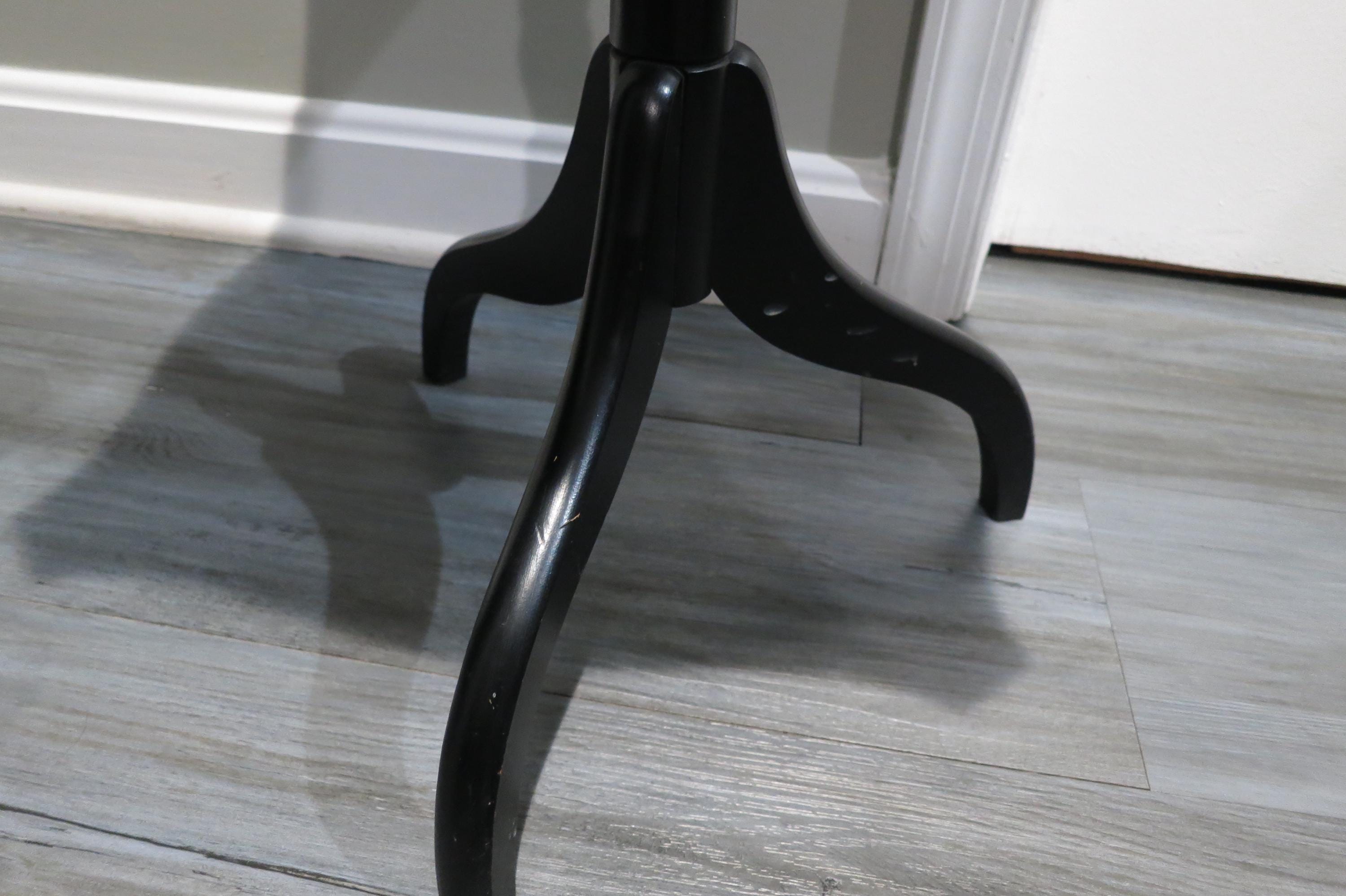 Vintage L Hitchcock Side Table Tri leg Stenciled Signed Black Base.