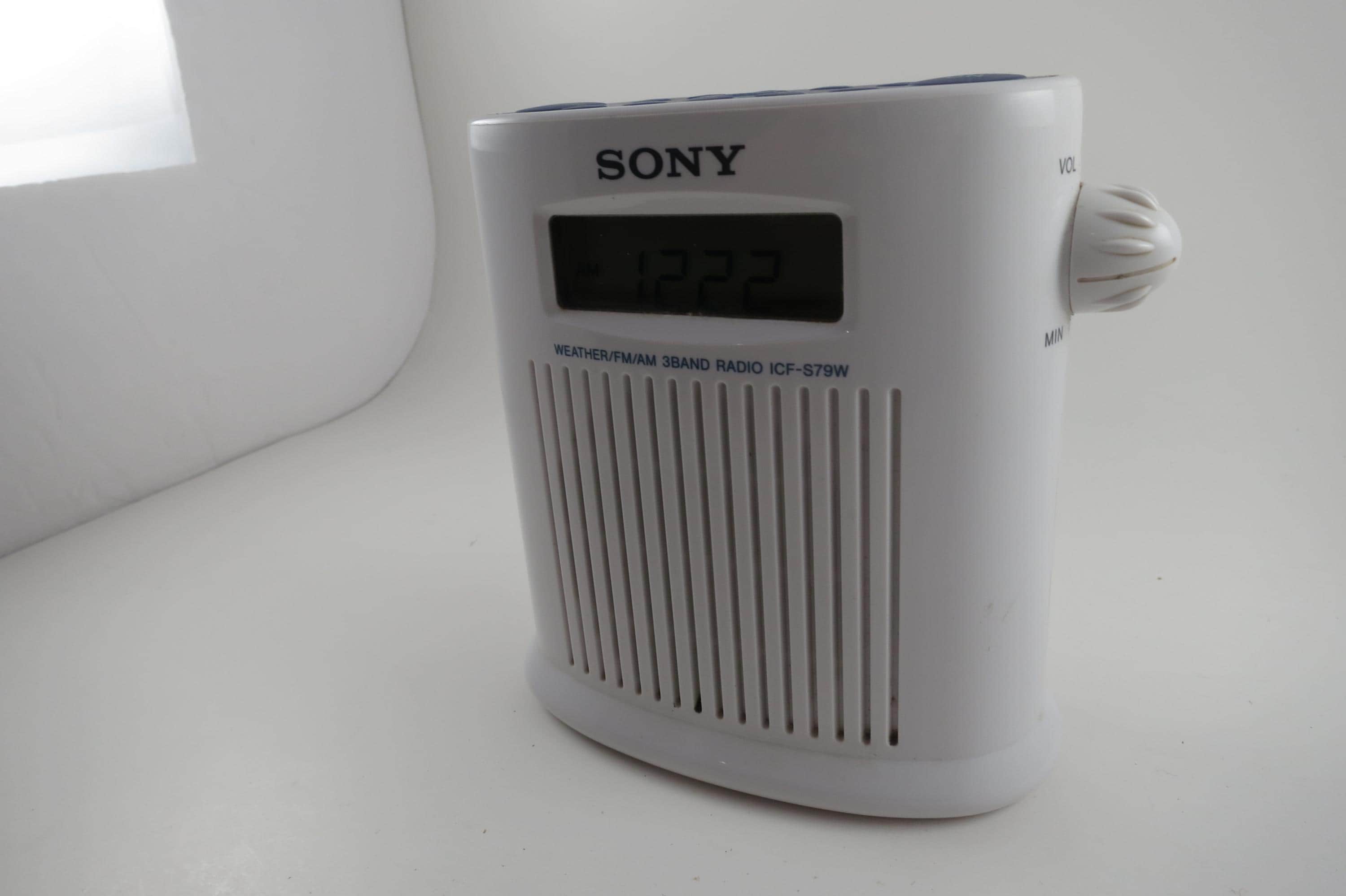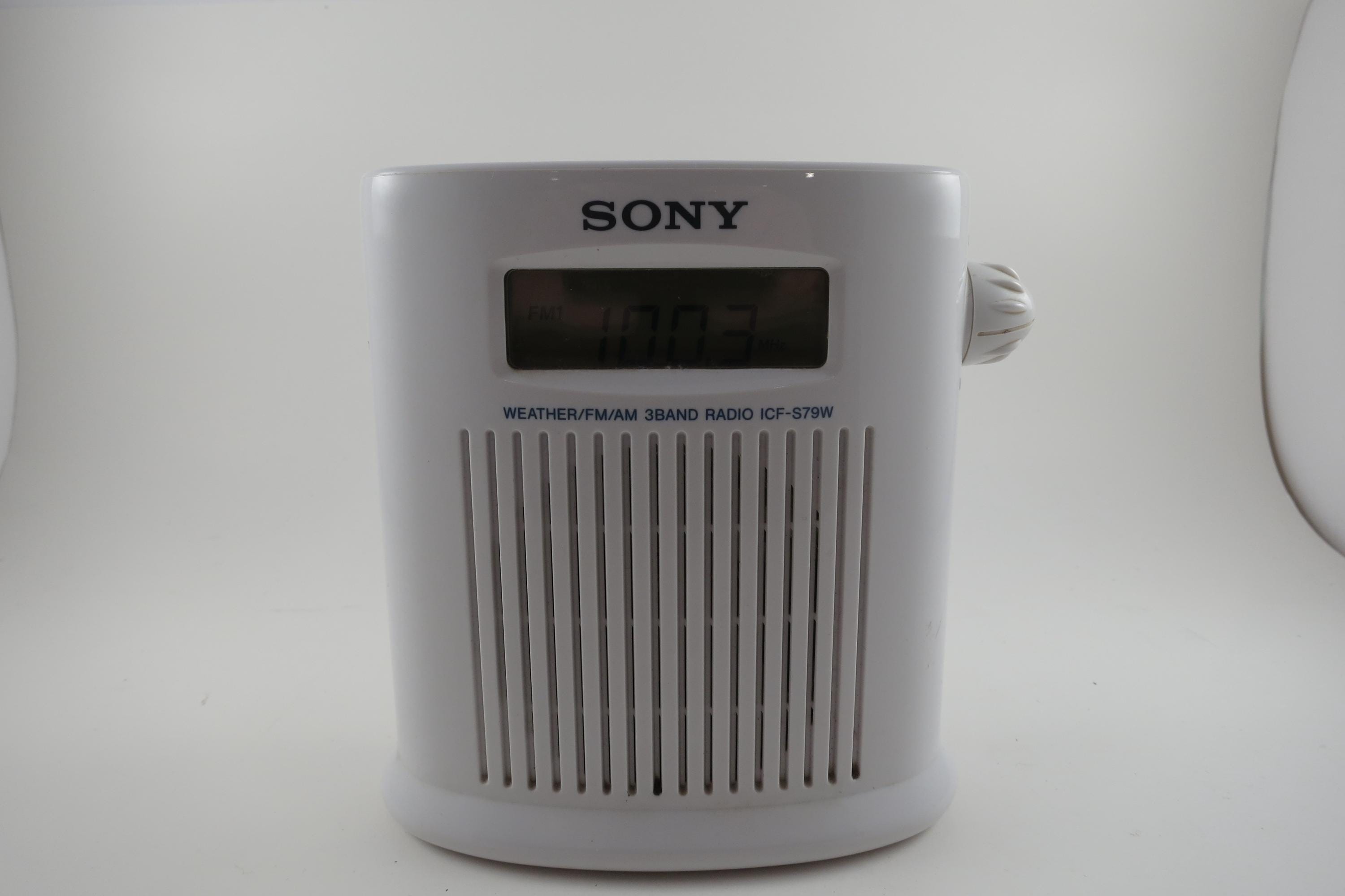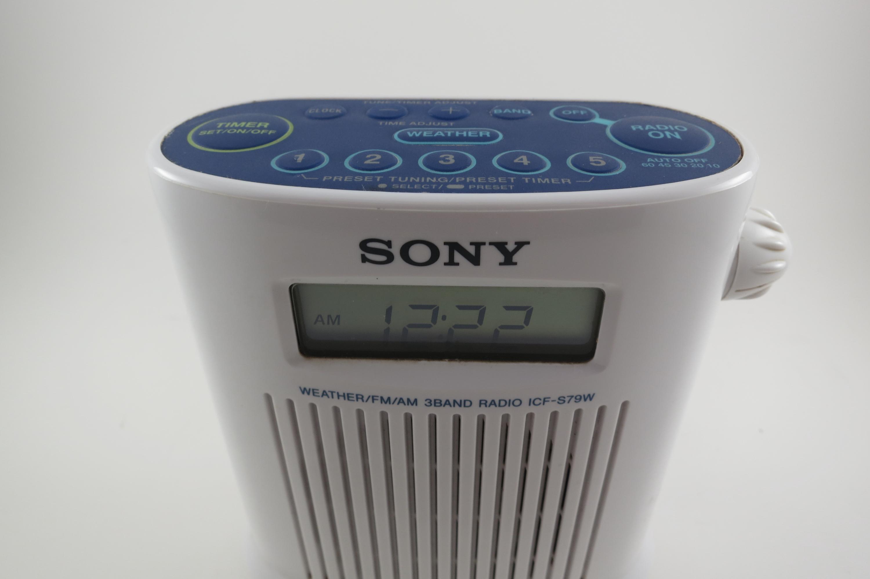 Vintage 1990s Sony ICF-579W Weather AM/FM Radio Blue and White Shower