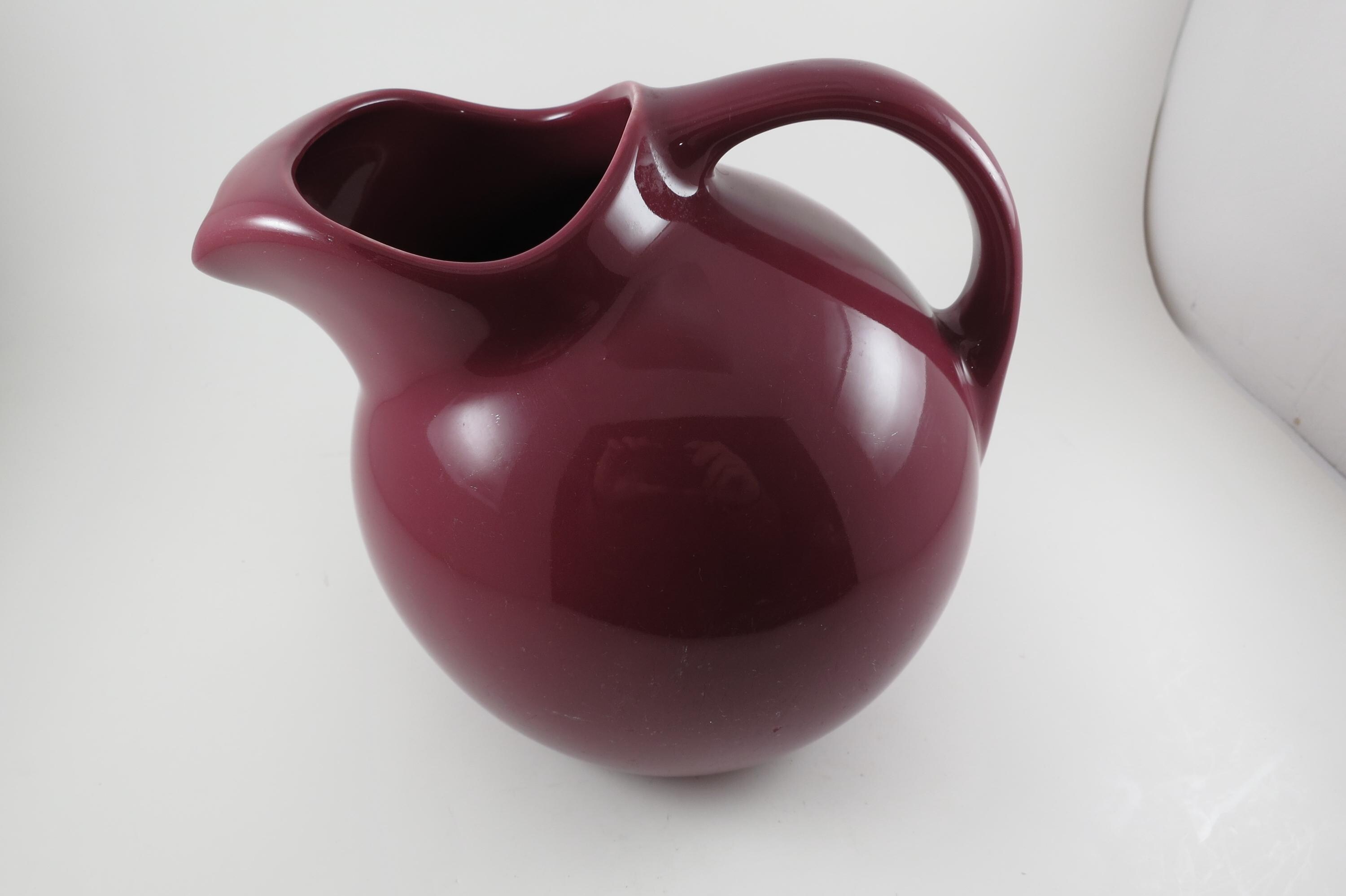 Vintage Hall 633 Red Ball Pitcher with Ice Lip.