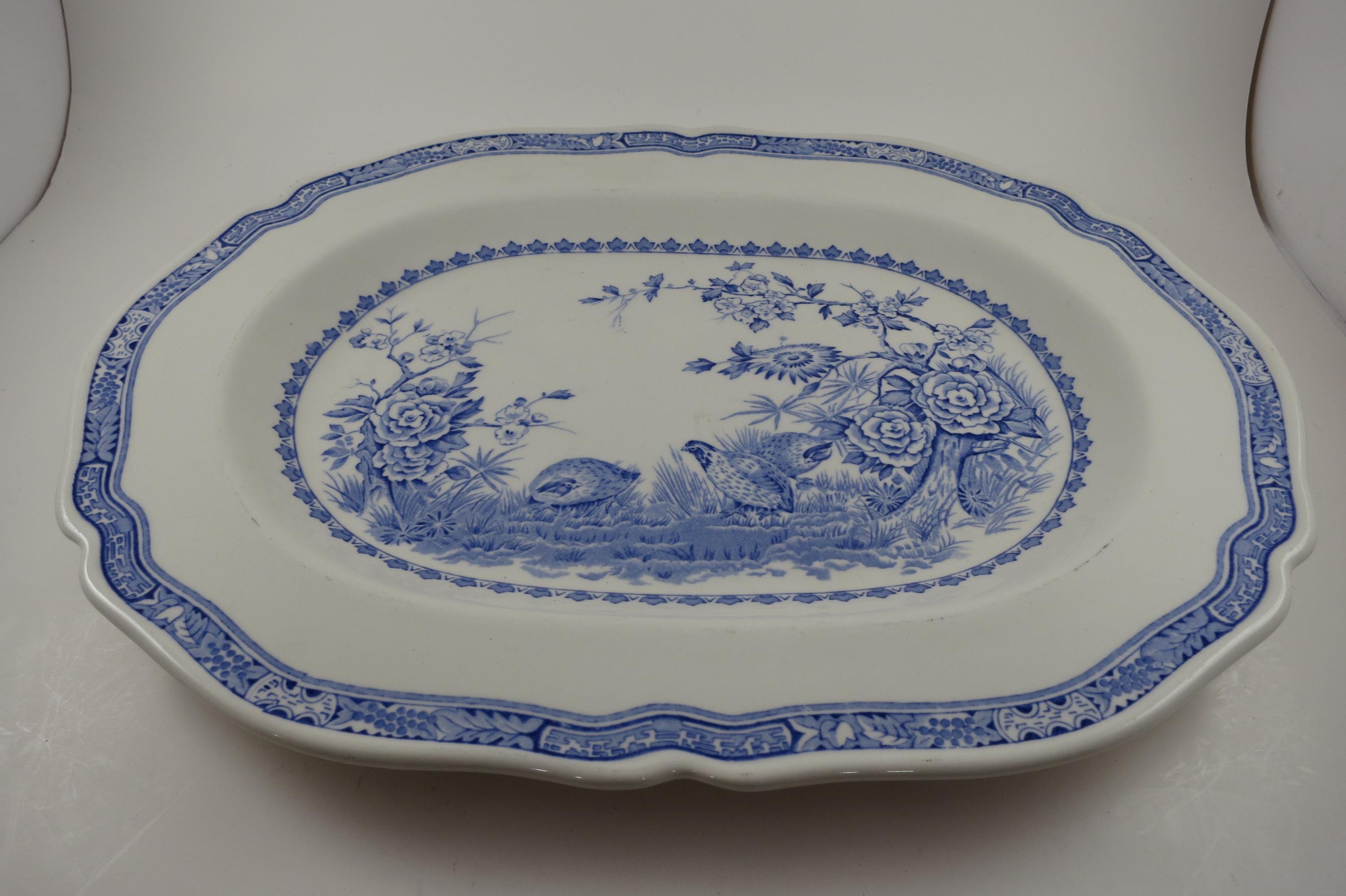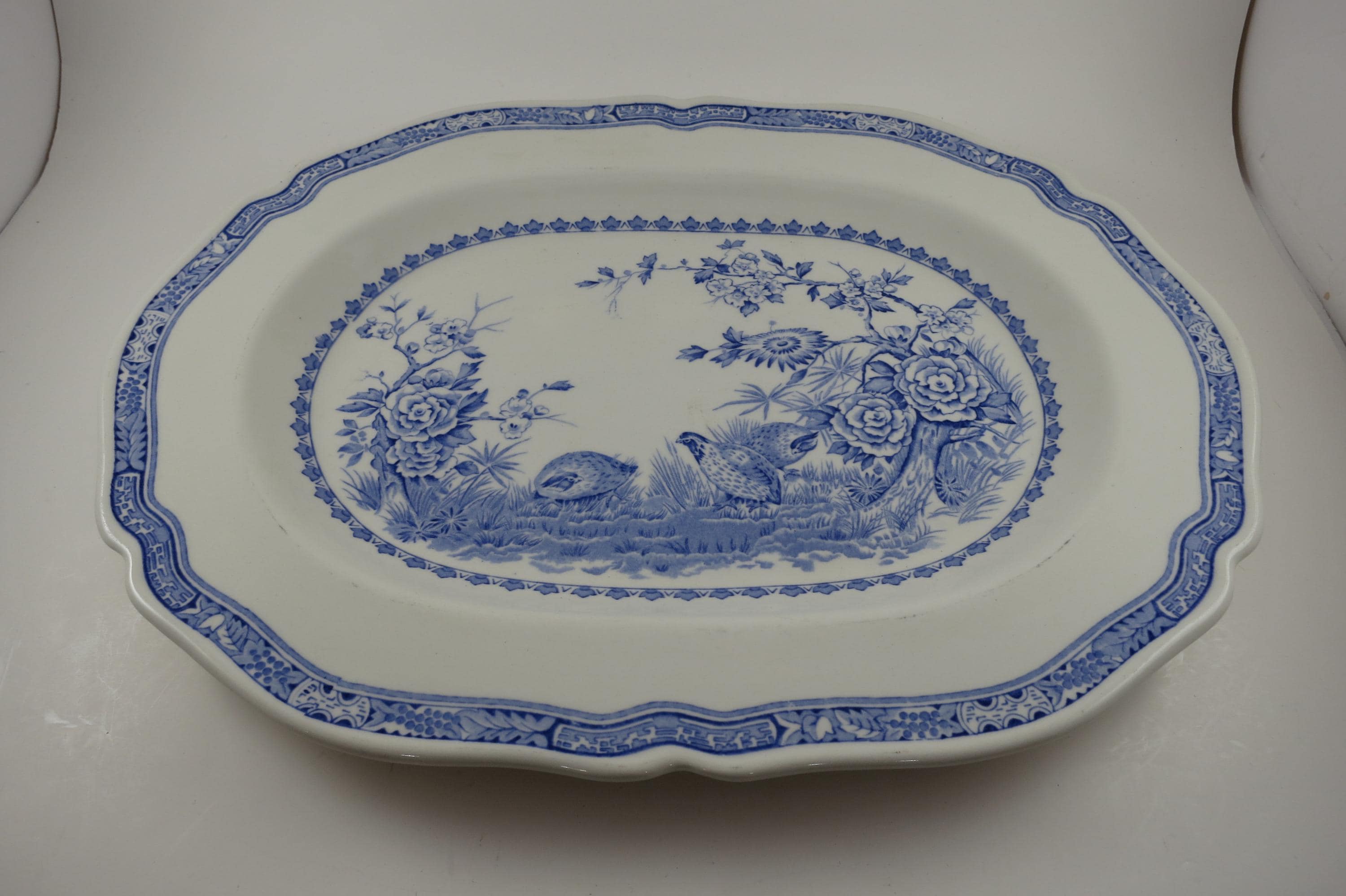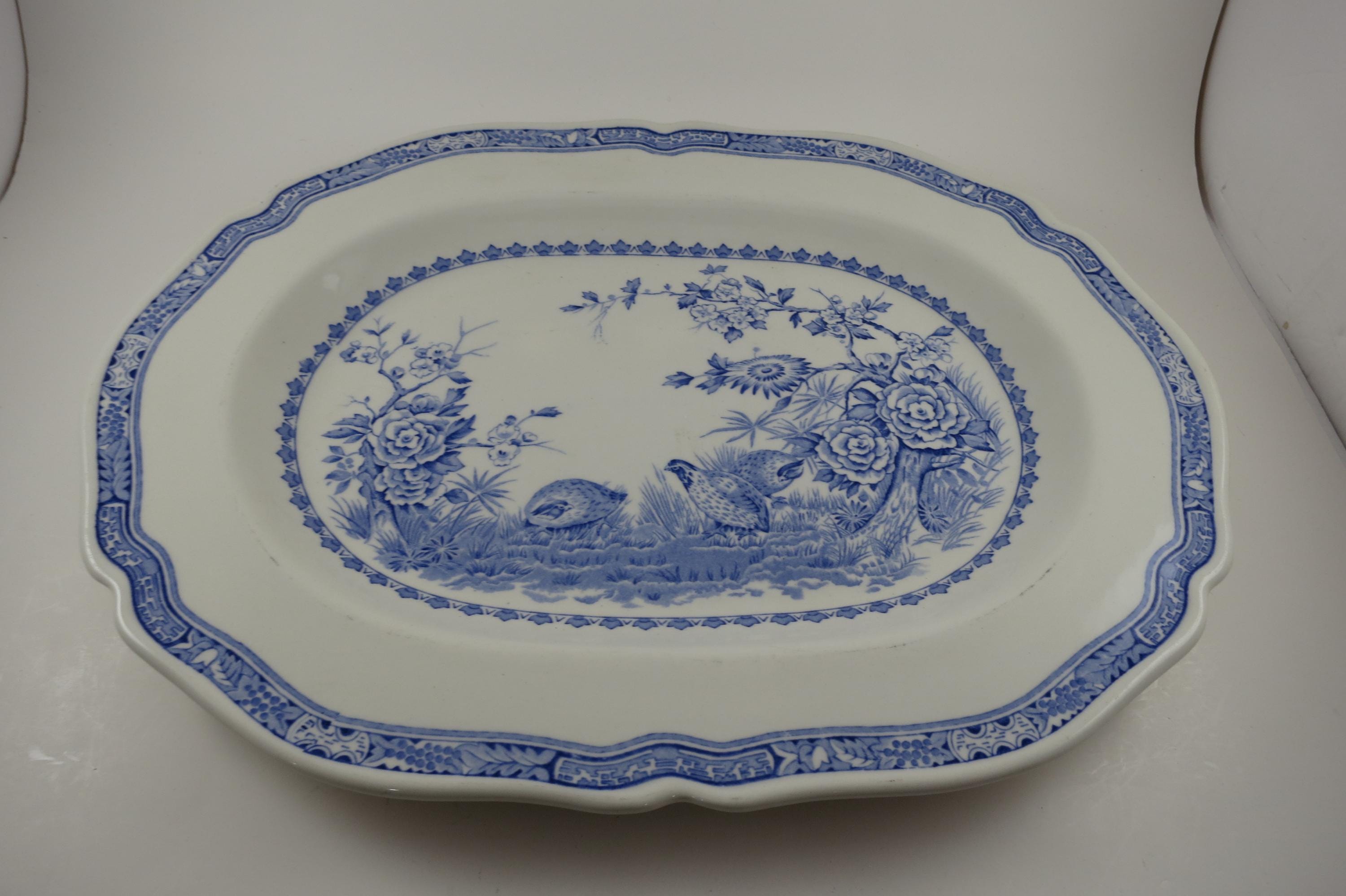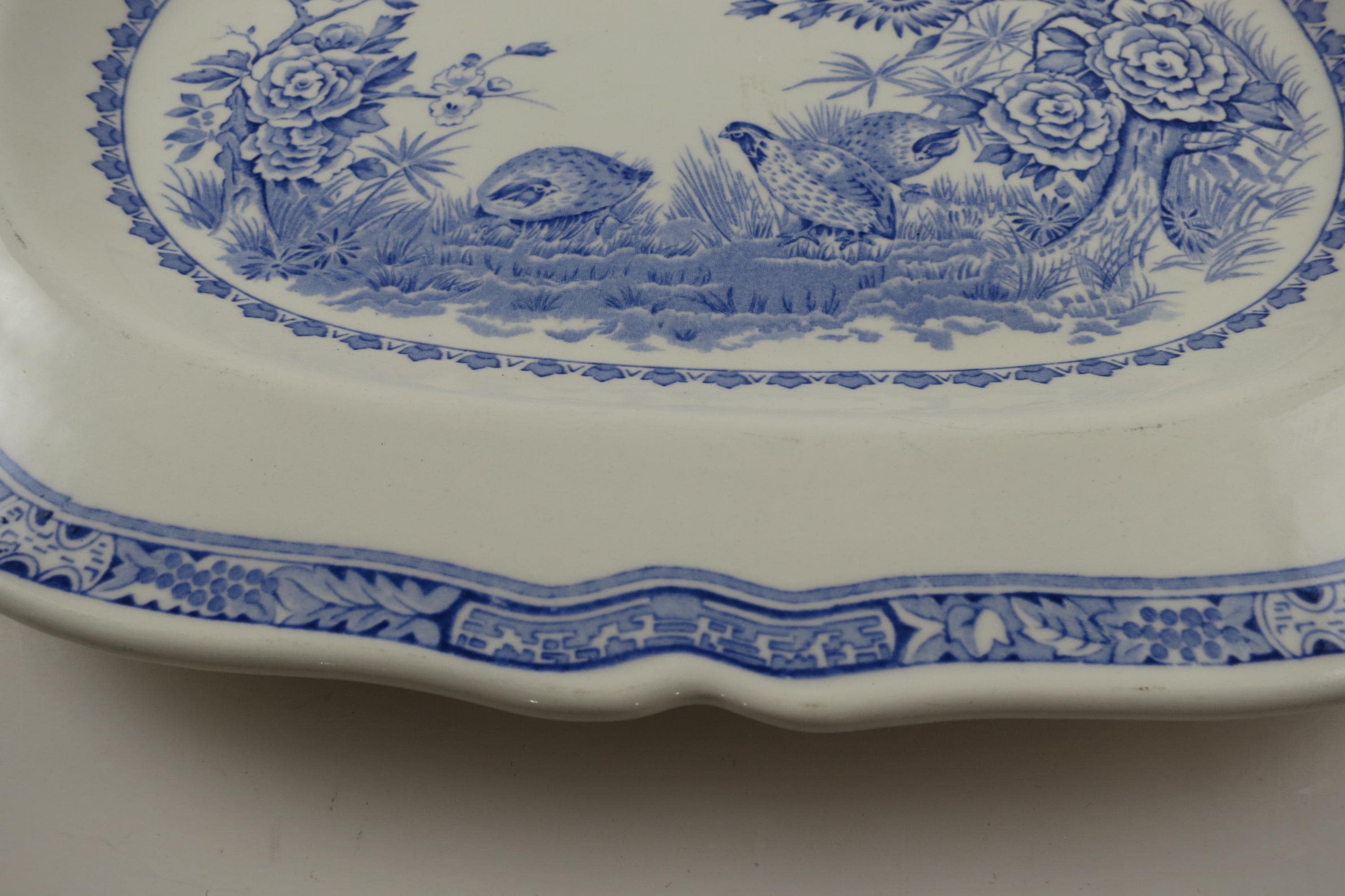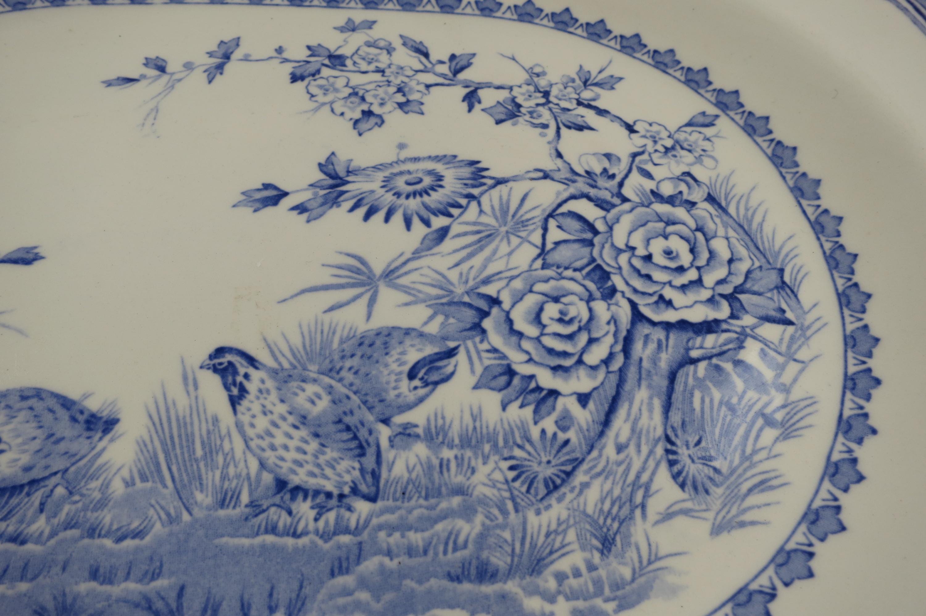 Vintage Mason's Ironstone Quail Blue & White Platter 15.5 Inches