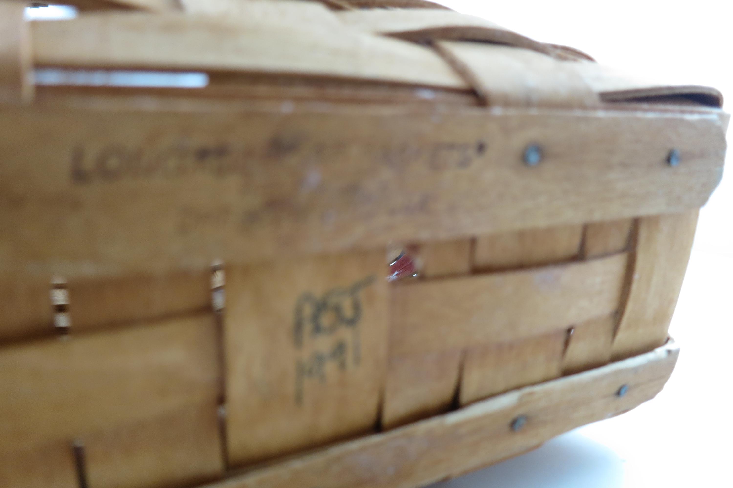 1991 Longaberger Gathering Basket Excellent Condition Signed and Dated. No damages, beautiful basket! Measures 9 1/2 inches wide and 9 1/2 inches tall. (Without the handles of course). As with all Authentic Longabergers, this one is artist initialed and dated on the bottom.