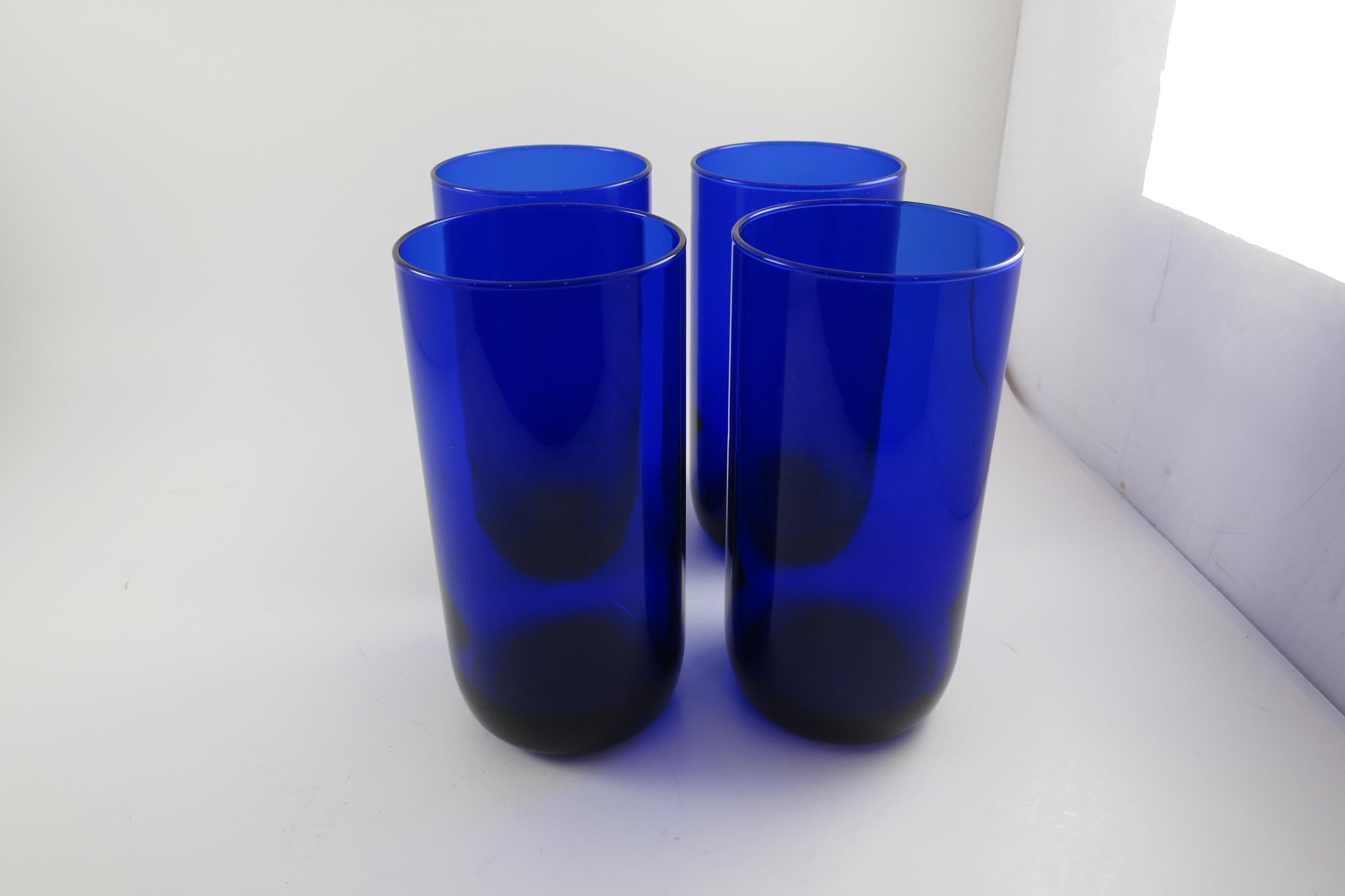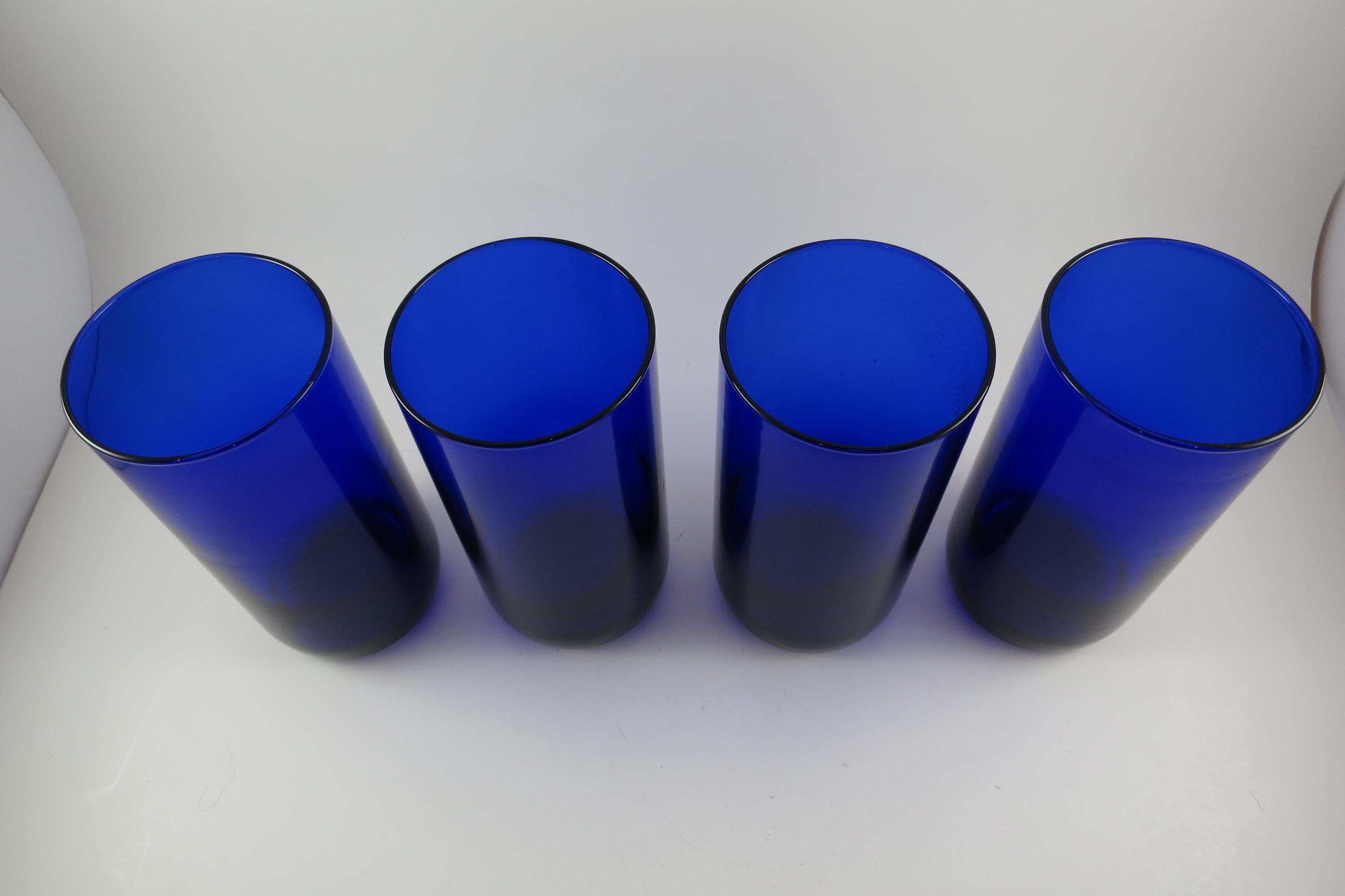 Vintage Set of Four Cobalt Blue Water Glasses.