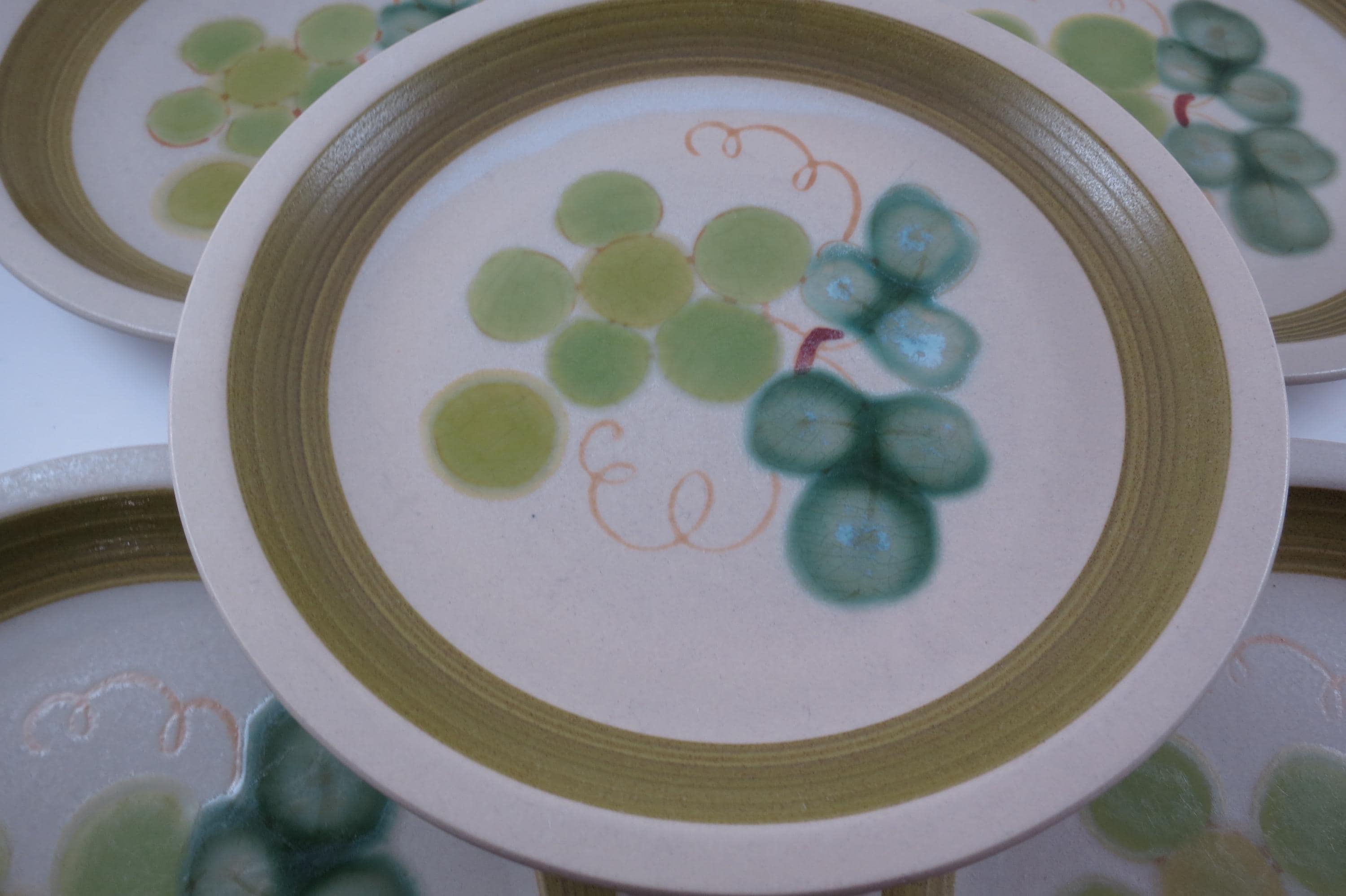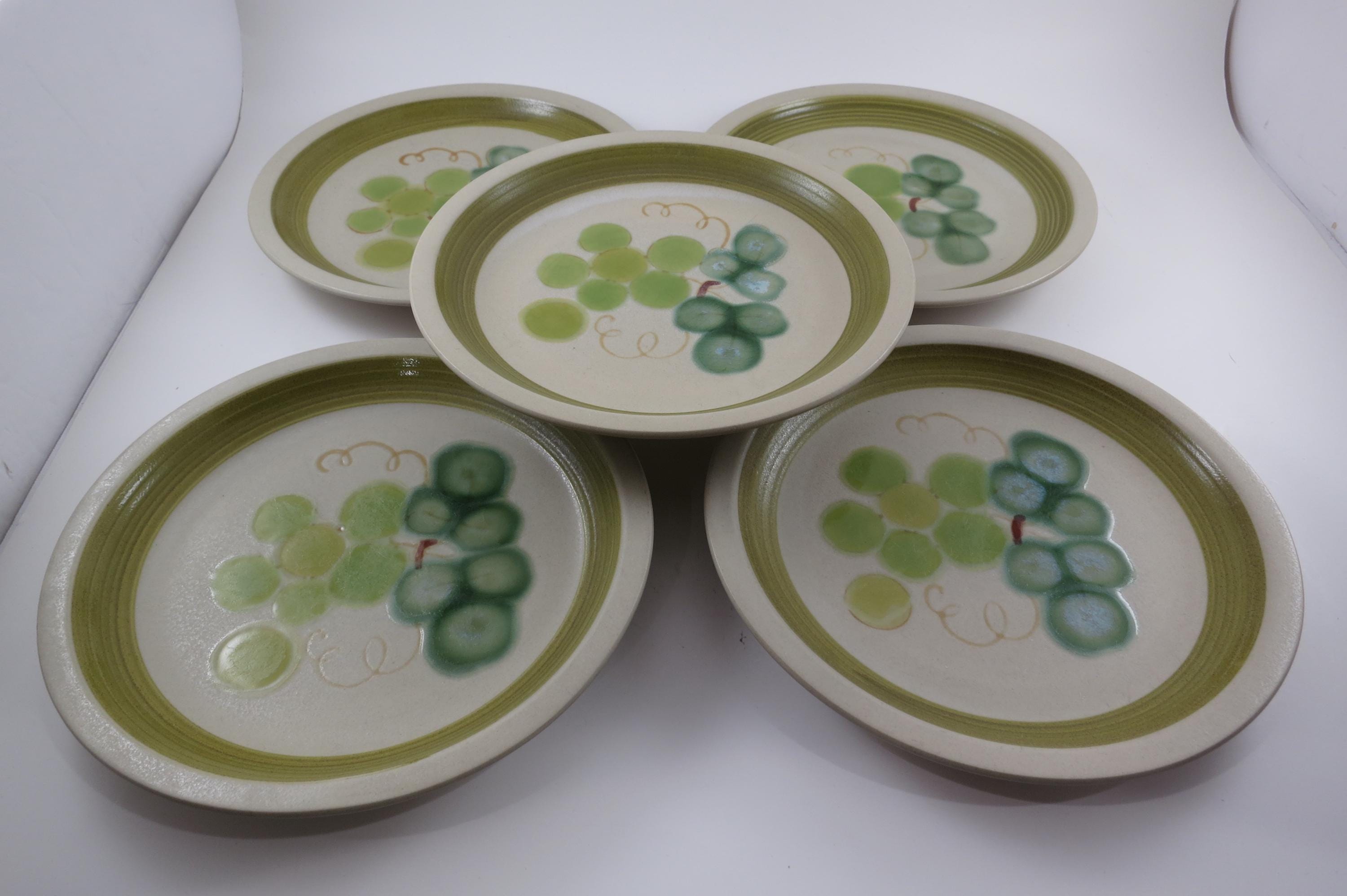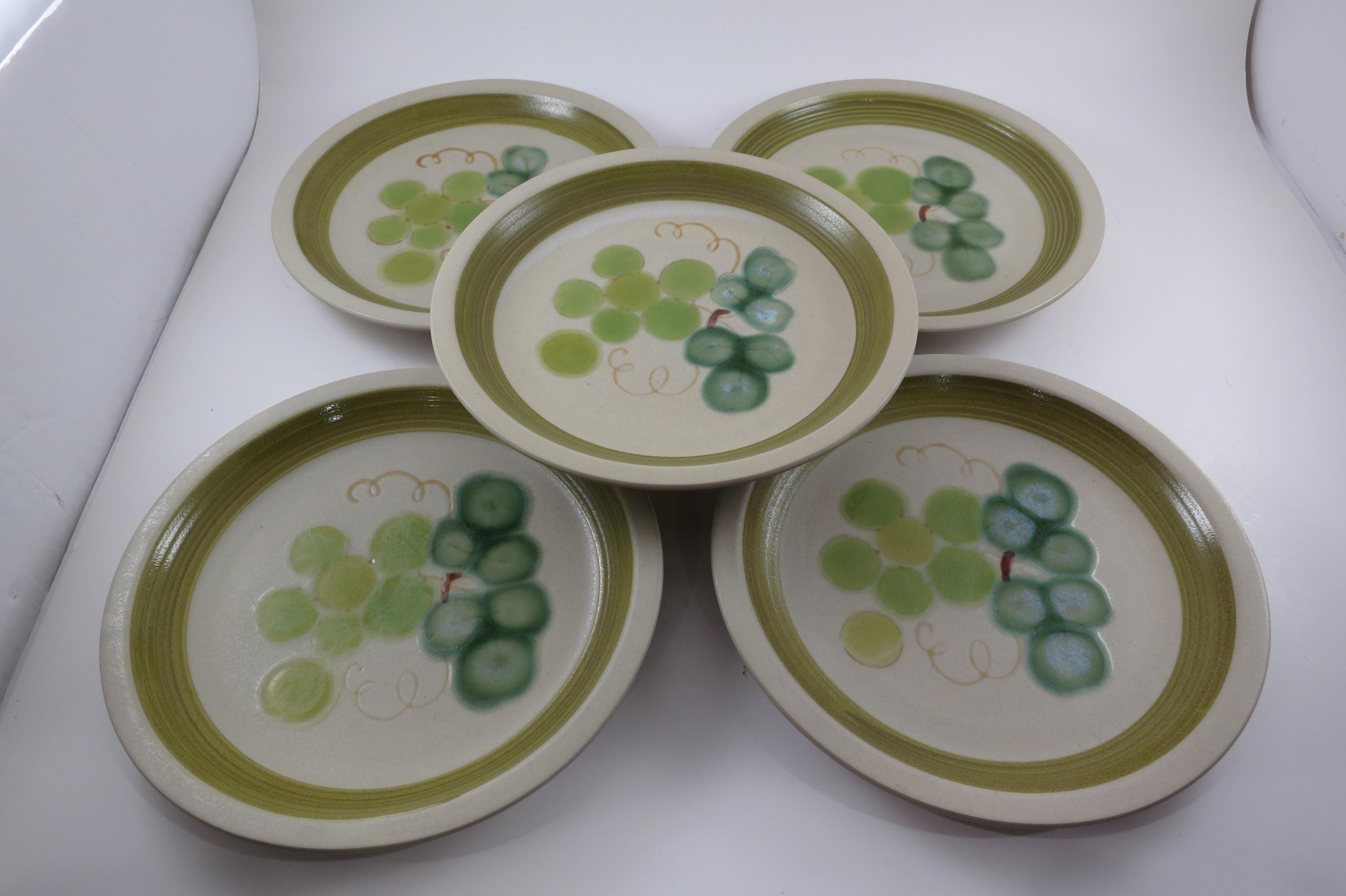 Set of 5 Vintage Tokay Stoneware Grapes 7 1/2 Inch Salad Plates.