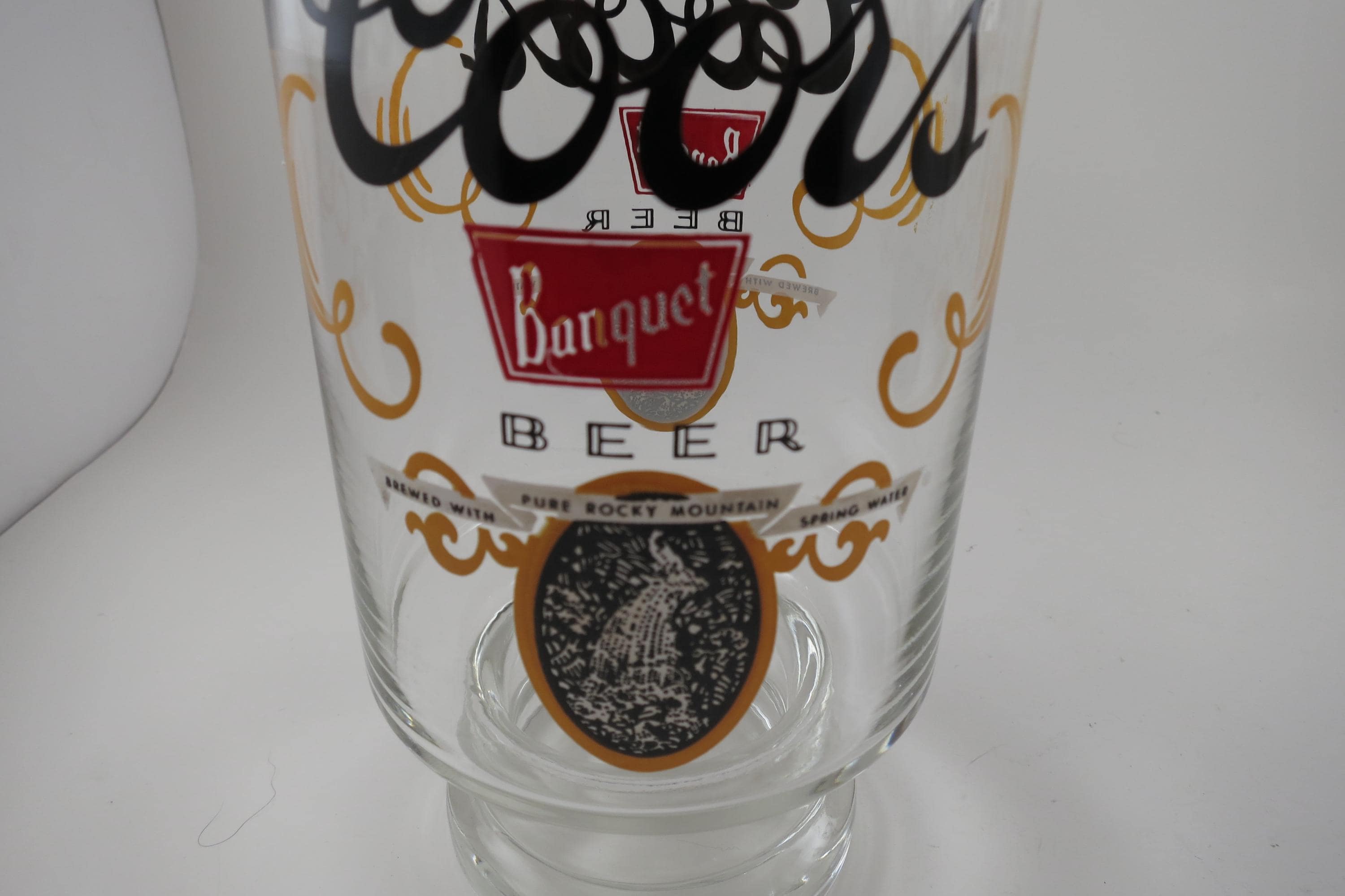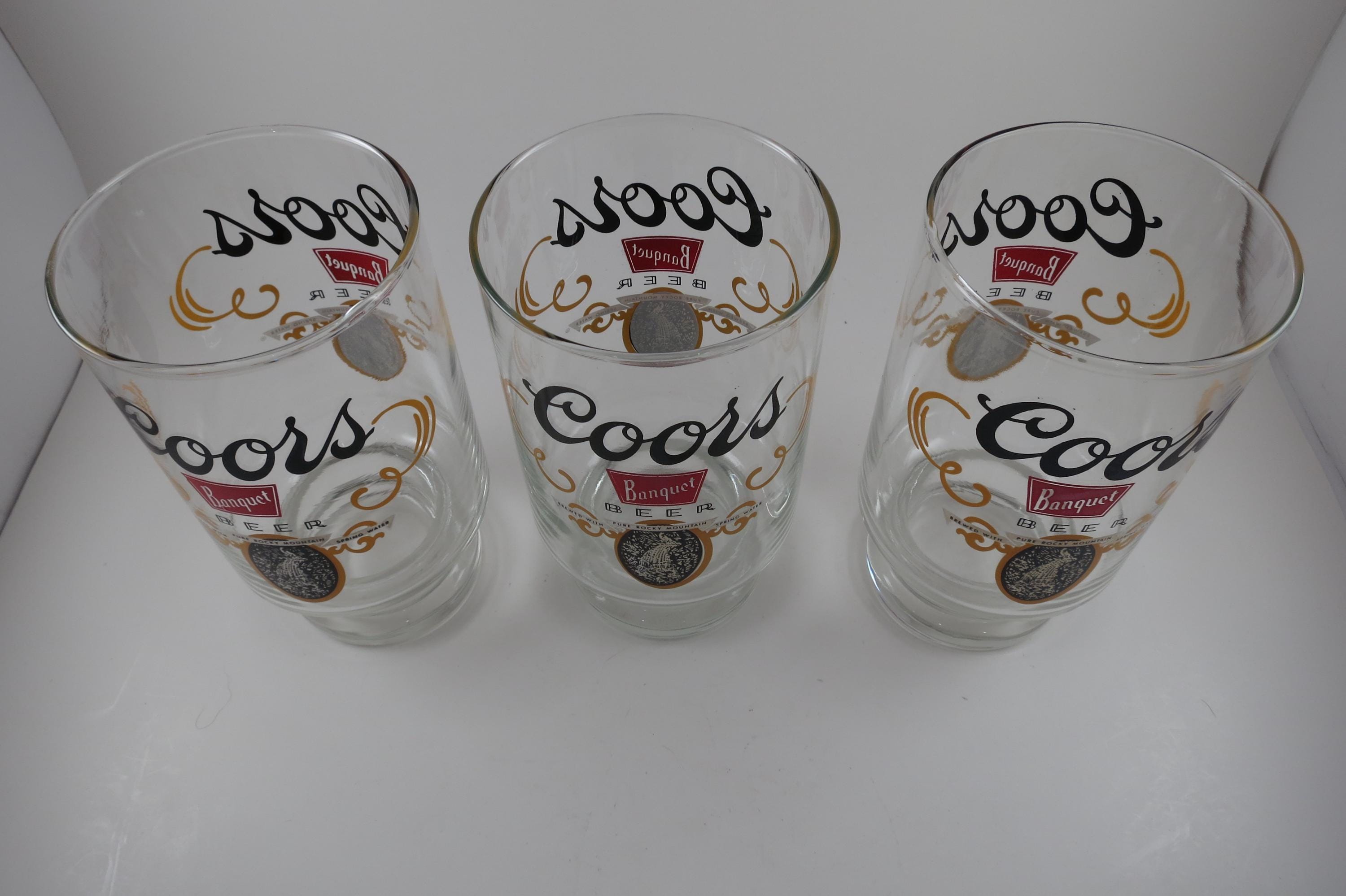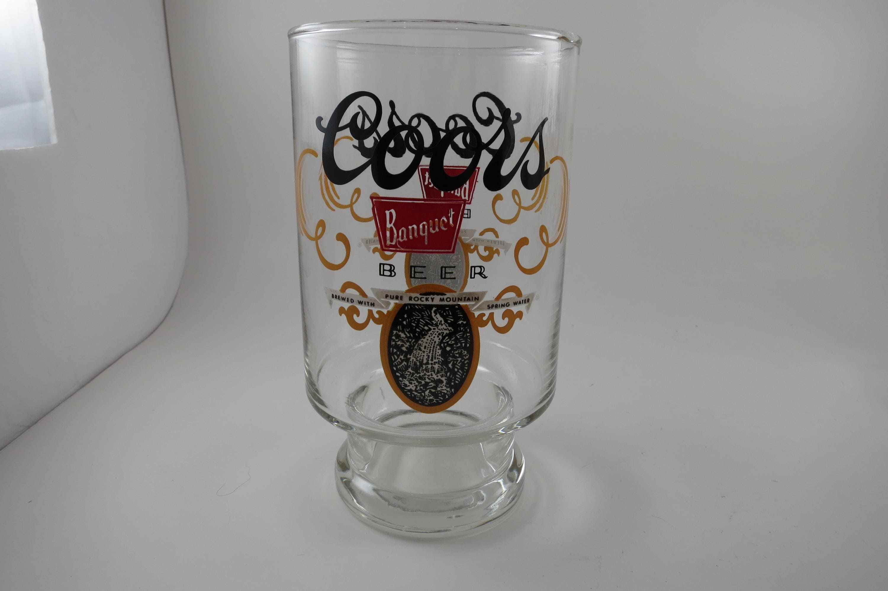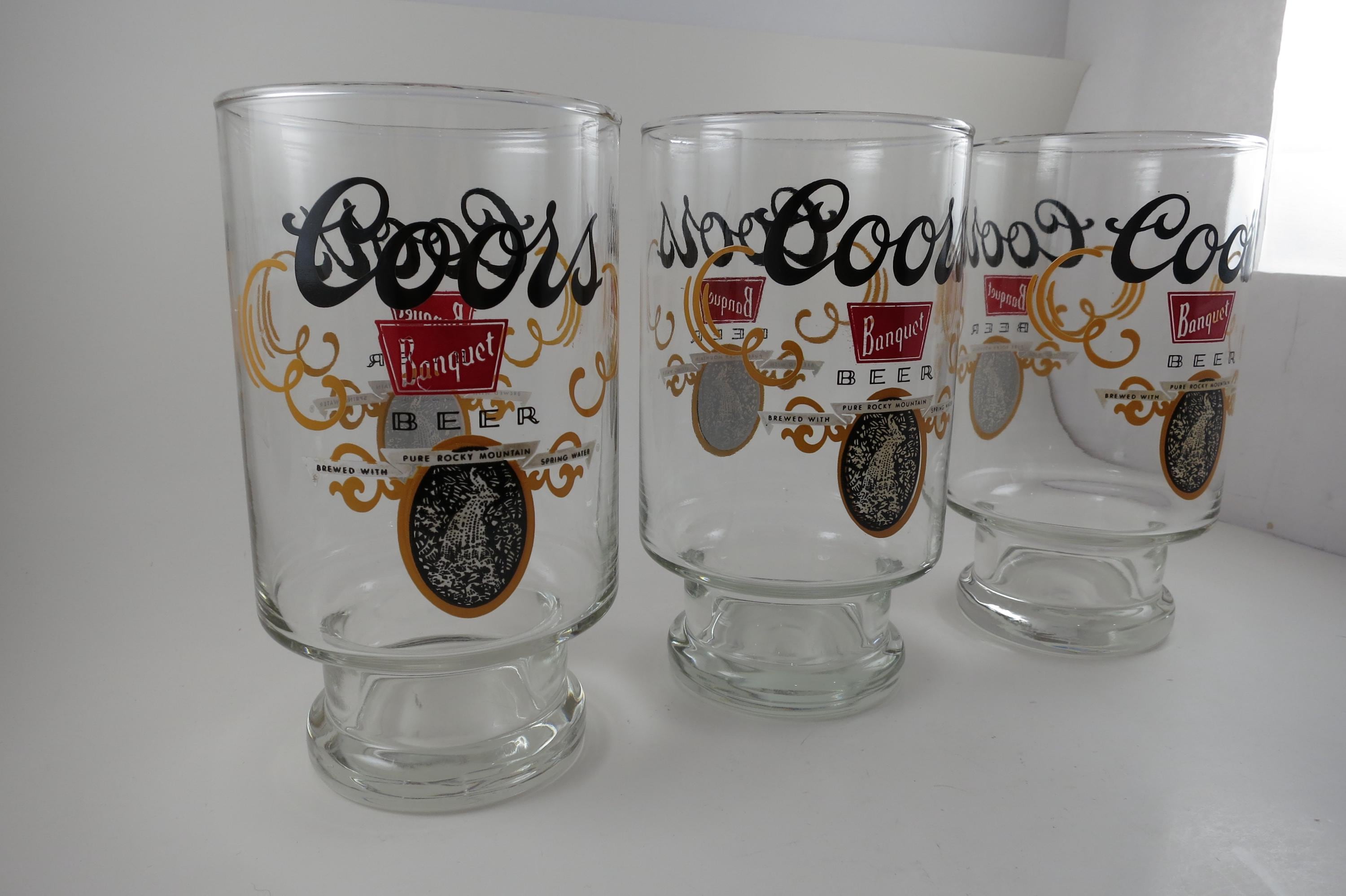 Set of 3 Large 1970’s Vintage Coors Banquet Footed Beer Glasses With Rocky Mountain Emblem.