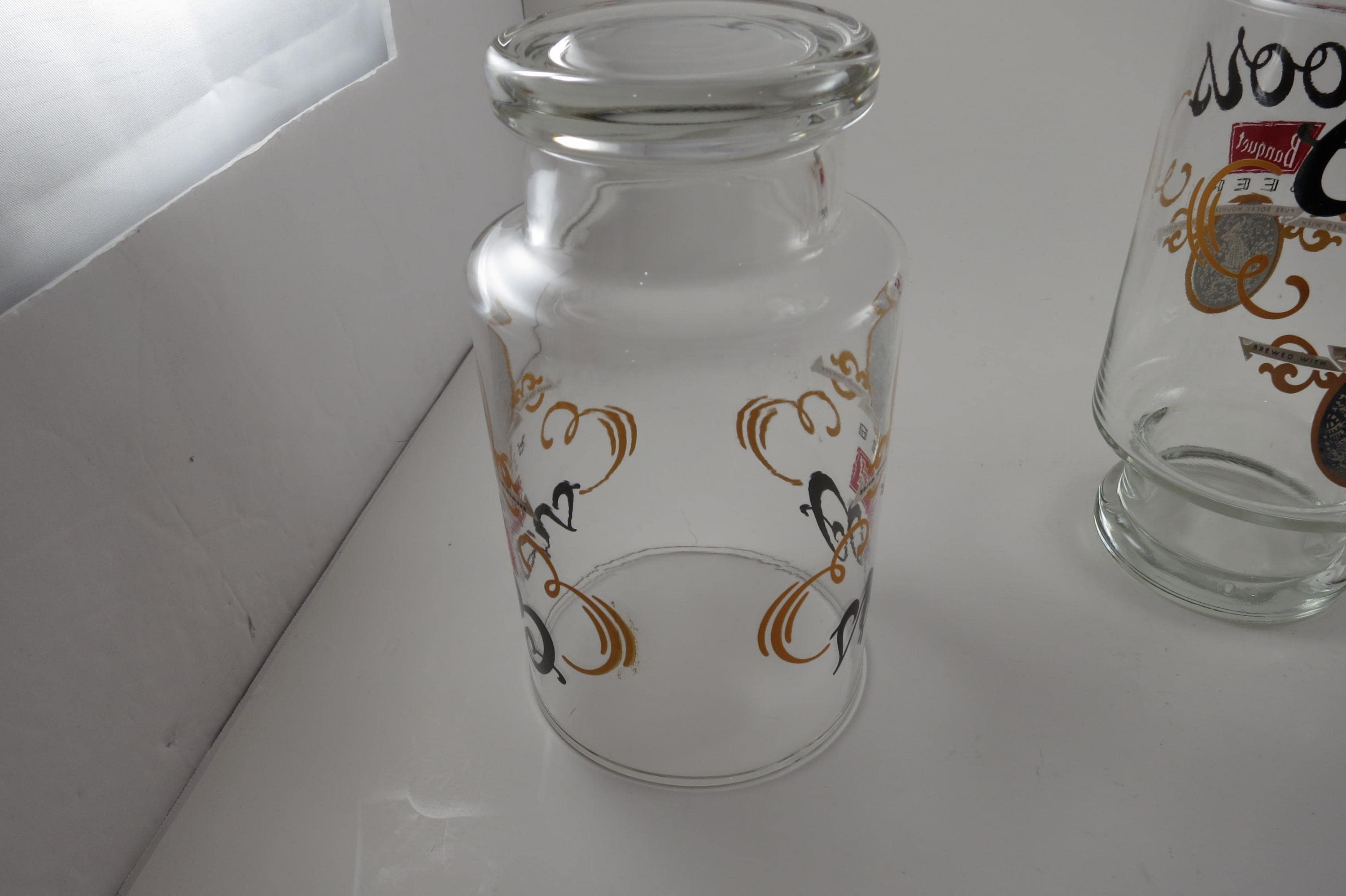 Each measures 6 3/4 inches tall and 3 3/4 inches wide at the rim. Backs have some fading. Fronts look perfect.
