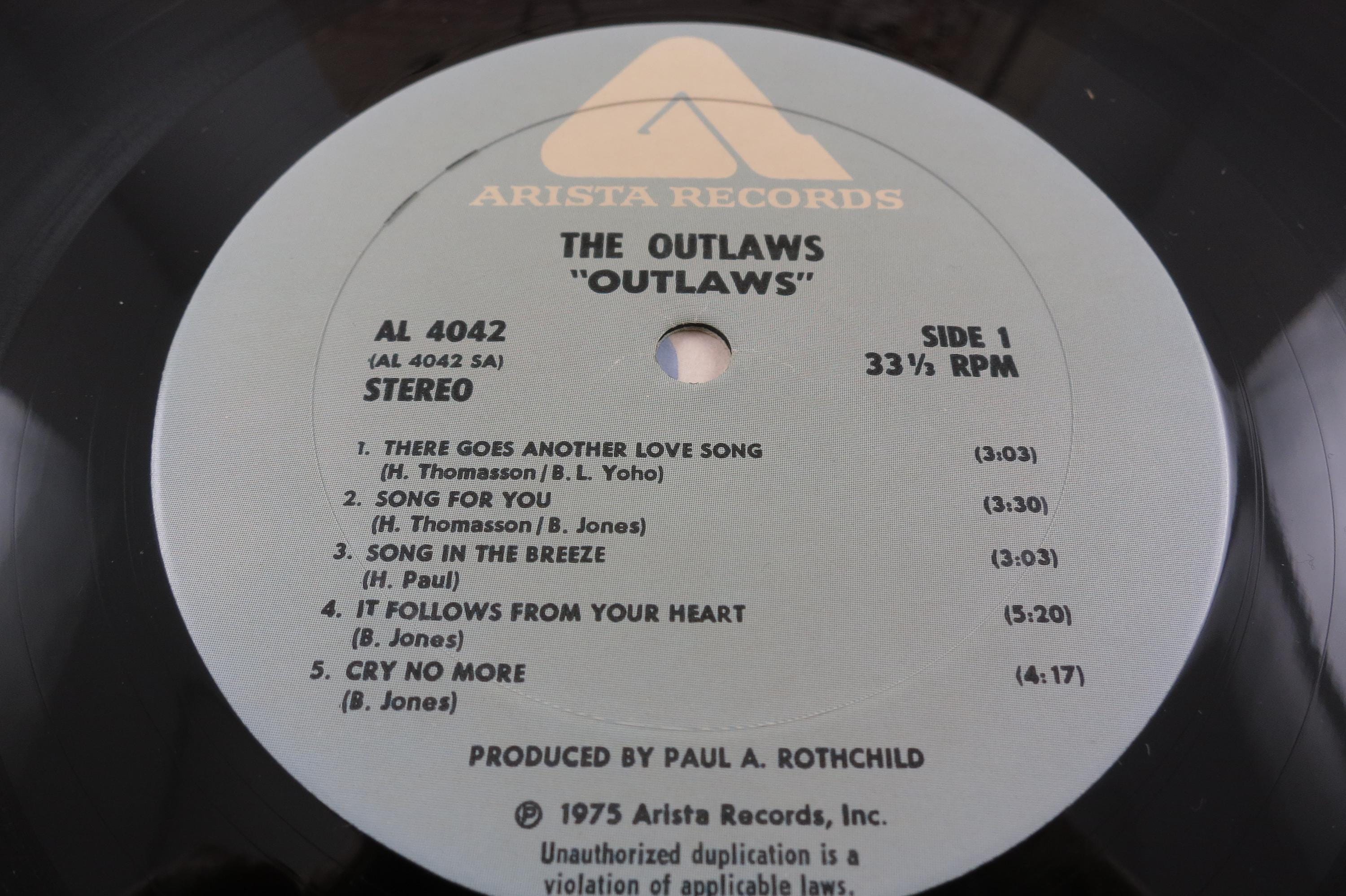 Vintage 1979 Vinyl LP Record Outlaws The Outlaws Near Mint Condition. Original cover is in excellent condition and includes the original inner paper sleeve. Record is Near Mint. Tracks are as follows