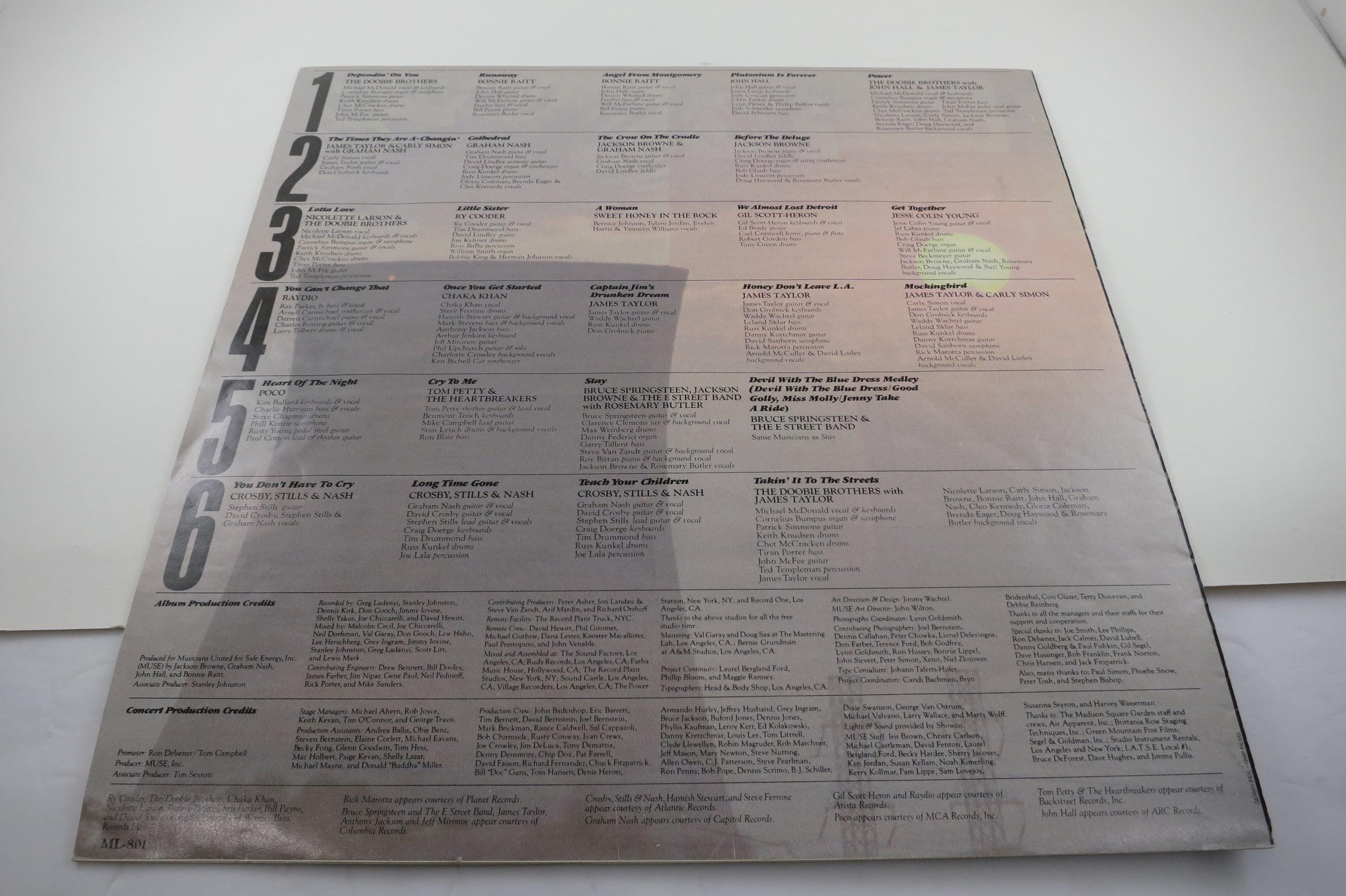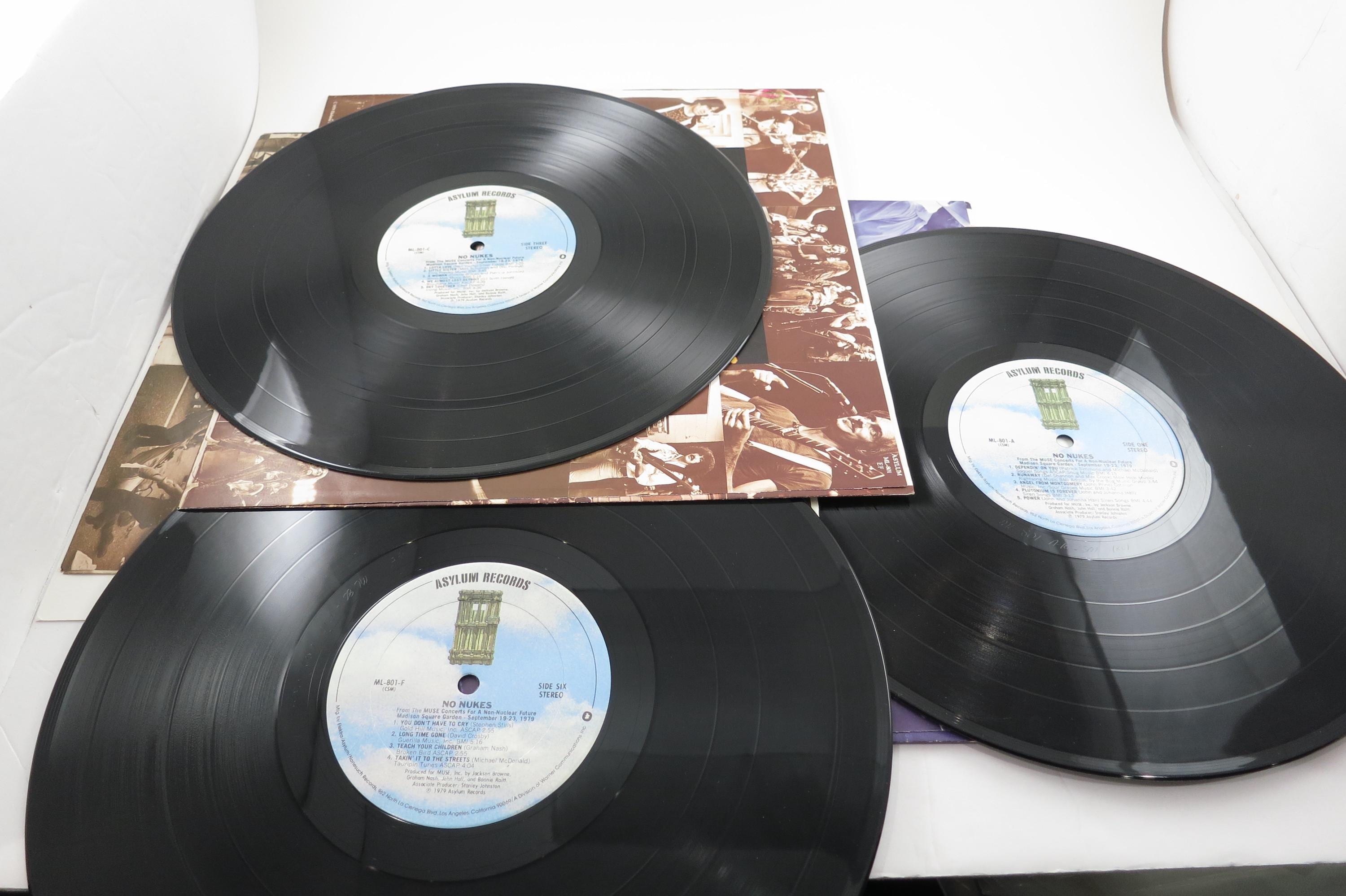 1979 Vinyl LP Three Record Set No Nukes Concert for a Non Nuclear Future Springsteen Nash Raydio Tom Petty More. Original gate fold cover is in excellent condition and includes all the original inner paper sleeves. Records are all excellent and play great. Includes the original book as well. Tracks are as follows