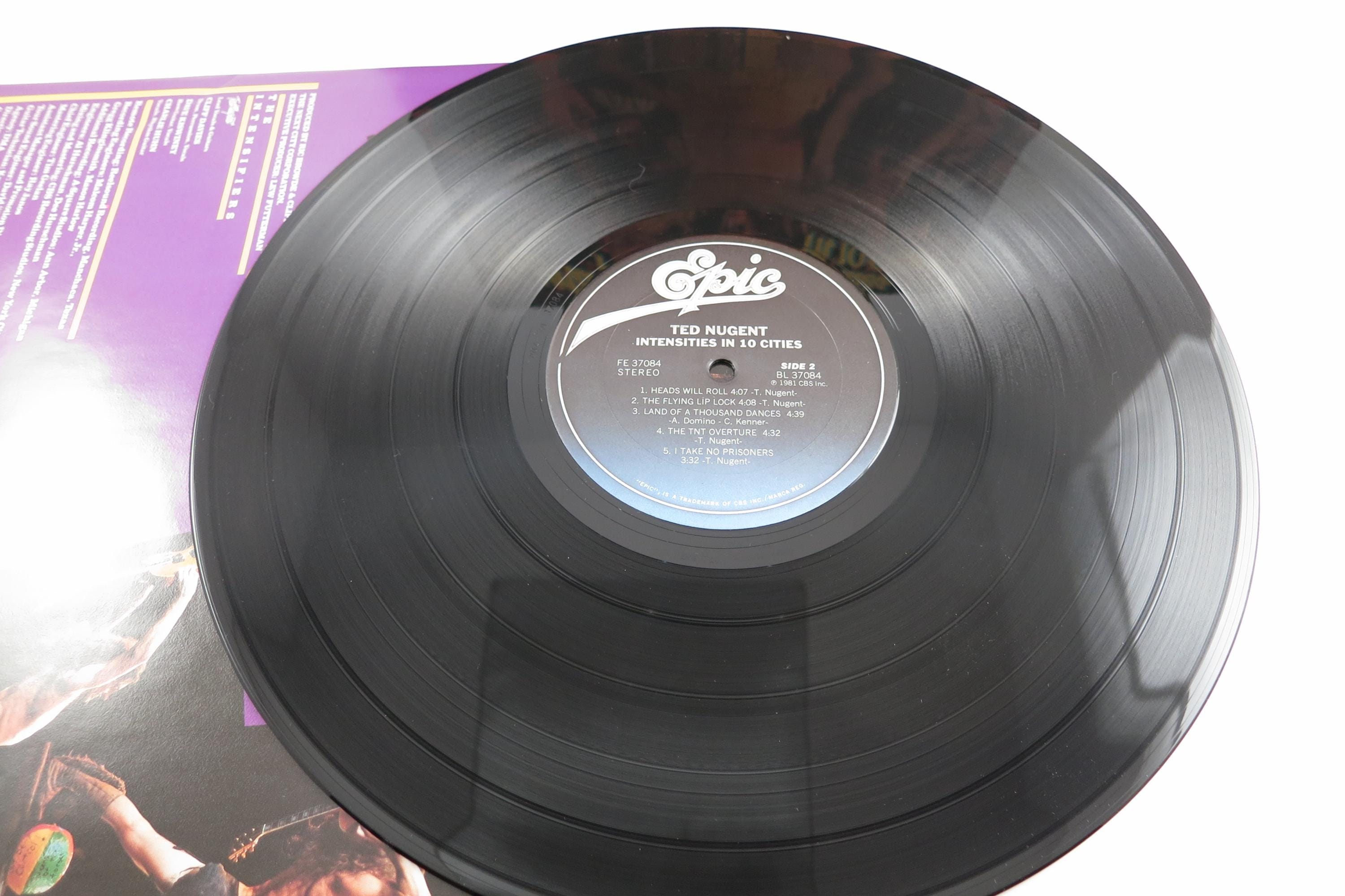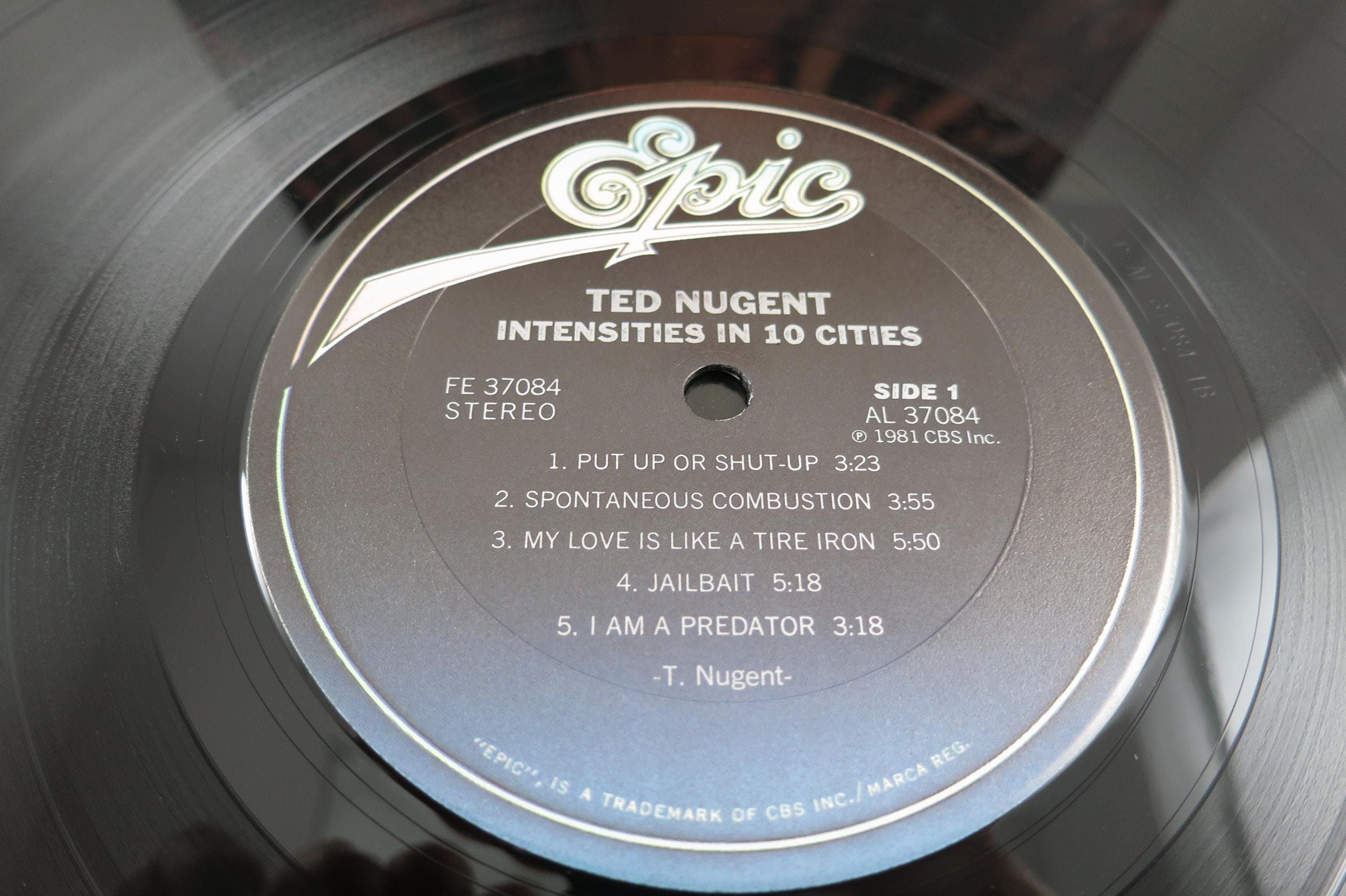 Vintage 1981 Vinyl LP Record Ted Nugent Intensities in 10 Cities Live Album Near Mint Condition Promo Pressing. Original cover is In Near Mint condition and includes the original inner paper sleeve. Record is Near Mint! Promo Pressing!! Tracks are as follows
