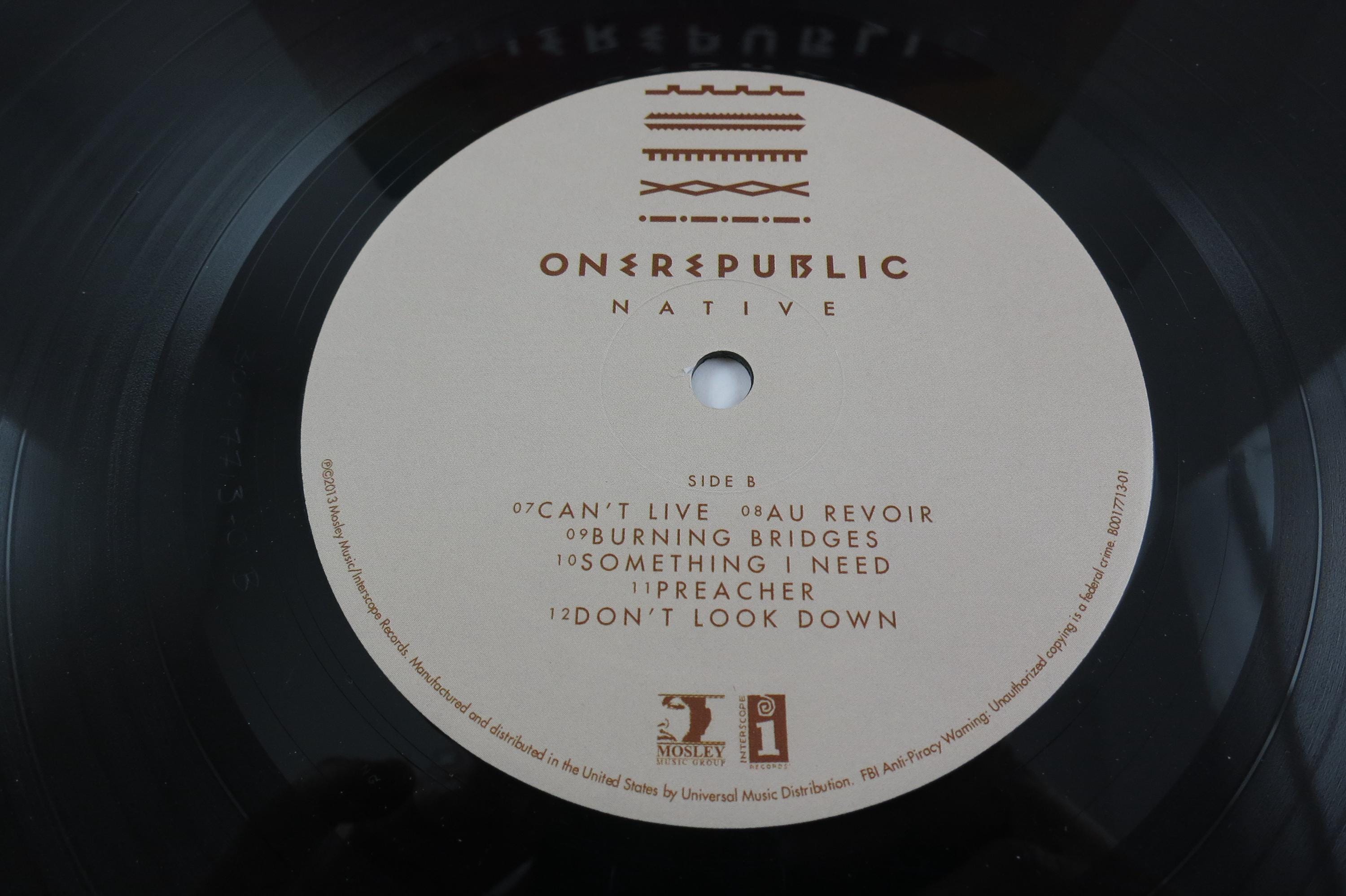 Vinyl LP Record Native- OneRepublic Original Pressing EX. Original cover is excellent and includes the inner sleeve. Record is excellent as well and plays perfectly! Original US Pressing! Tracks are as follows