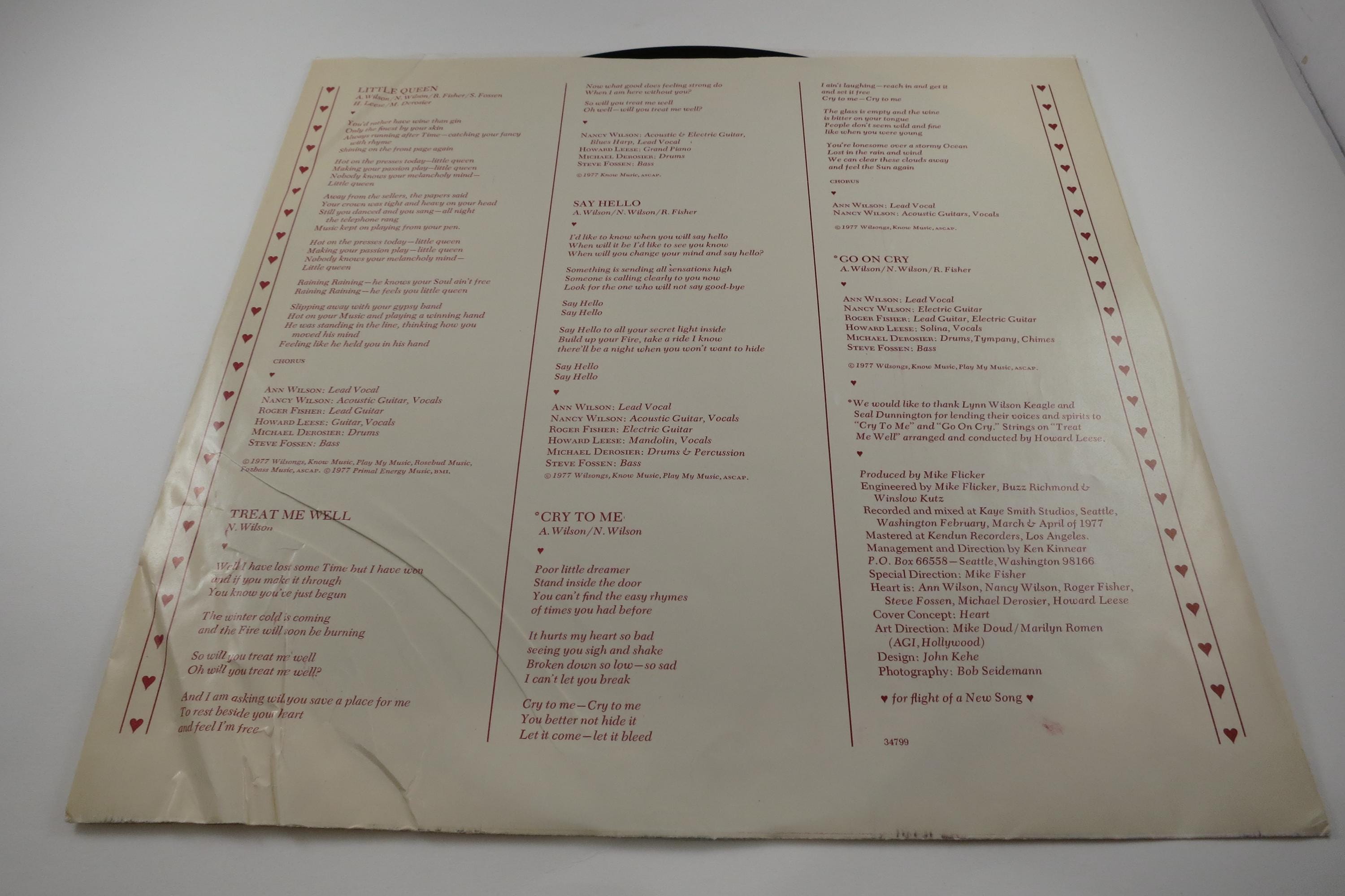 Vintage 1977 Vinyl LP Record Heart Little Queen Excellent Condition. Original cover is excellent and includes the original inner paper sleeve. Record is excellent as well. Tracks are as follows