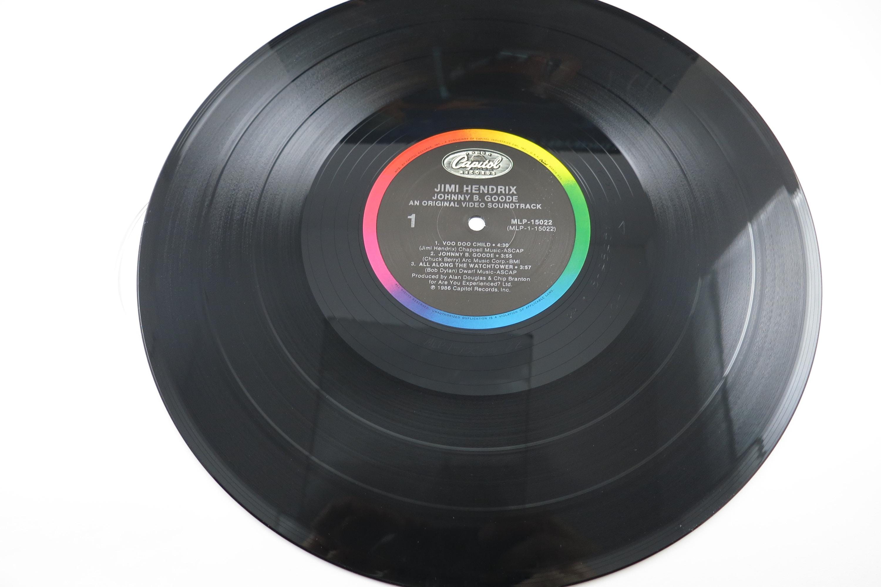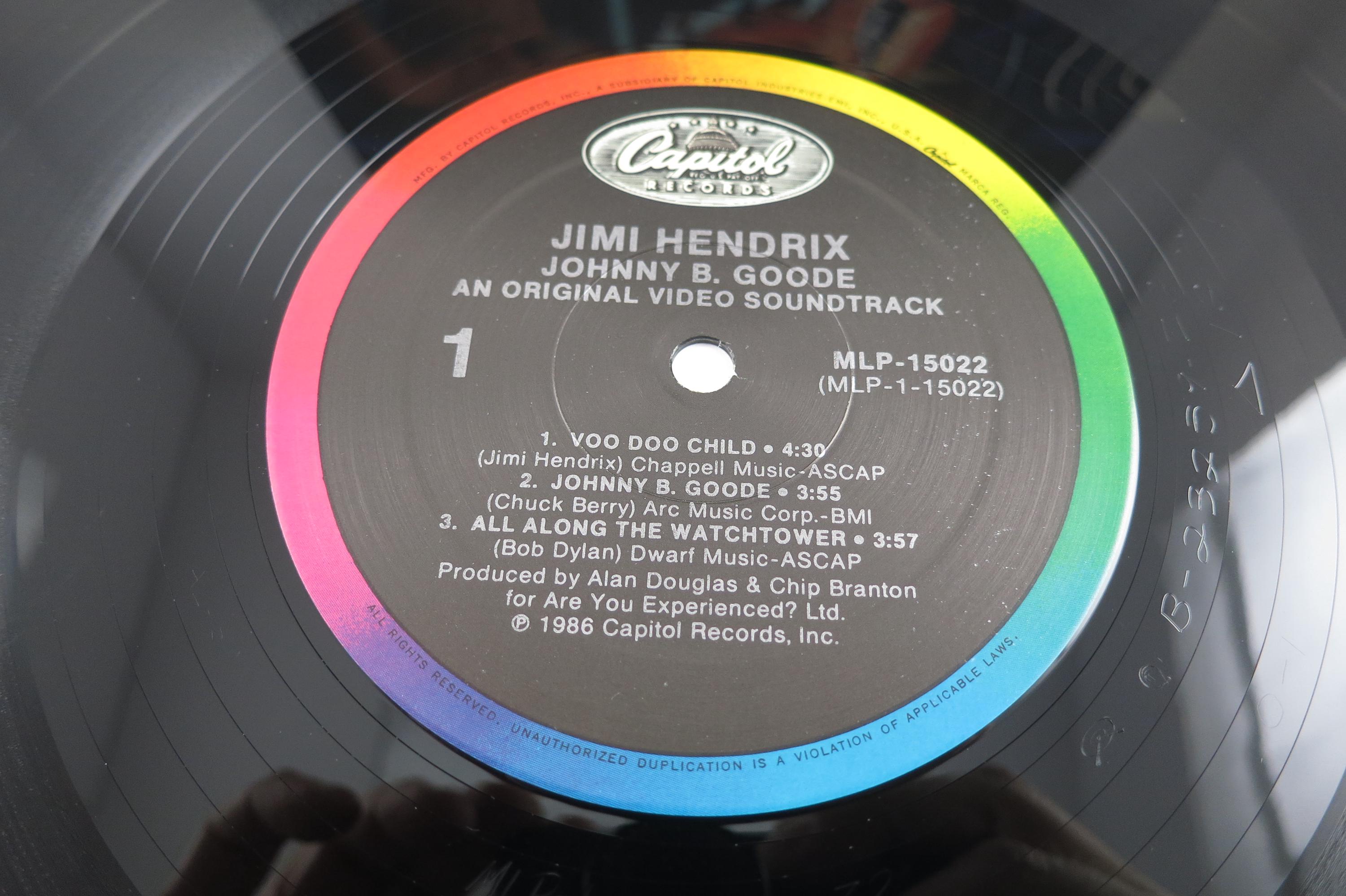 Vintage 1986 Vinyl EP Record Jimi Hendrix Johnny B. Goode Original Video Sound Track Near Mint Condition. Original cover is in excellent condition and Includes the inner paper sleeve. Record is Near Mint. Tracks are as follows