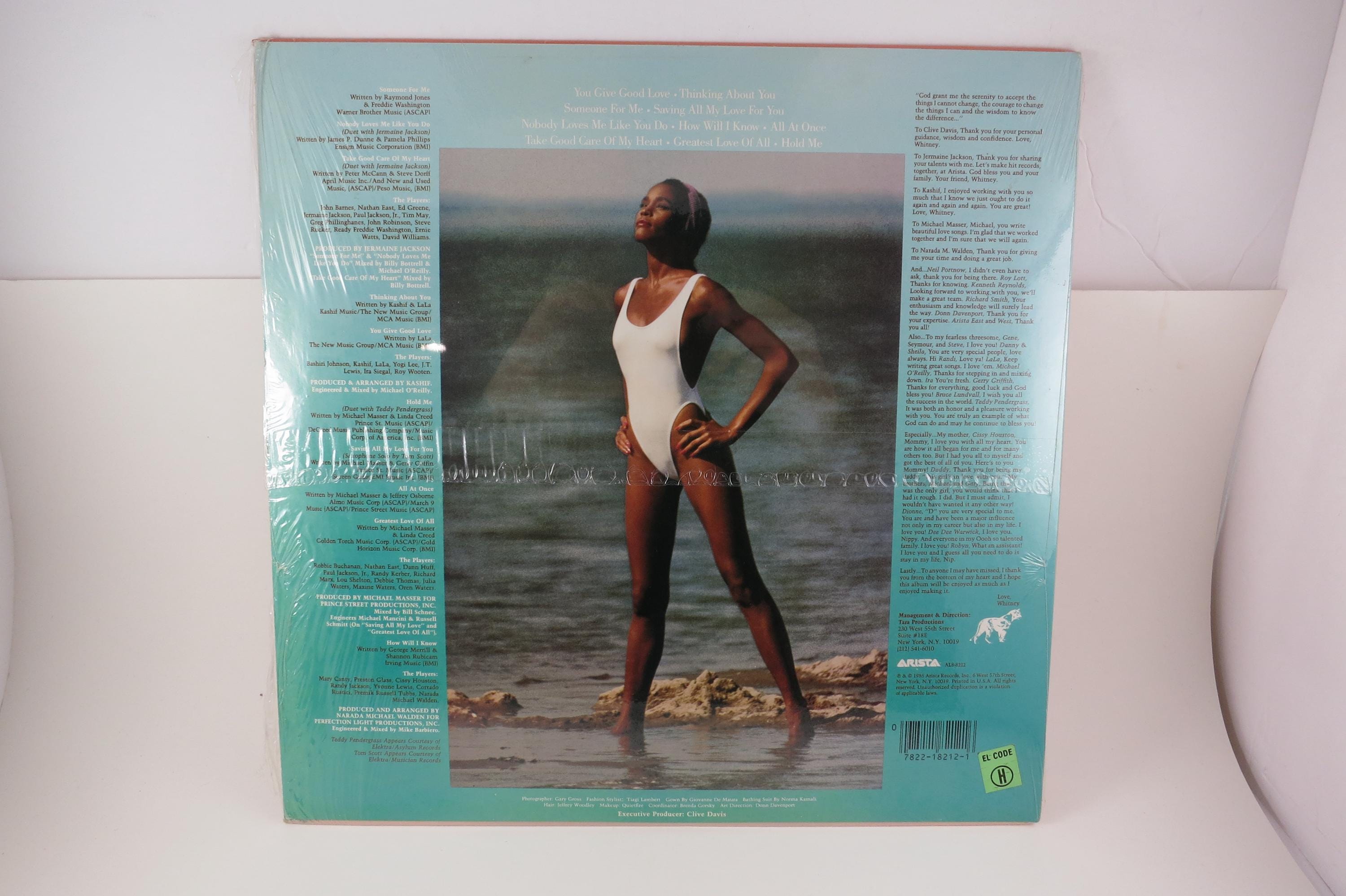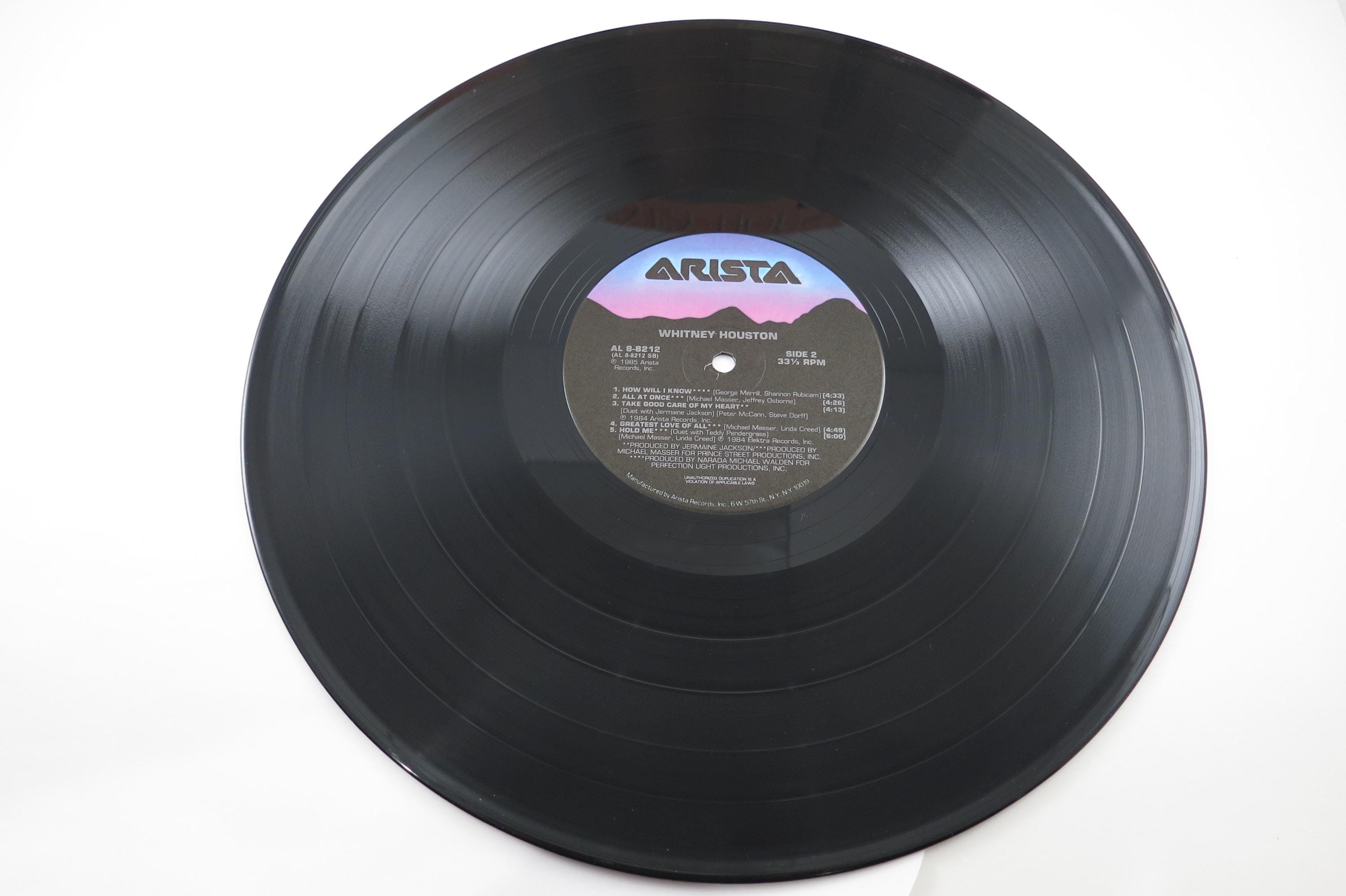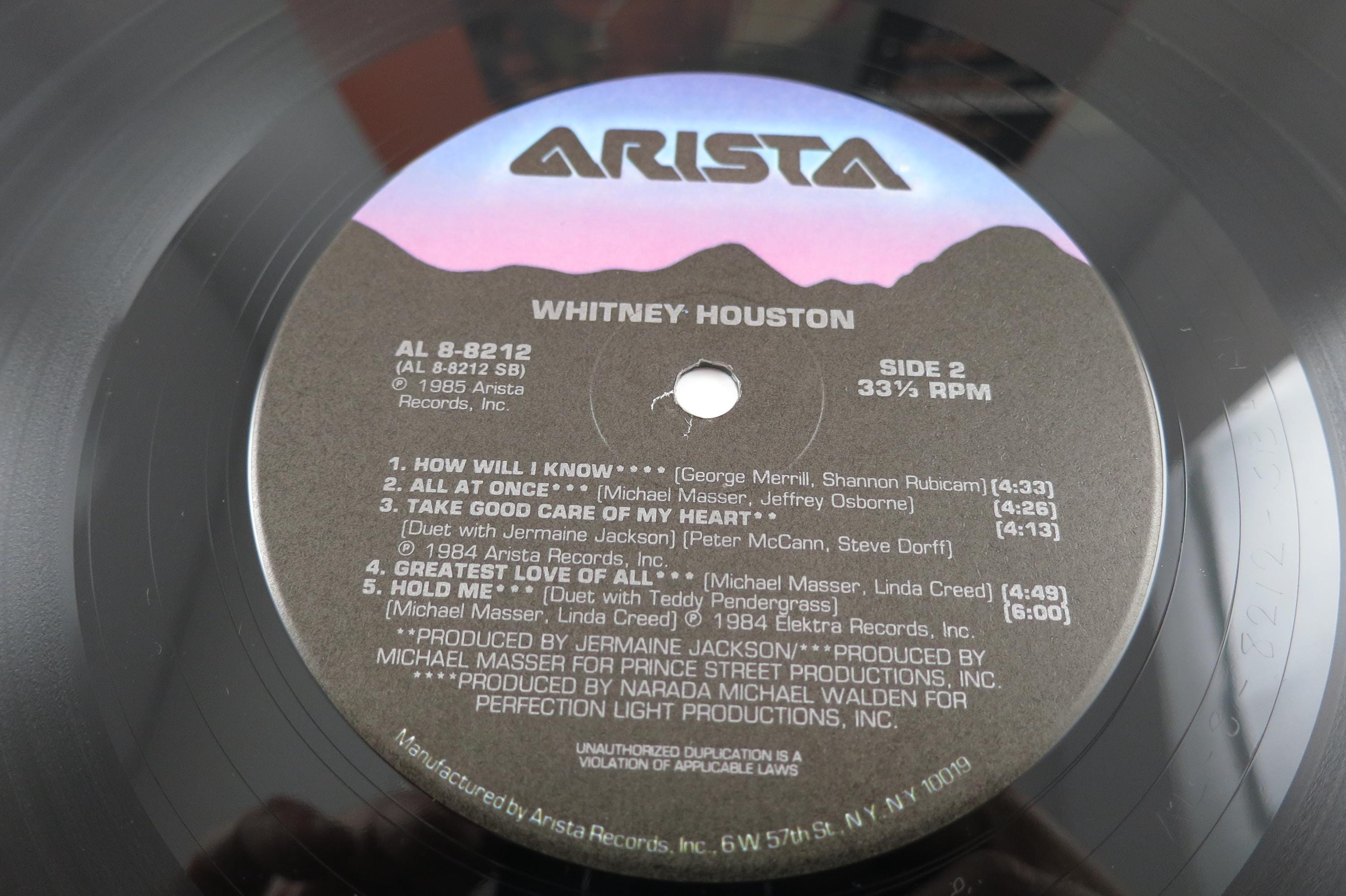 Vintage 1985 Whitney Houston Vinyl LP: Self Titled, Shrink Hype Brown Translucent Vinyl NM. Original cover is Near Mint and includes the inner paper sleeve, factory shrink wrap and hype sticker. Record is Near Mint and is a brown translucent vinyl pressing! Tracks are as follows