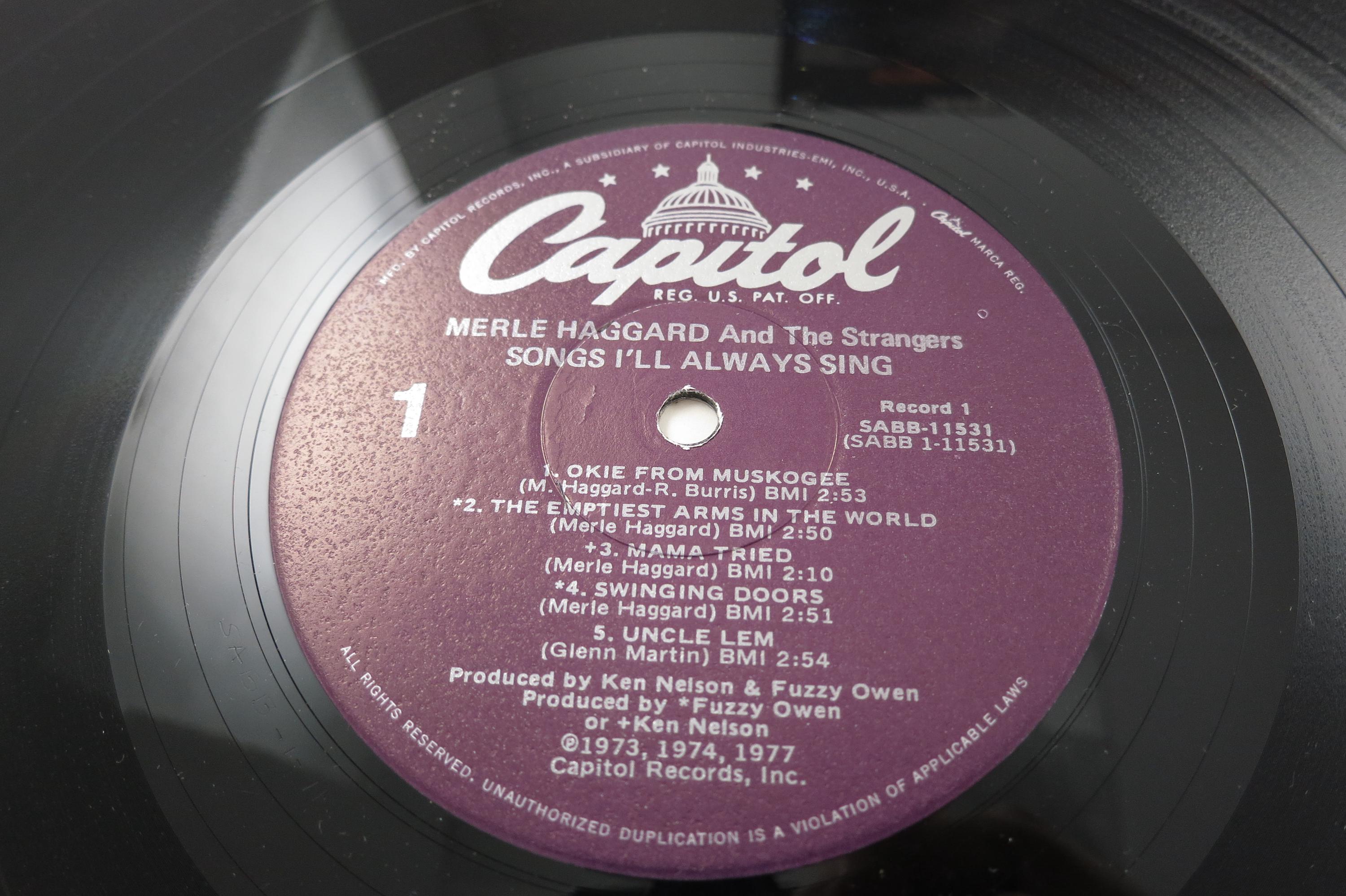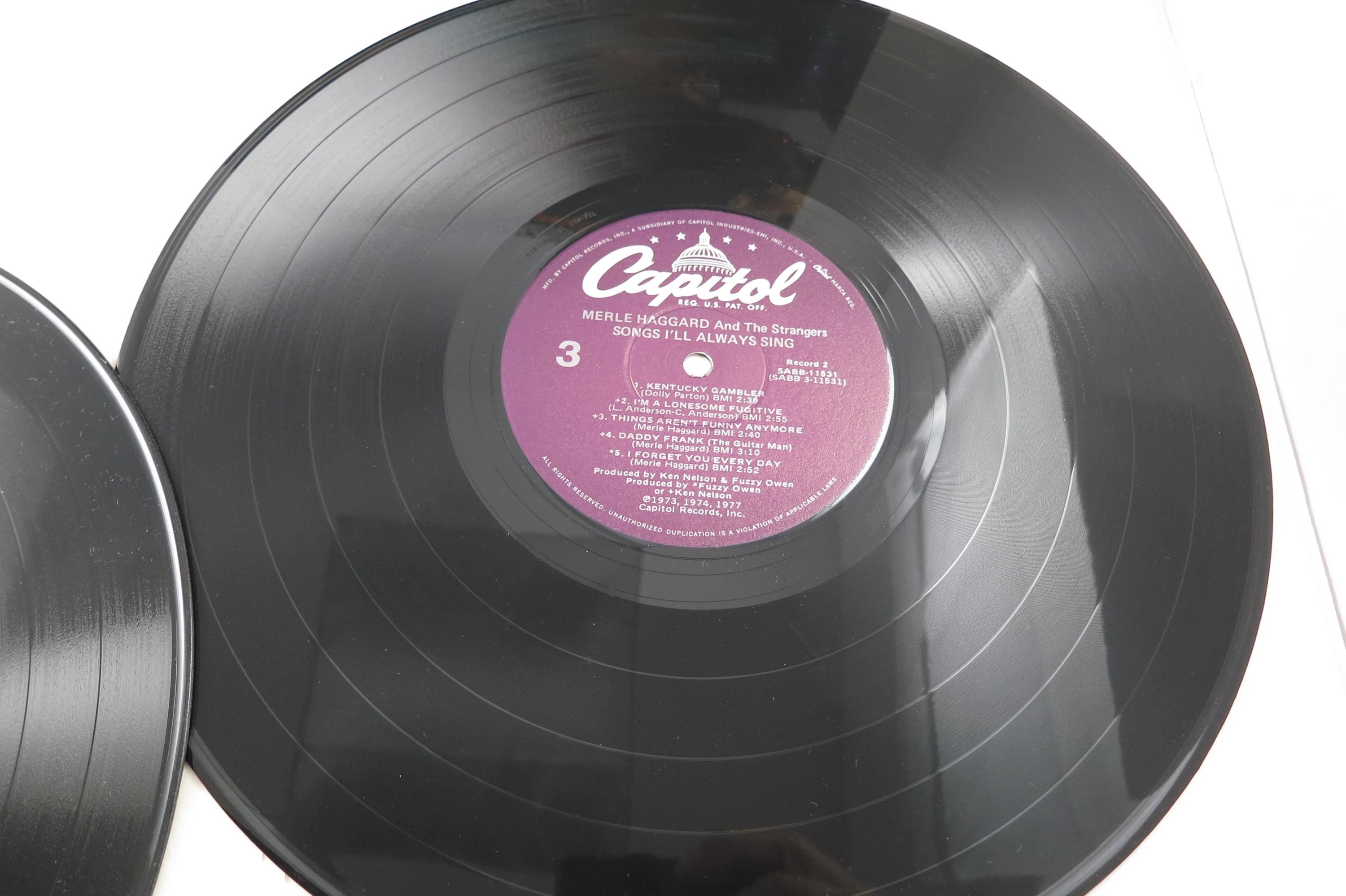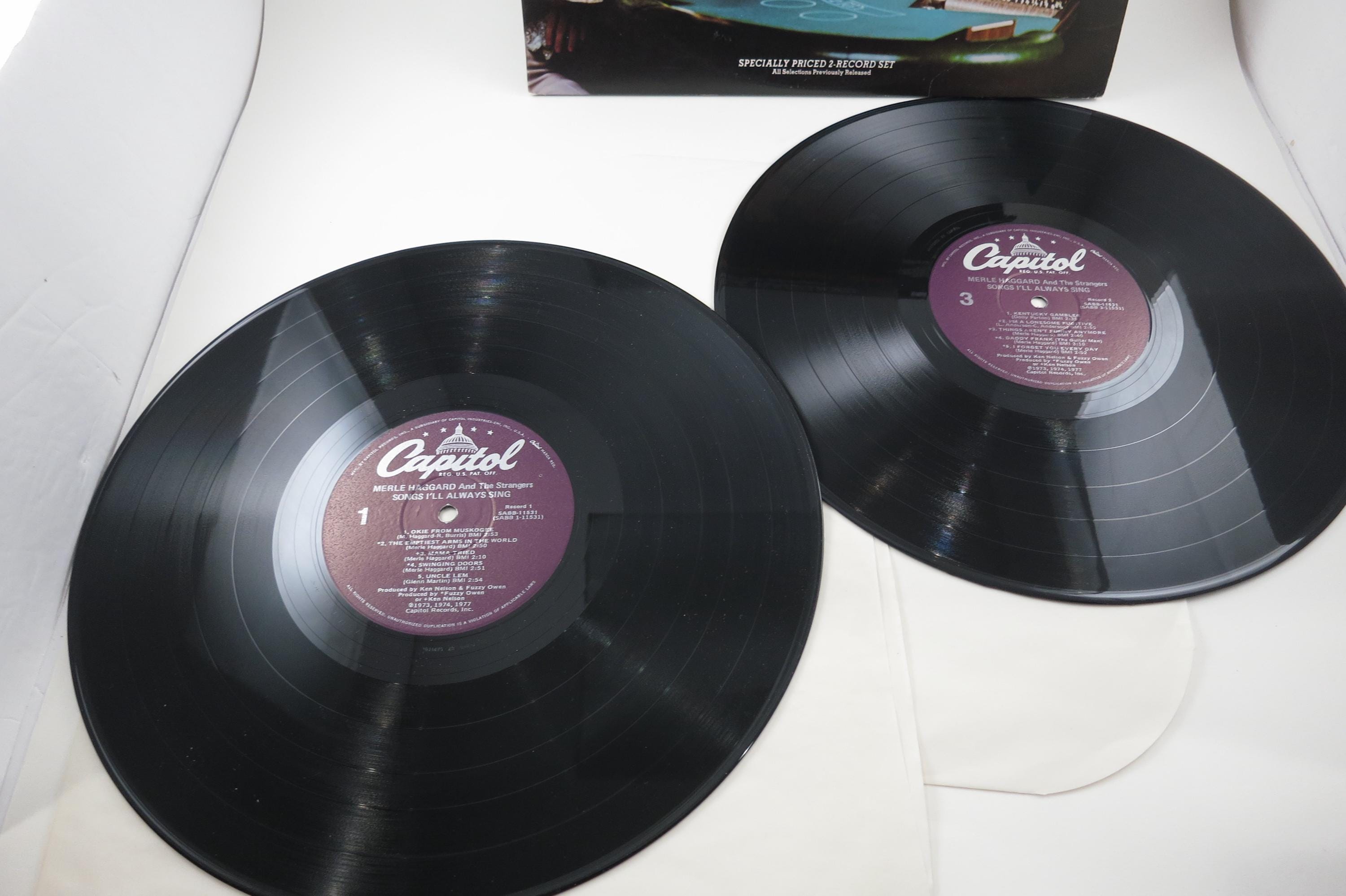 Vintage 1983 Vinyl LP Record Merle Haggard Songs I'll Always Sing NM. Original cover is in excellent condition and includes the inner paper sleeves. Records are Near Mint. Tracks are as follows