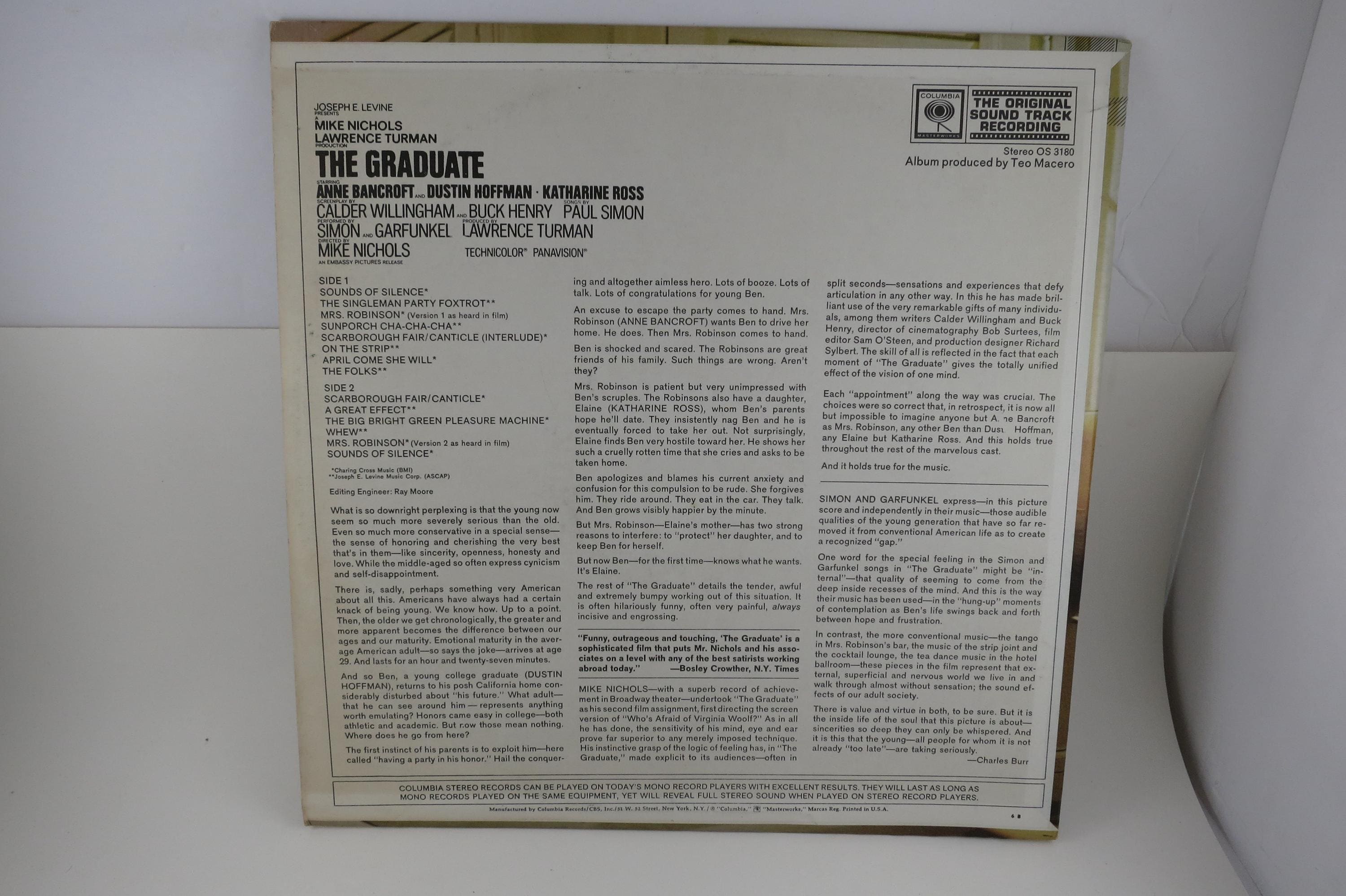 1970 Vinyl LP Record The Graduate Soundtrack Simon & Garfunkel Excellent Condition. Original cover is in excellent condition and includes the original inner sleeve. Record is excellent. Tracks are as follows