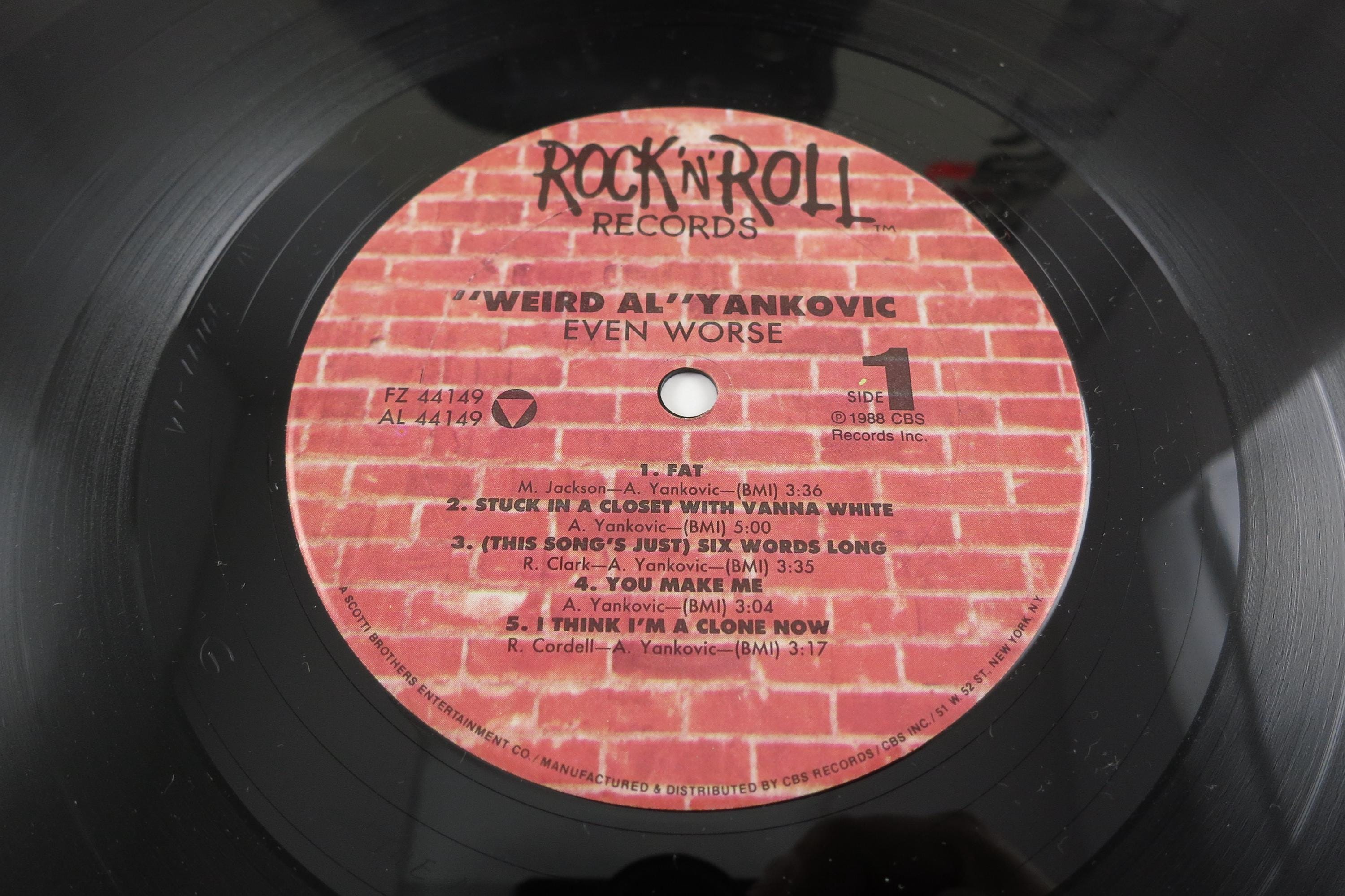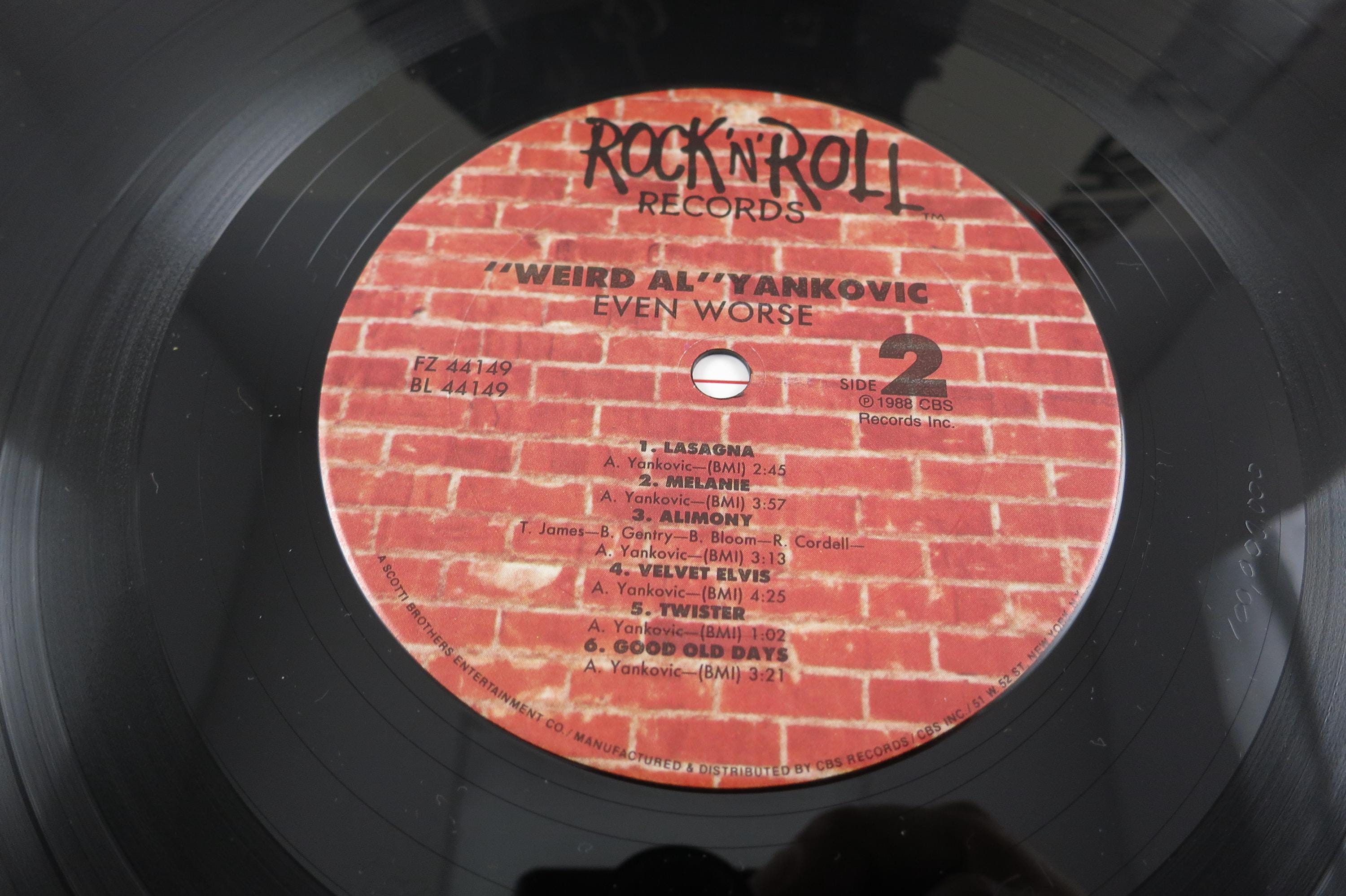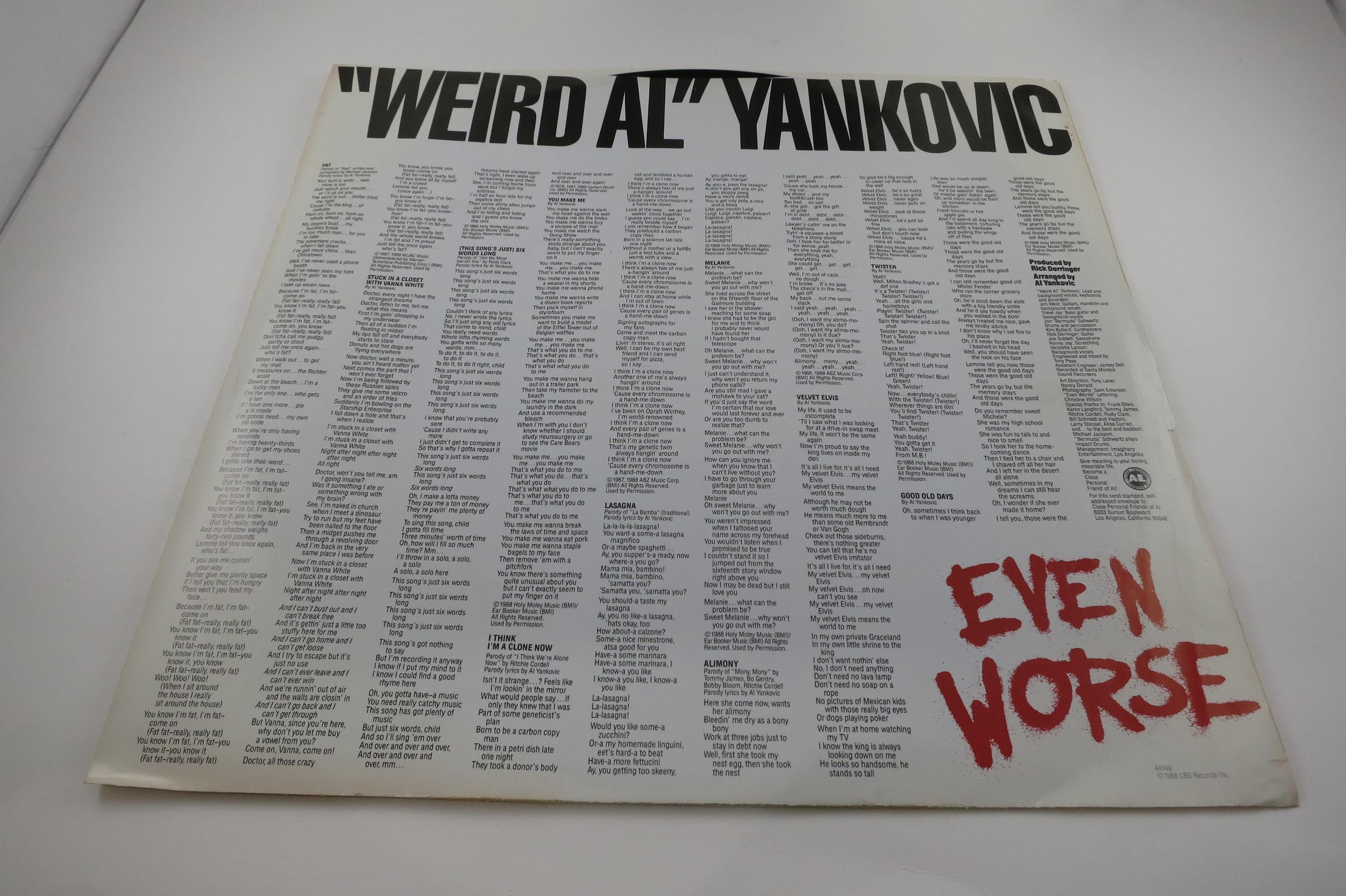 Vintage 1988 Vinyl LP Record Weird Al Yankovic Even Worse Near Mint Condition. Original cover is Near Mint and includes the original inner sleeve and factory shrink wrap. Record is Near Mint as well, Tracks are as follows