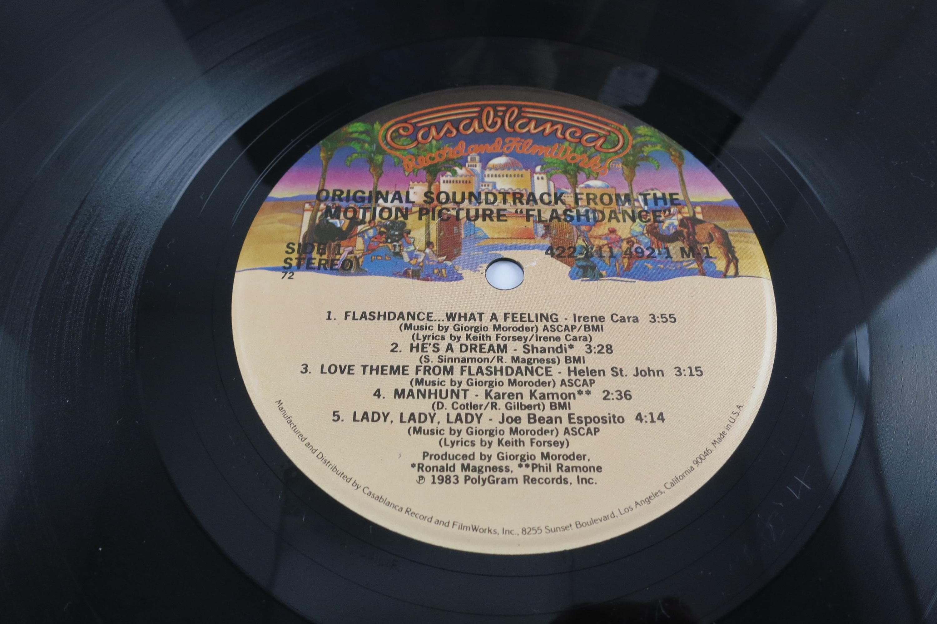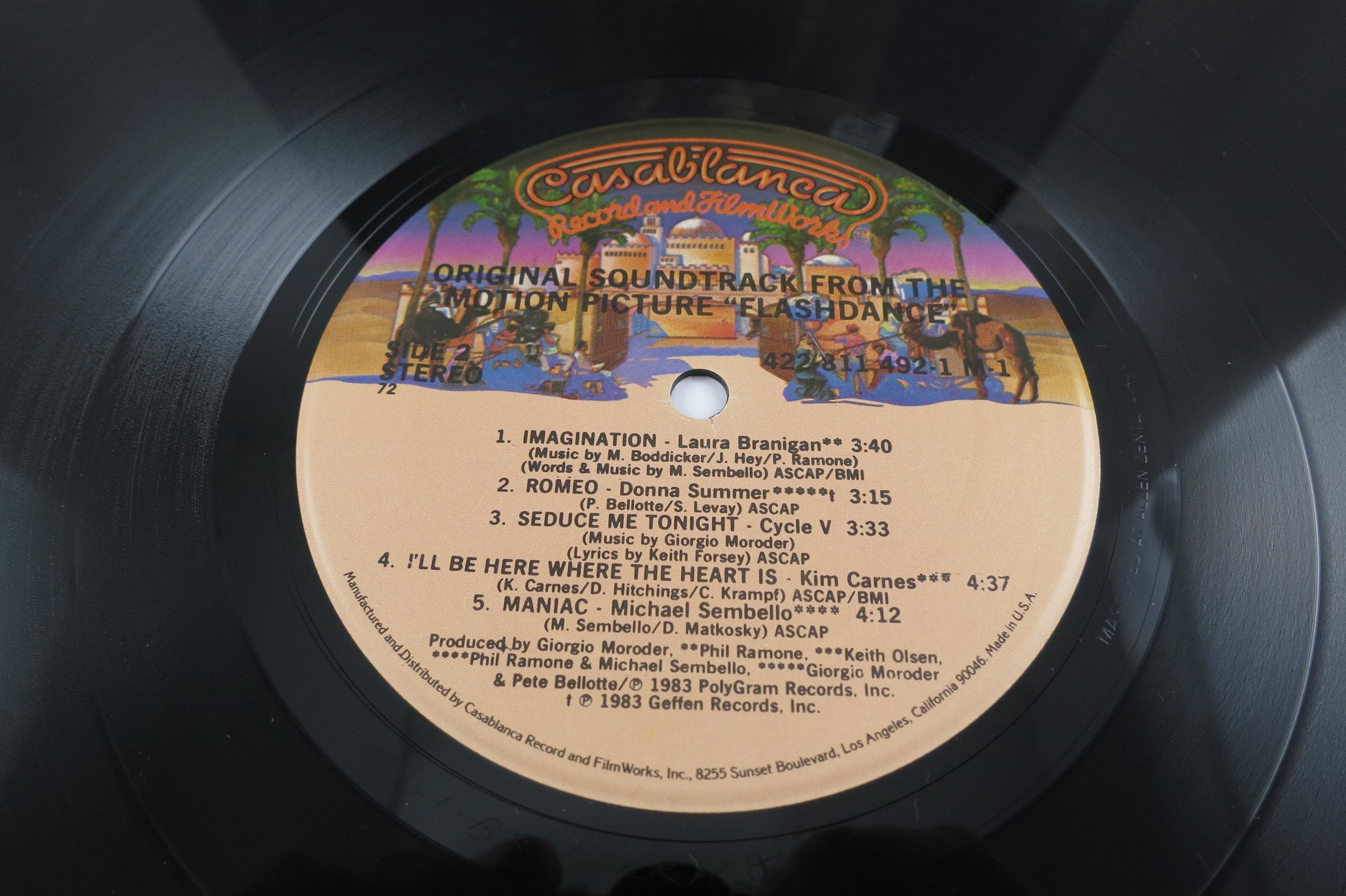 Vintage 1983 Vinyl LP Record Flashdance Original Motion Picture Soundtrack Near Mint Condition. Original cover is in Near Mint condition and includes the inner paper sleeve and factory shrink wrap. Record is Near Mint as well. Tracks are as follows