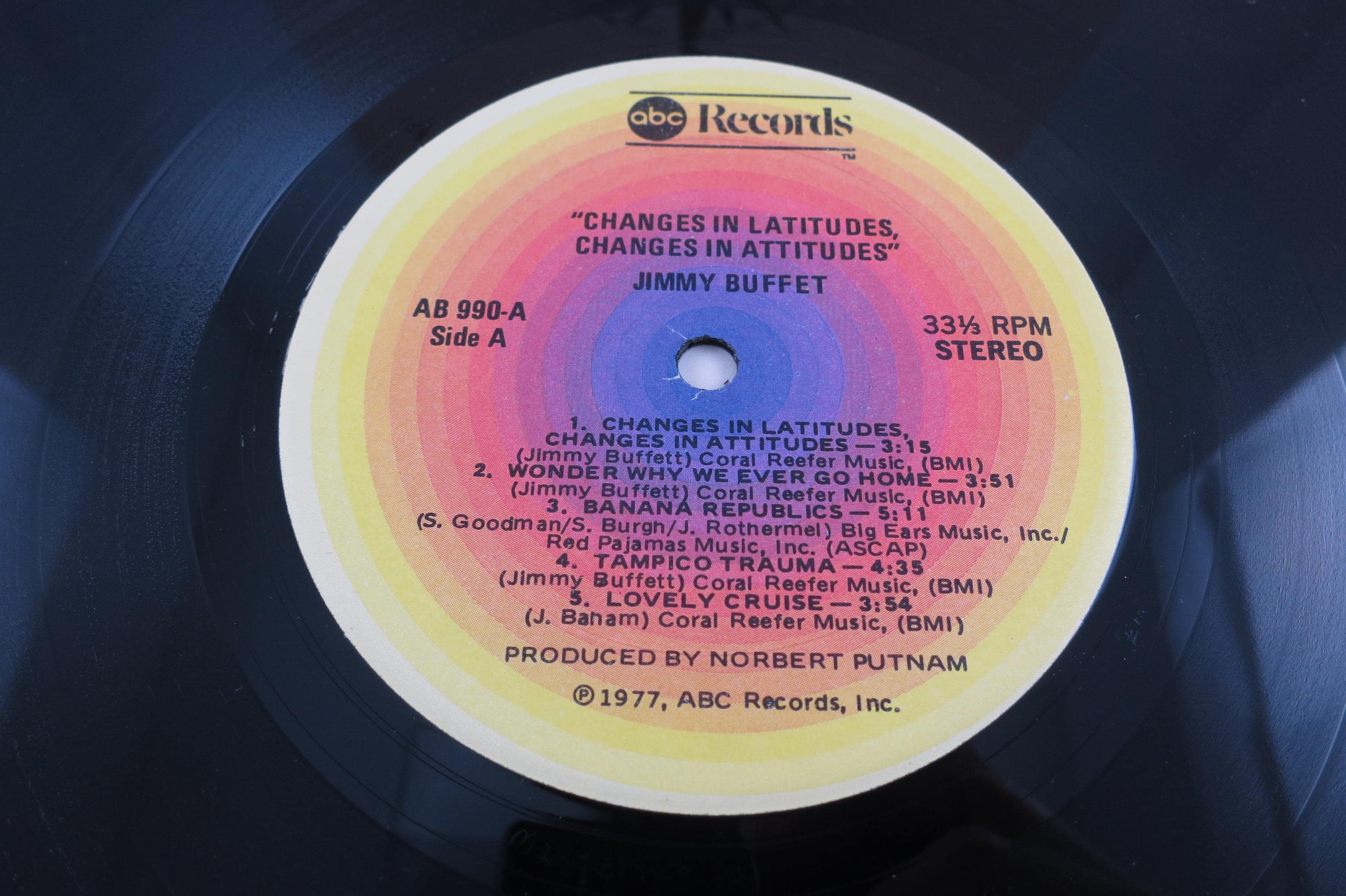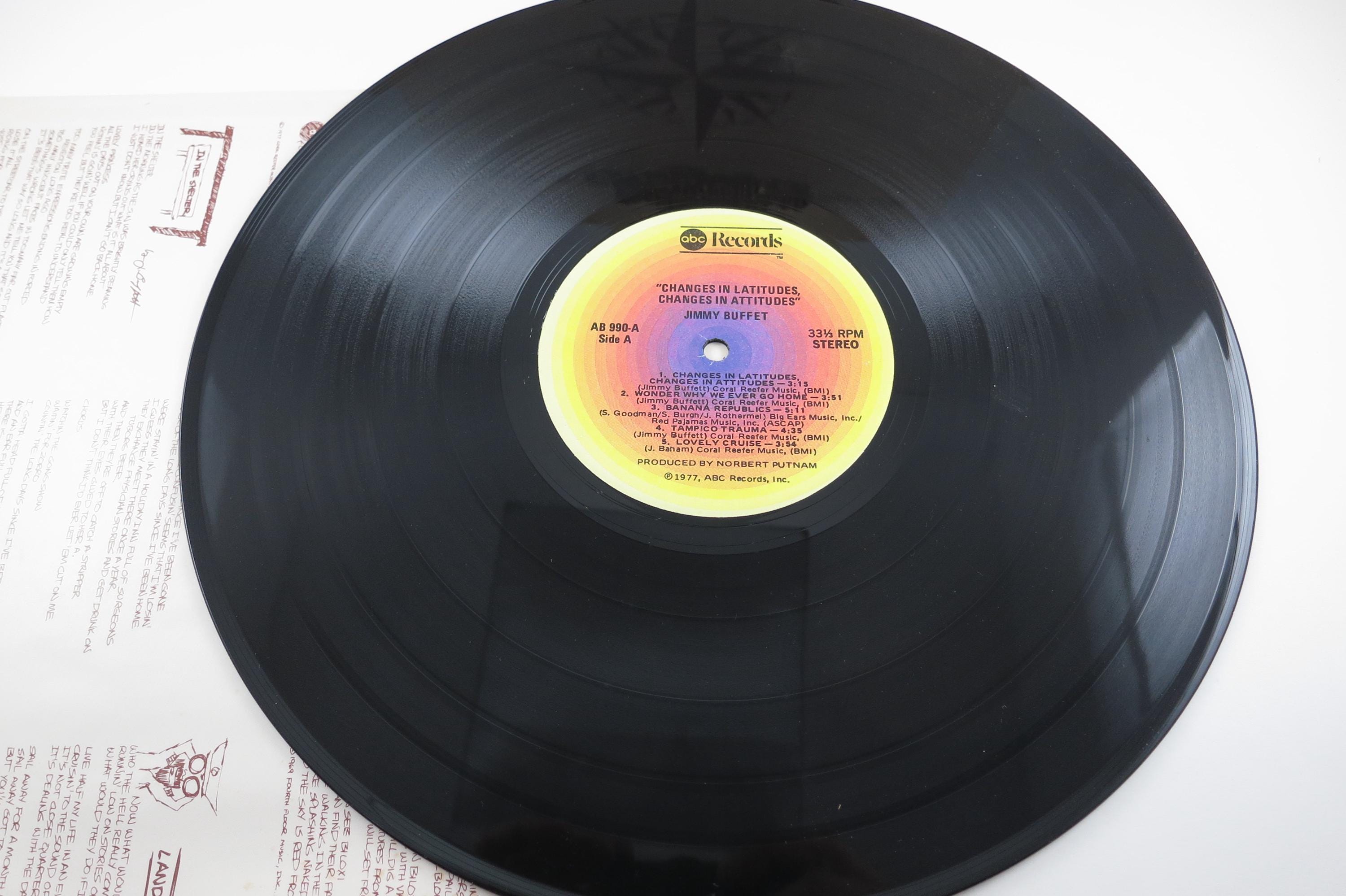 Vintage 1977 Vinyl LP Record Jimmy Buffett Changes in Latitudes Changes In Attitudes. Original cover is in excellent condition and includes the original inner paper sleeve. Record is excellent plus. Nice Copy! Tracks are as follows