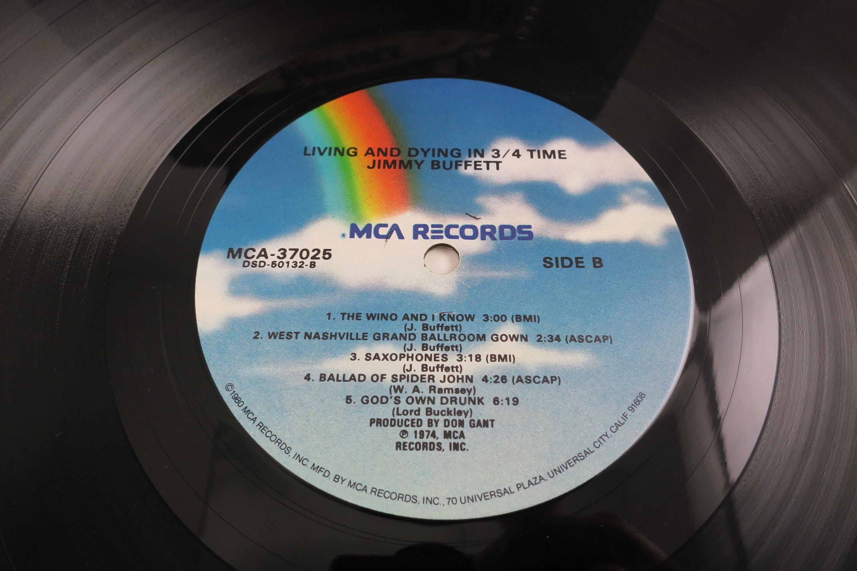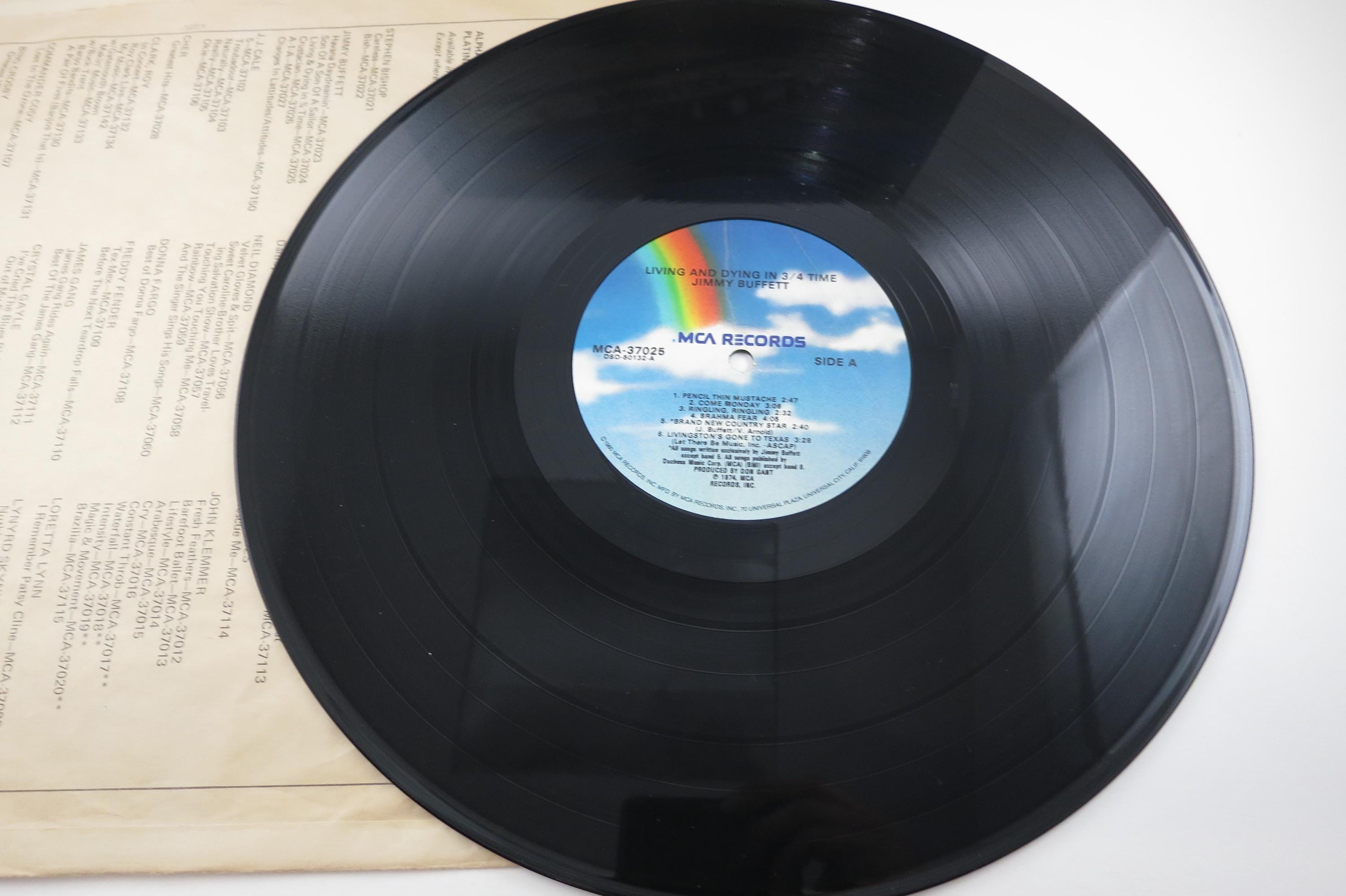 1980 Vinyl LP Record Jimmy Buffett Living and Dying in 3/4 Time Very Good Condition. Original cover is in very good condition and includes the inner paper sleeve and lyric sheet. Record is very good as well with marks and scuffs. Tracks are as follows