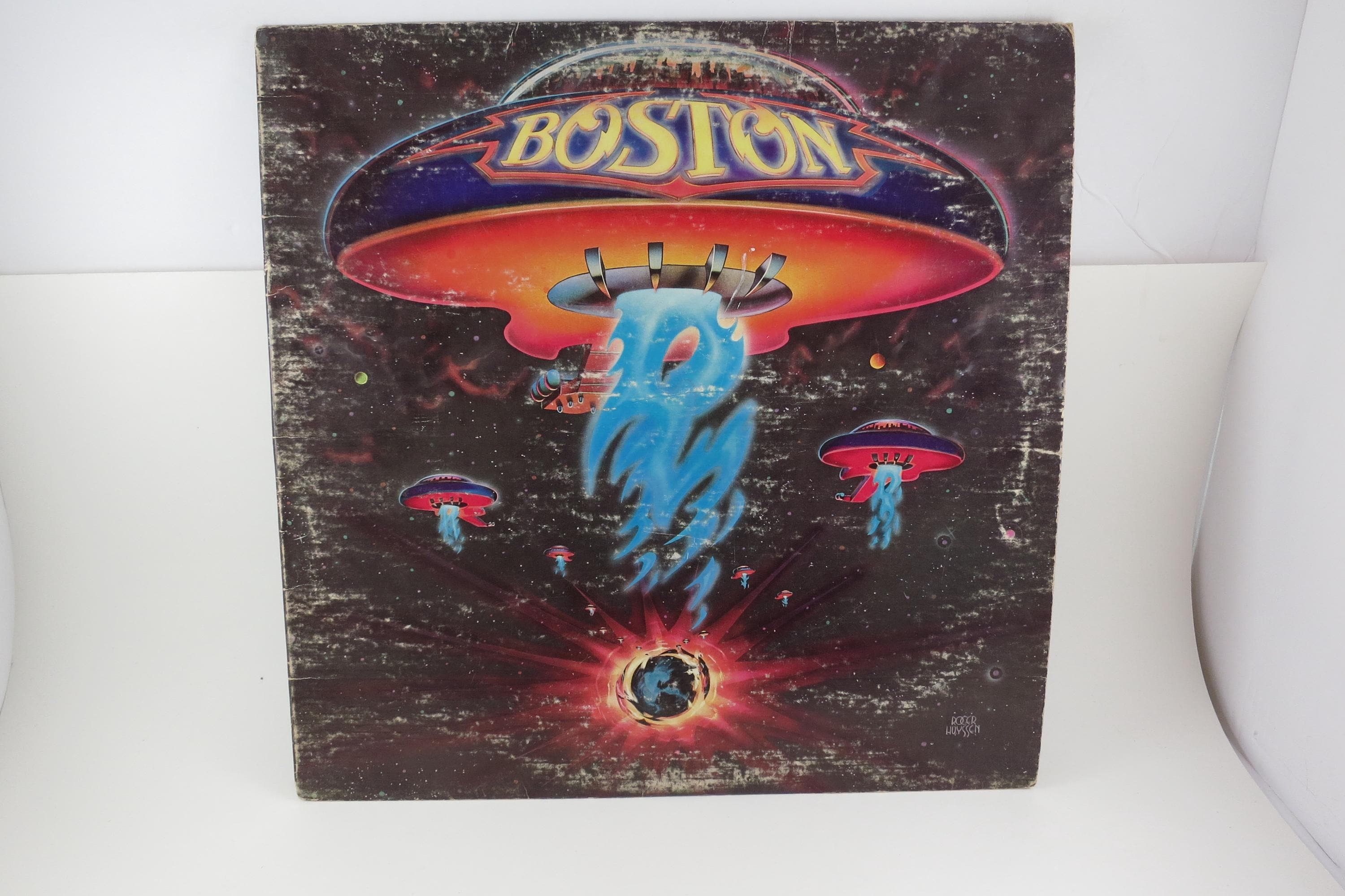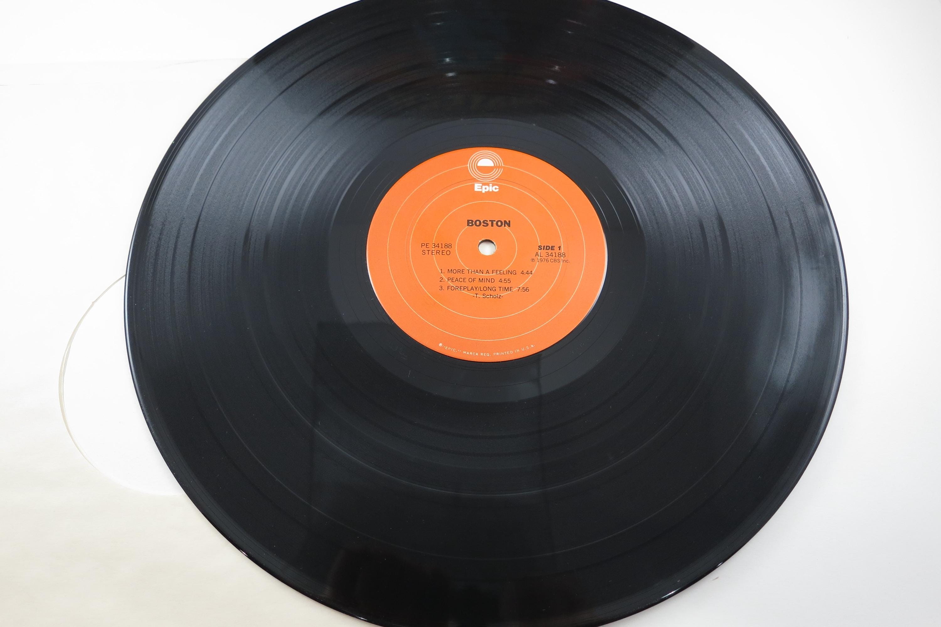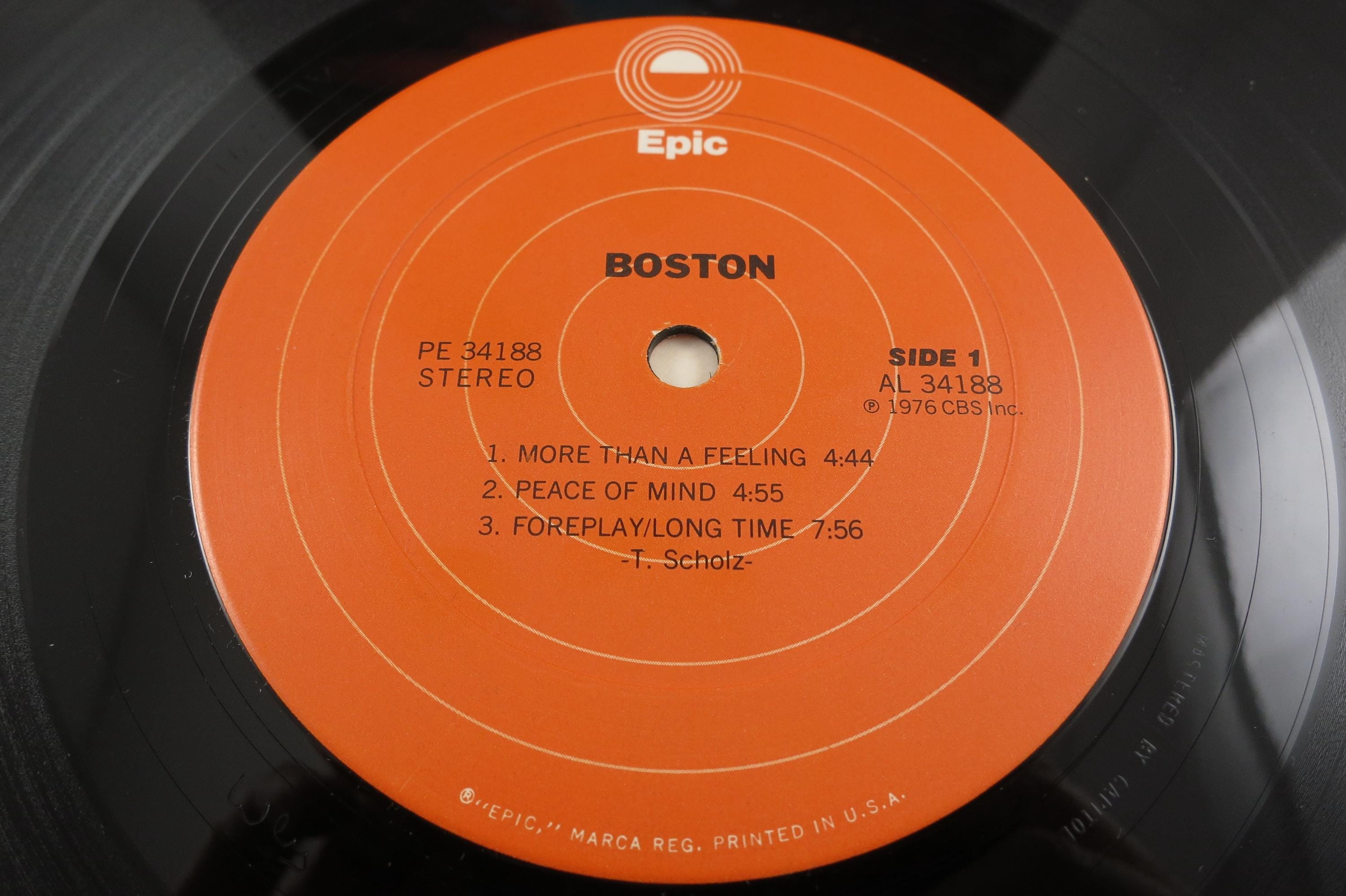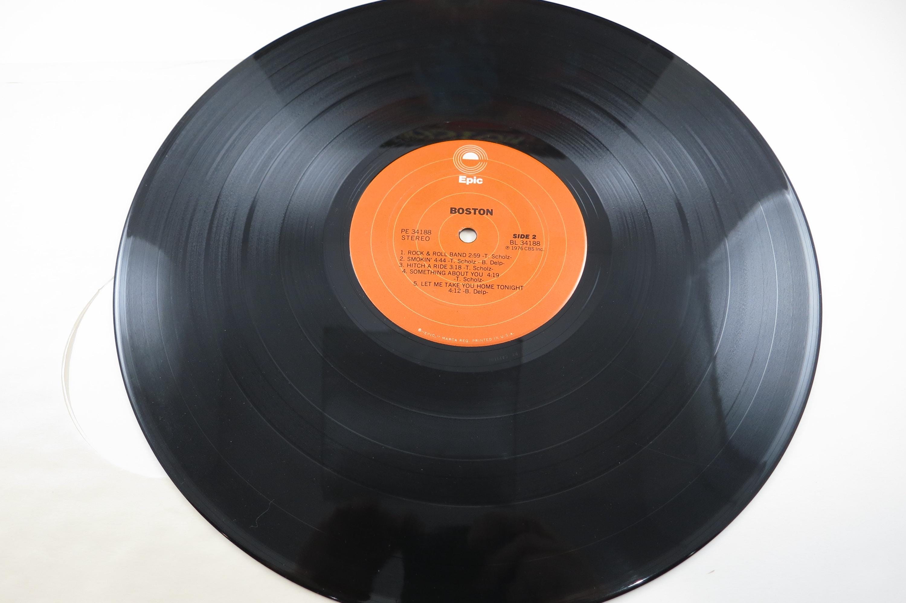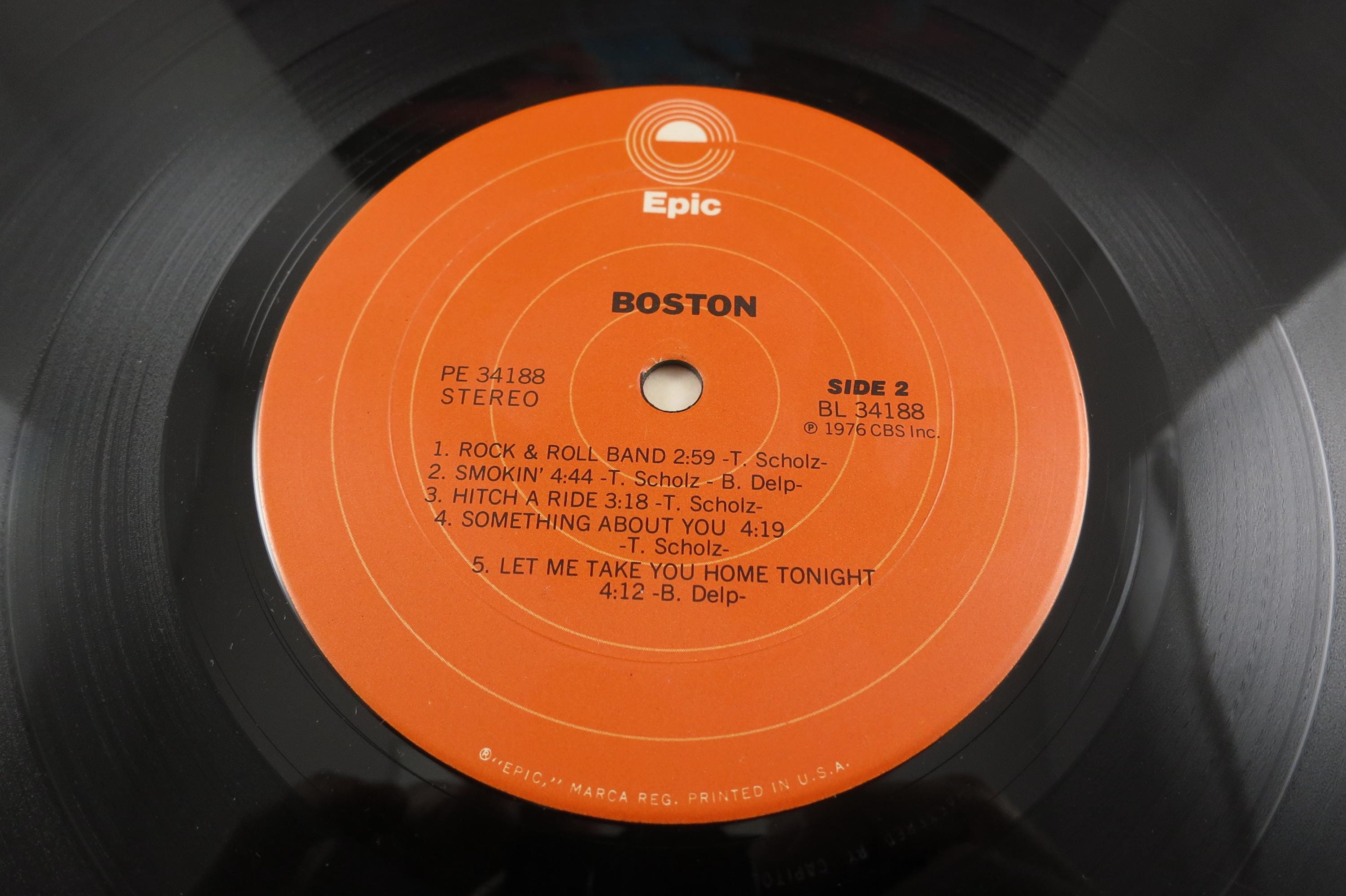 Vintage 1976 Vinyl LP Record Boston Self Titled Very Good Condition. Original cover is in very good condition and includes the inner paper sleeve. Top seam is taped. Record has a bowl warp but still plays well. Cheap Copy! Tracks are as follows