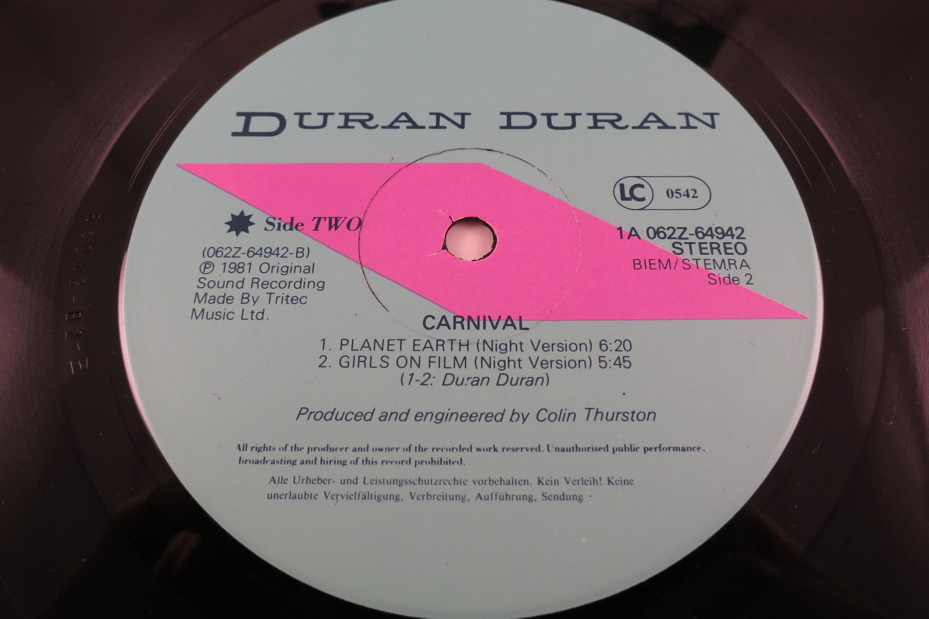 1982 Vinyl LP Record Carnival Duran Duran Excellent Condition UK Pressing. Original cover is in excellent condition and includes the inner paper sleeve. Record is excellent. UK Pressing! Tracks are as follows