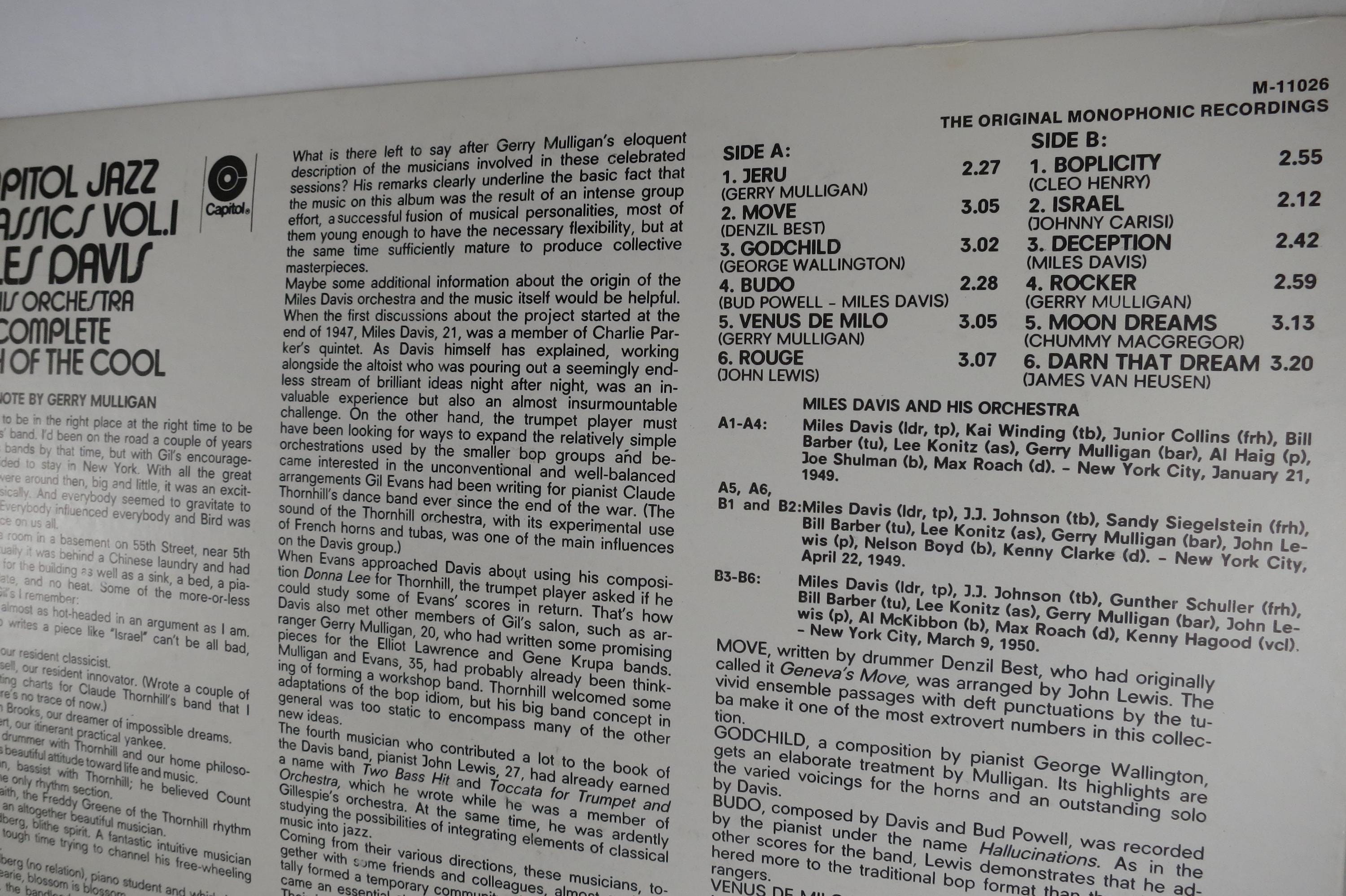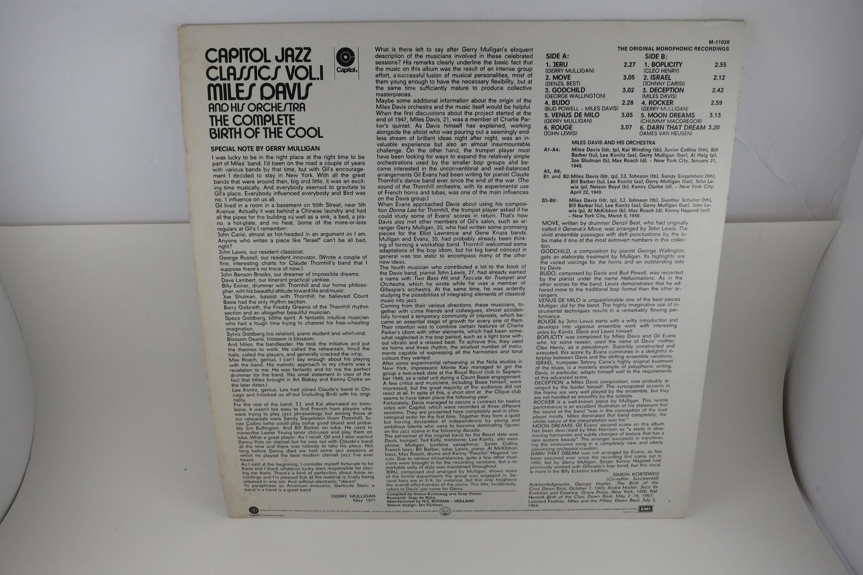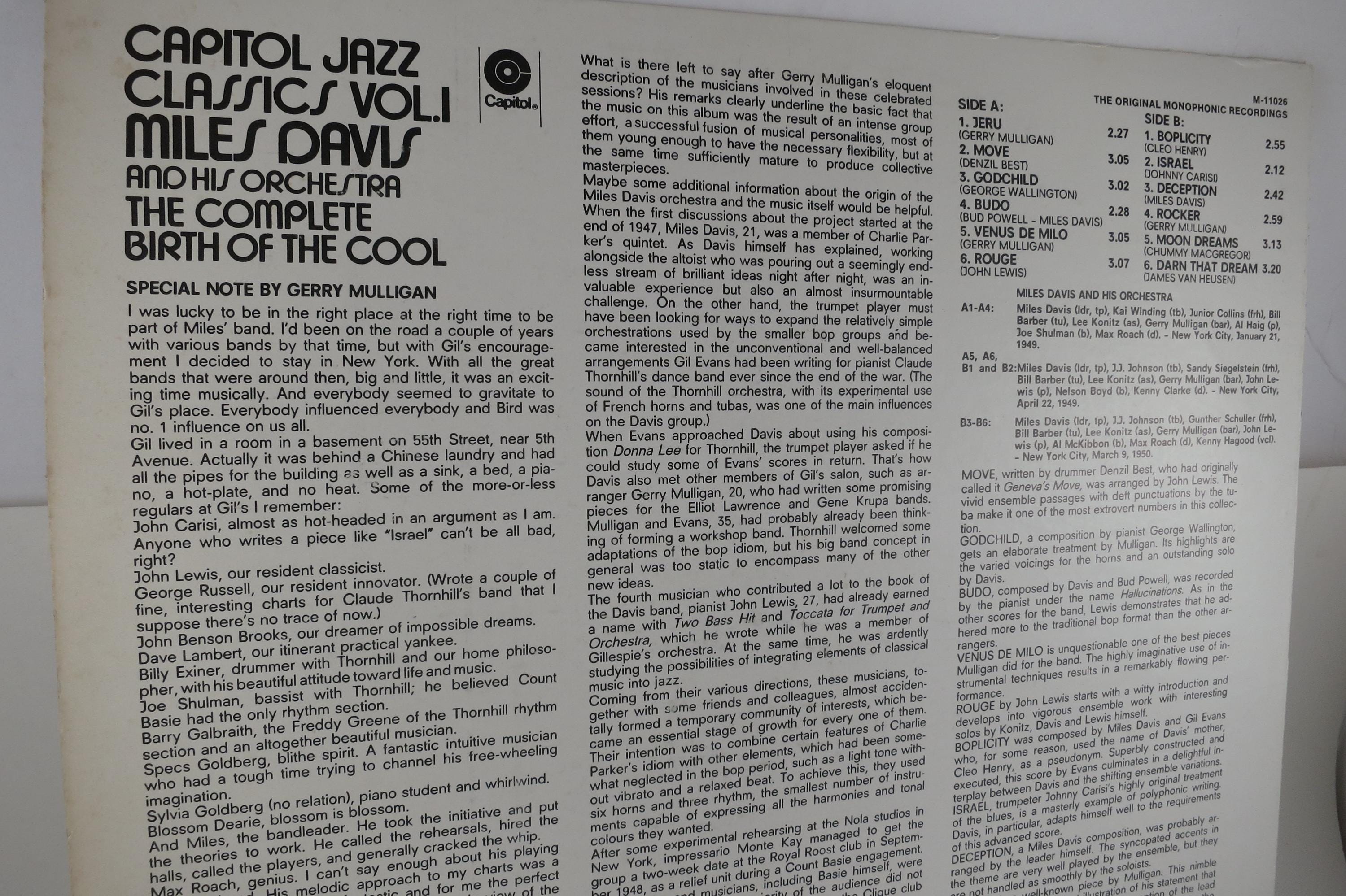 Vintage 1972 Vinyl LP Record Miles Davis The Complete Birth of the Cool NM. Original cover is in Near Mint condition and includes the inner paper sleeve. Record is Near Mint as well. Tracks are as follows