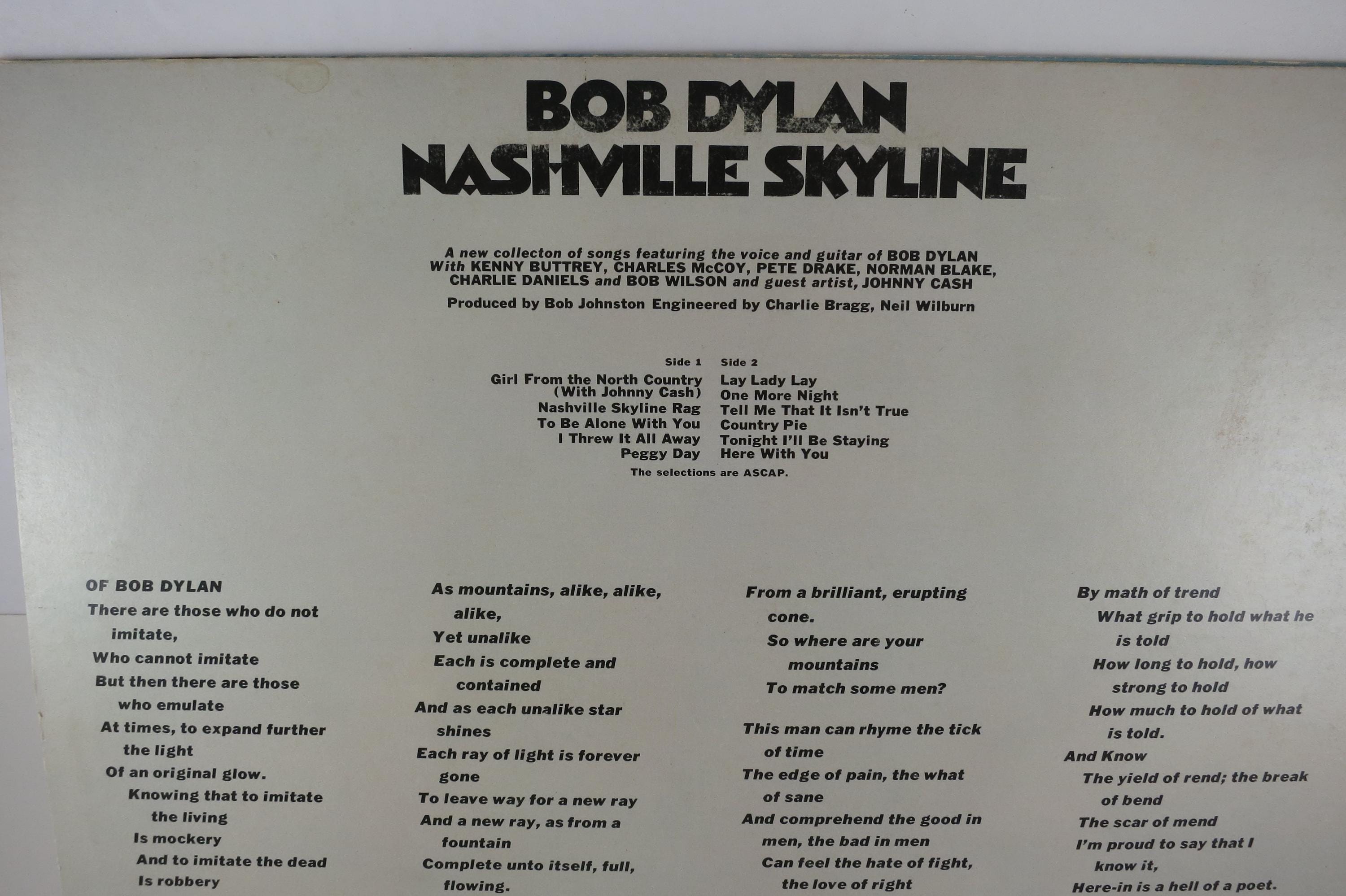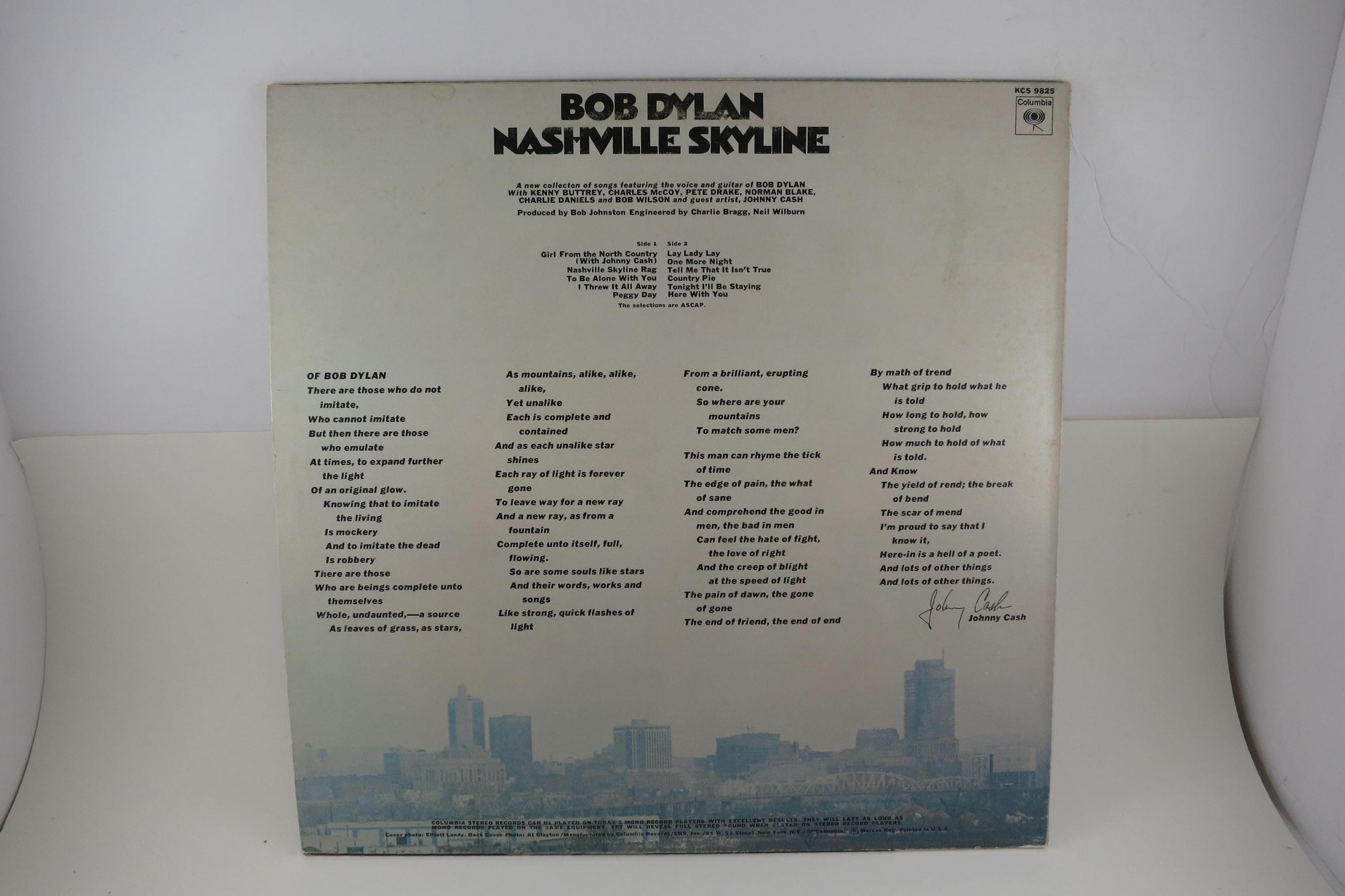 Vintage 1972 Vinyl LP Record Nashville Skyline Bob Dylan Excellent Plus Condition. Original cover is in excellent condition and includes the inner paper sleeve. Record is excellent plus. Tracks are as follows