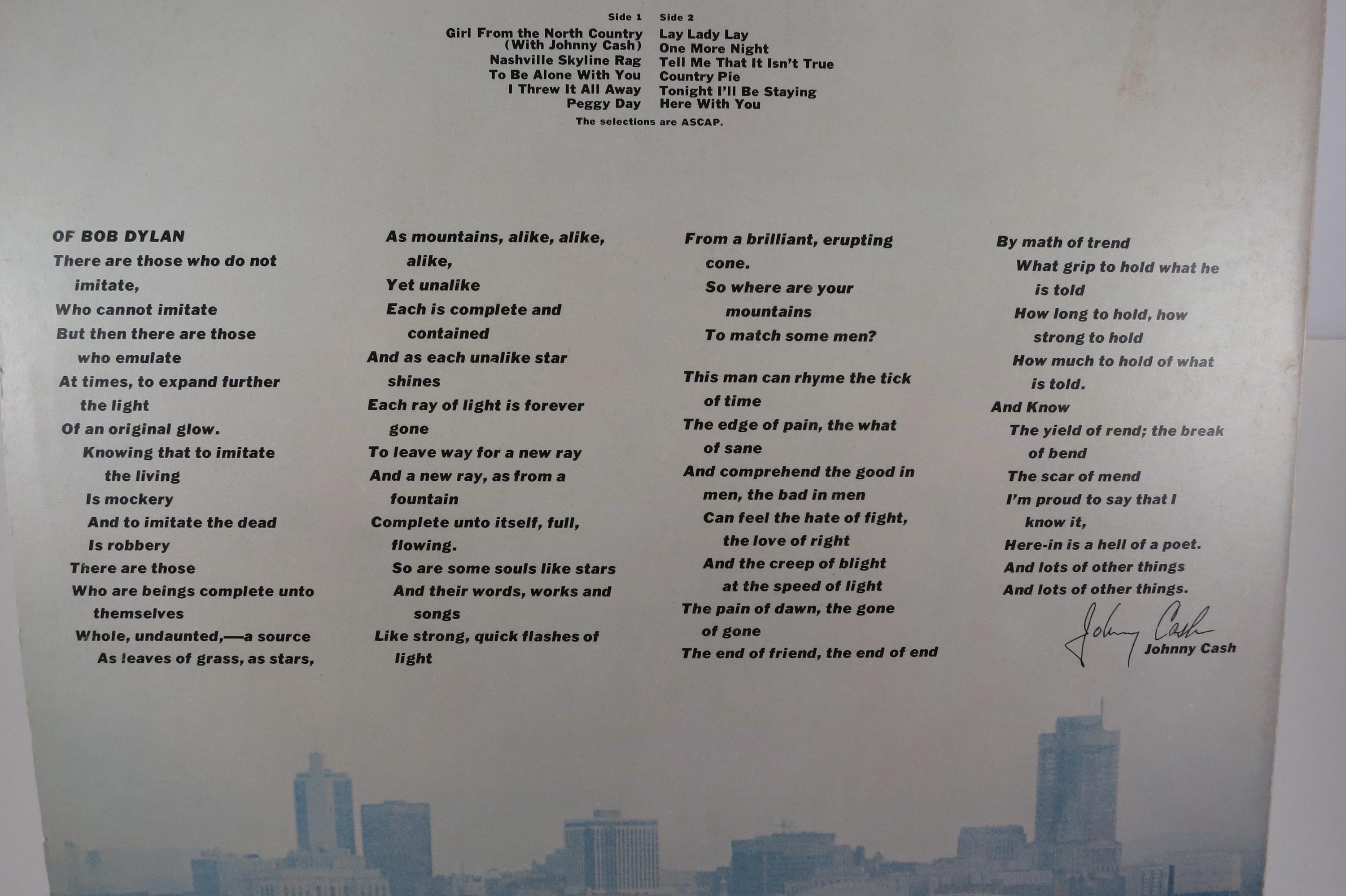 Vintage 1972 Vinyl LP Record Nashville Skyline Bob Dylan EX+