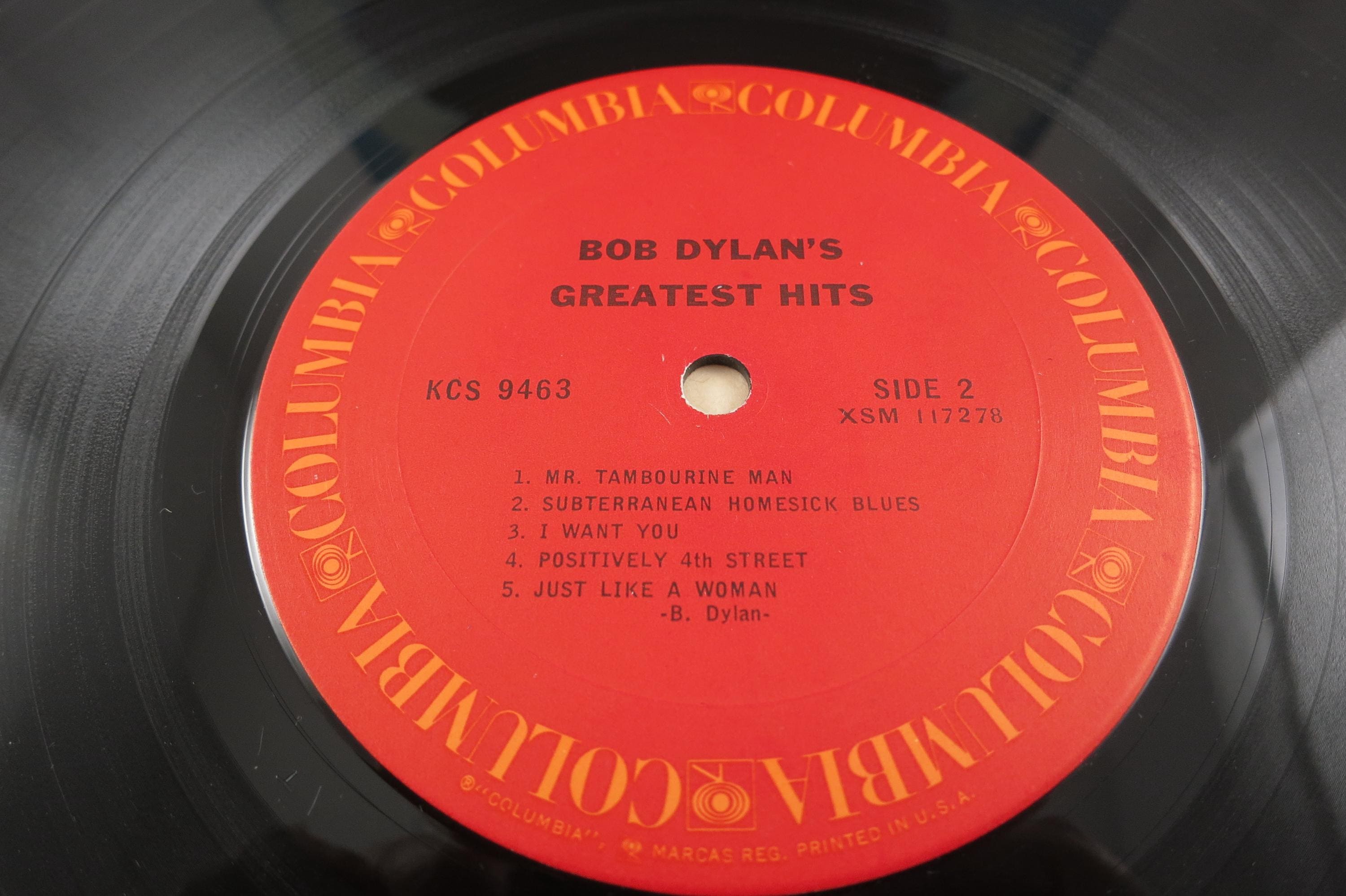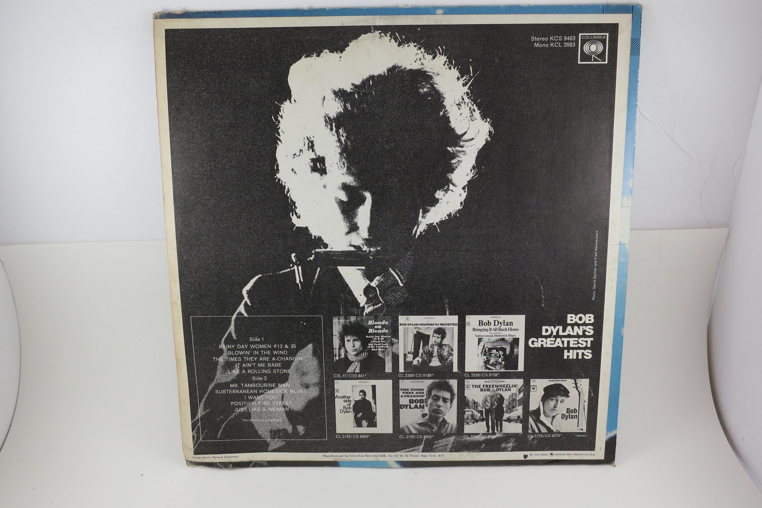 1972 Vinyl LP Record Bob Dylan Greatest Hits Excellent Condition. Original cover is in very good condition and includes the inner paper sleeve. Record is excellent and plays perfect. Cover has a small seam split on the bottom. Tracks are as follows