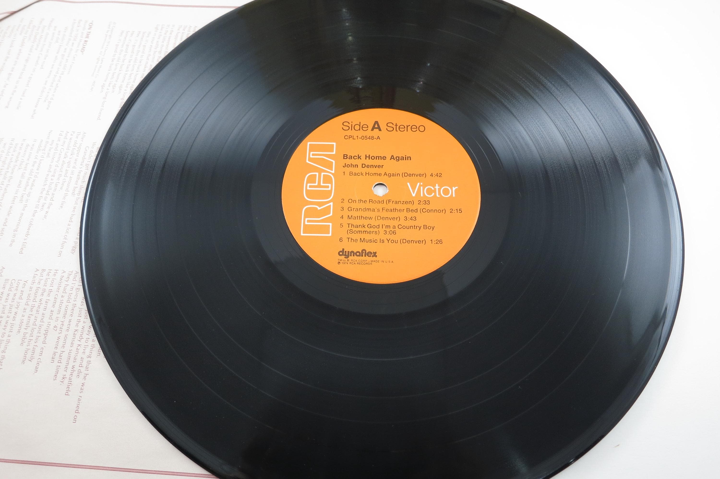 Vintage 1974 Vinyl LP Record John Denver Back Home Again Excellent Plus Condition. Original cover is in excellent plus condition and includes the original inner paper sleeve. Record is excellent plus as well. Orange label original. Tracks are as follows
