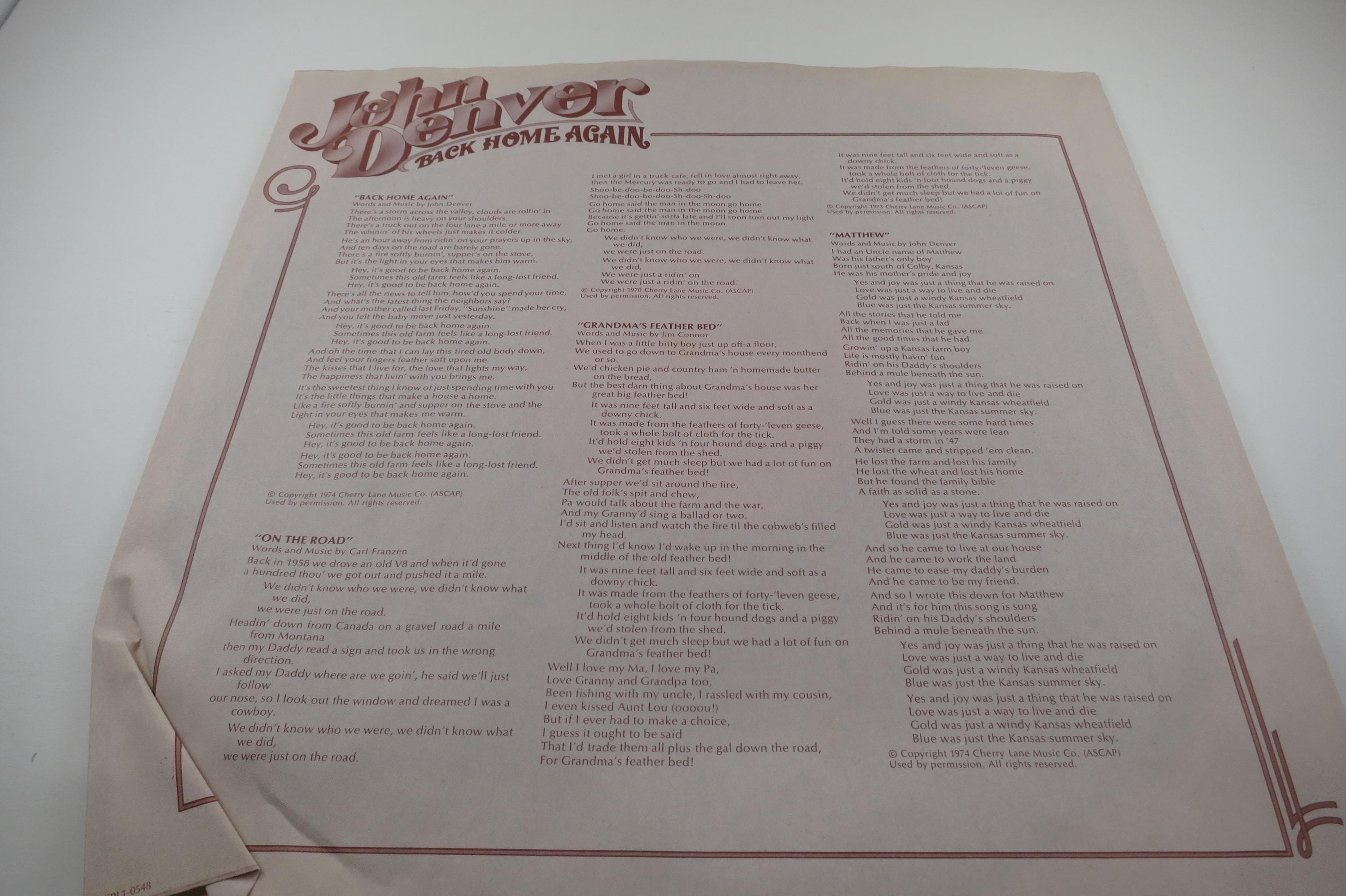 Vintage 1974 Vinyl LP Record John Denver Back Home Again EX+
