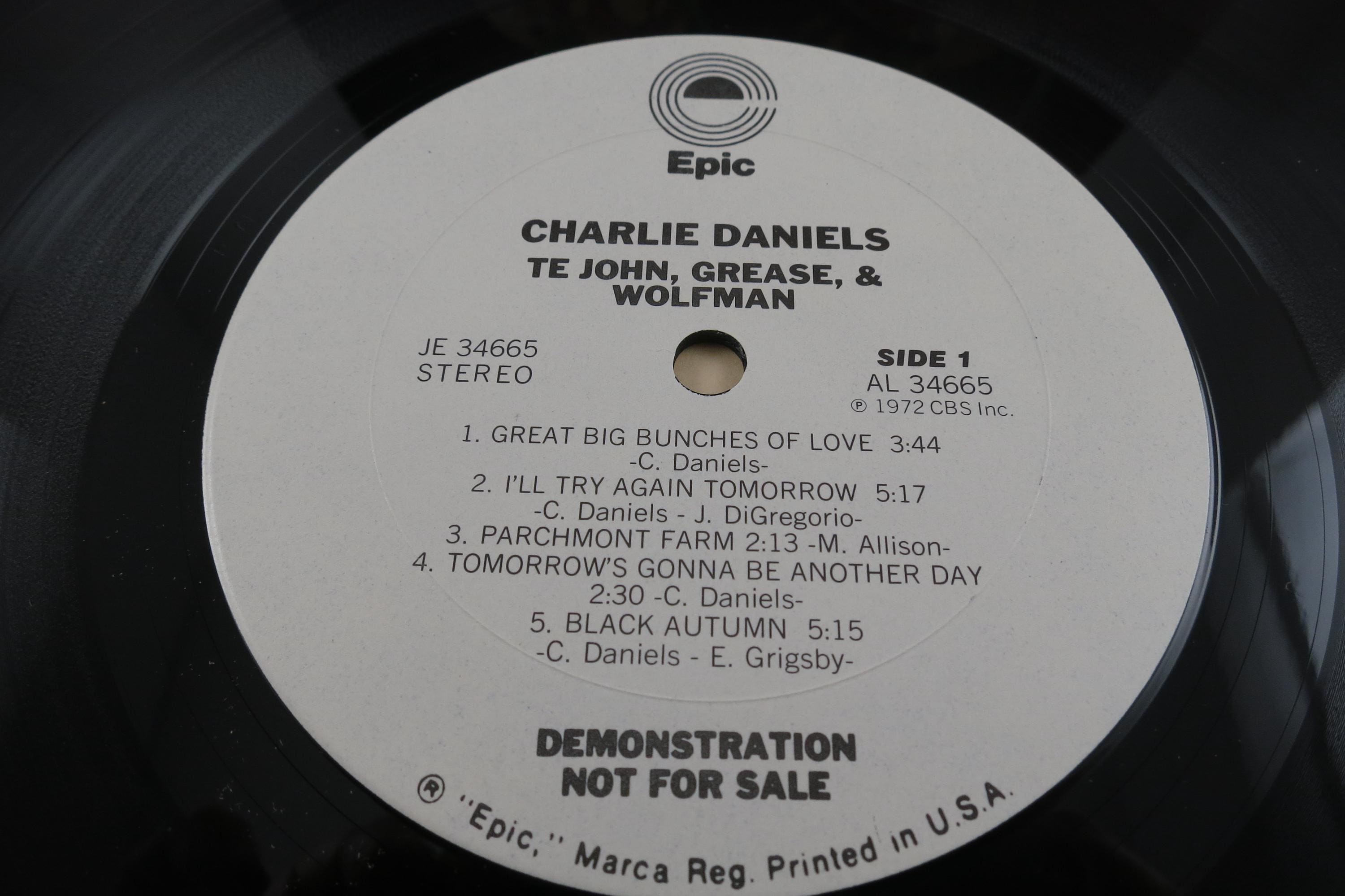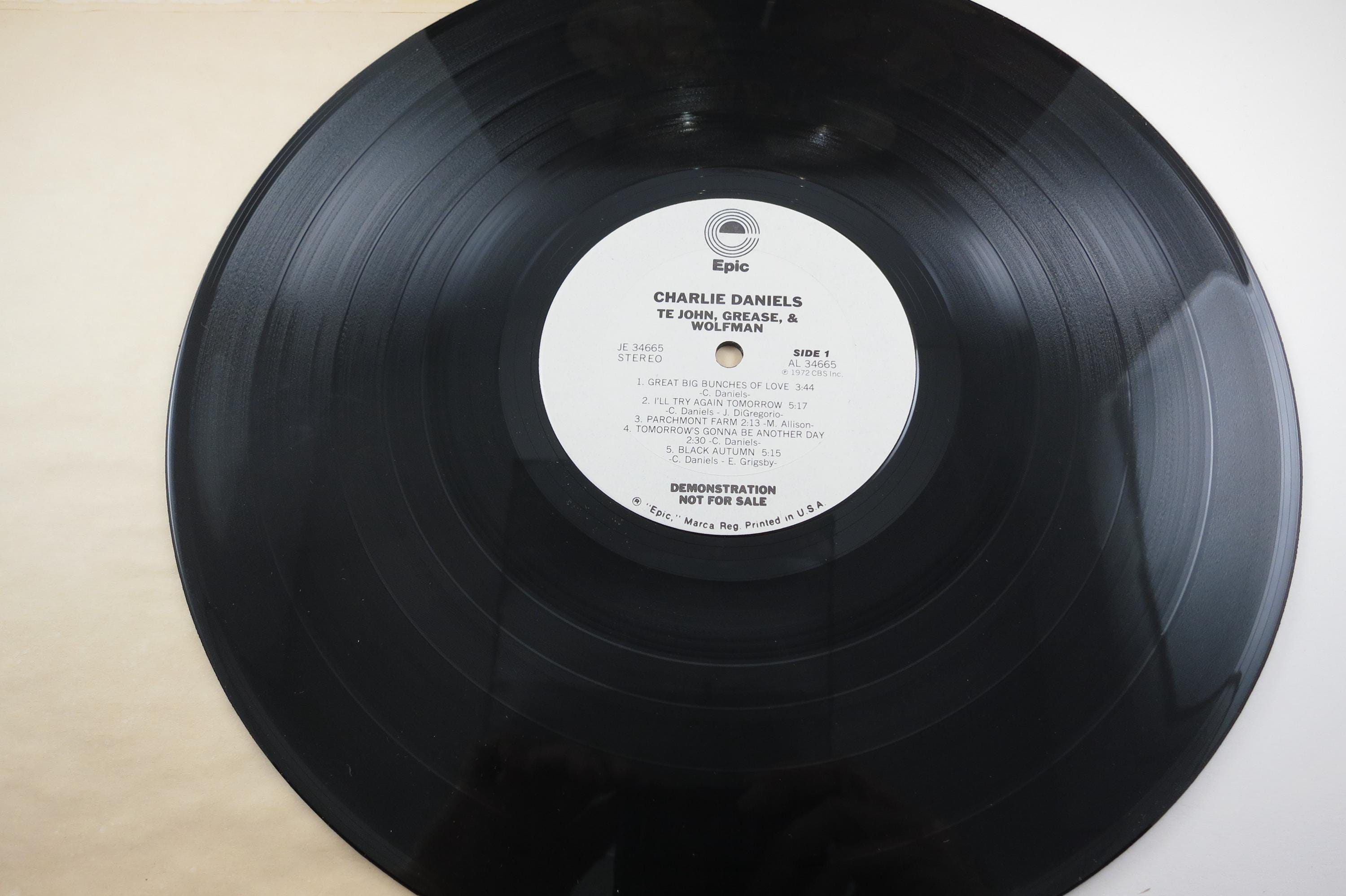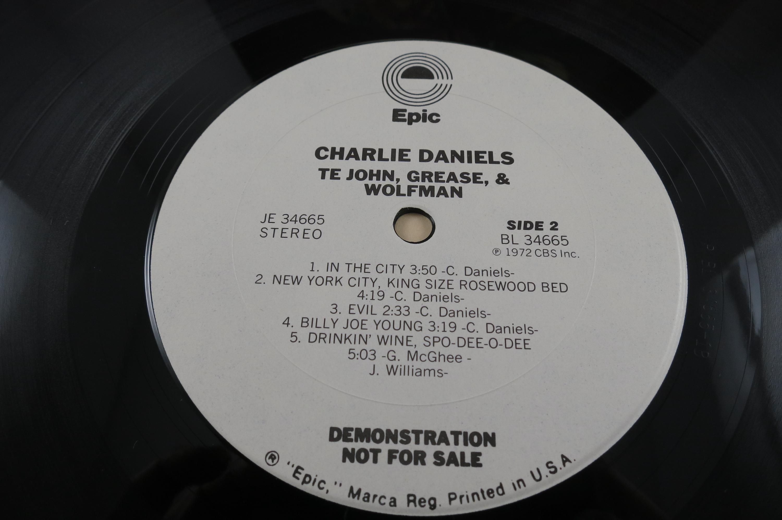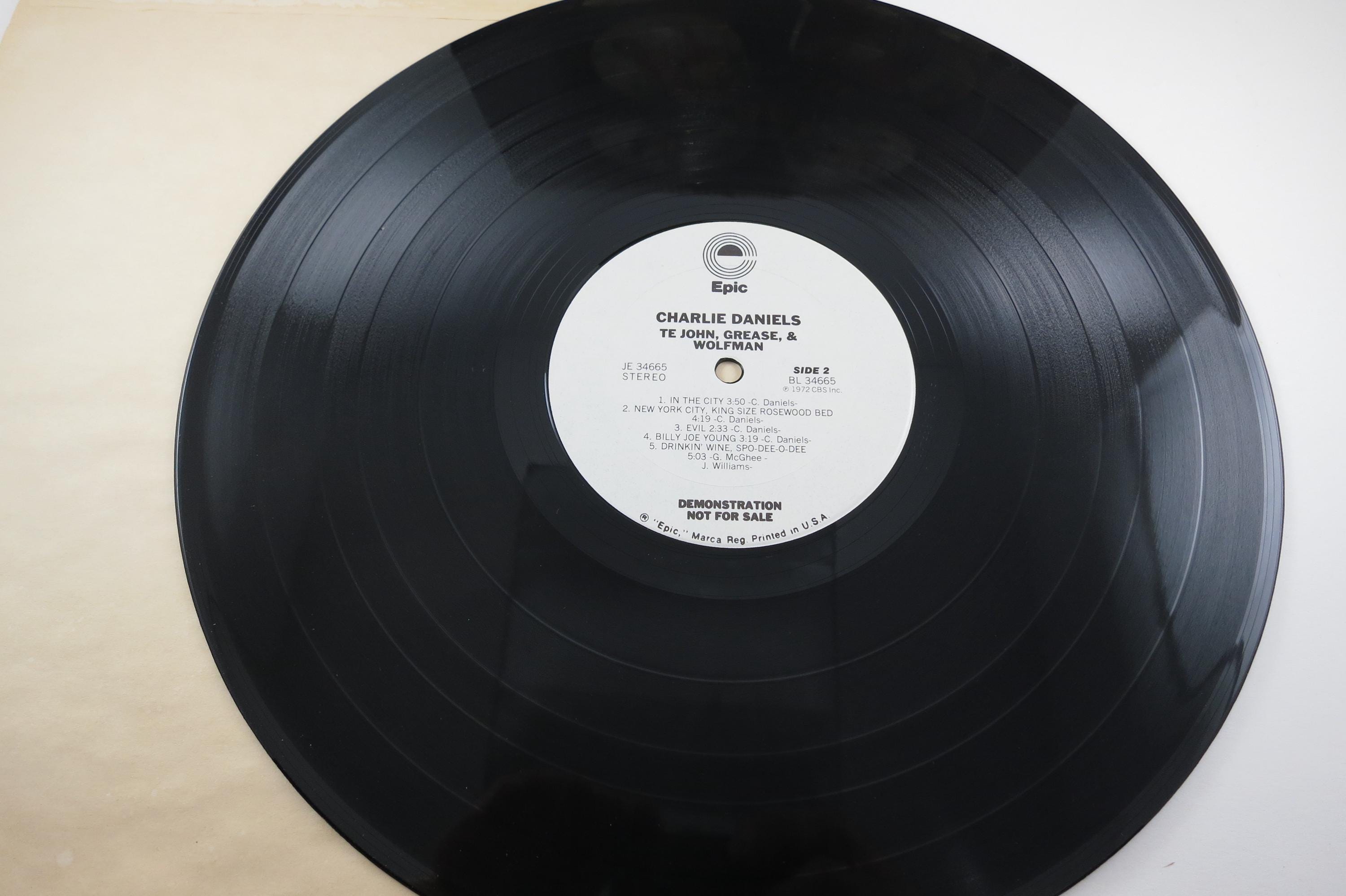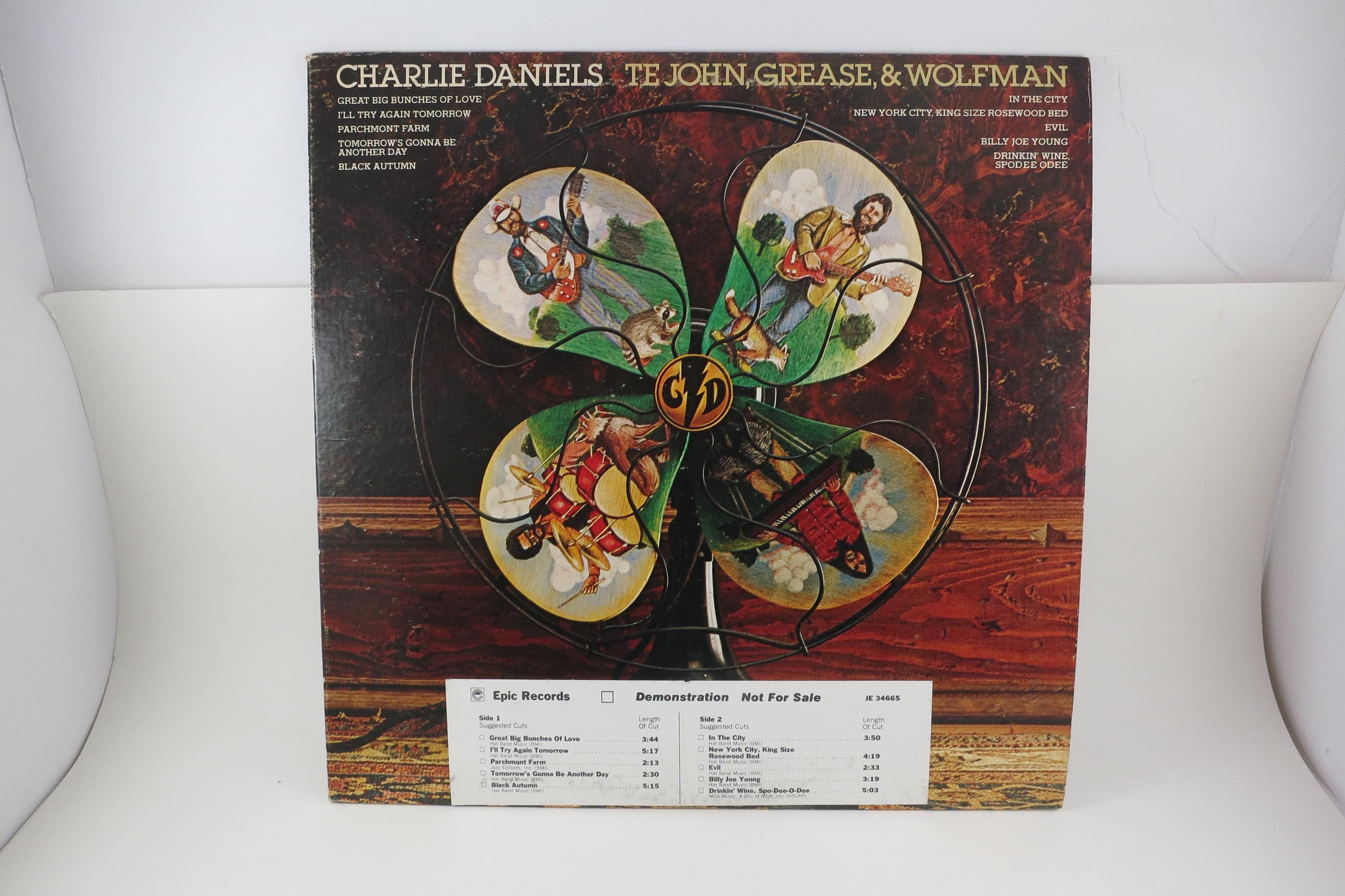 Vintage 1978 Vinyl LP Record TE John, Grease & Wolfman The Charlie Daniels Band Near Mint Condition White Label Promo Pressing. Original cover is in excellent condition and includes the inner paper sleeve, gold promo stamp and radio station timing strip. Record is Near Mint abd is a white label Promo Pressing!!! Tracks are as follows