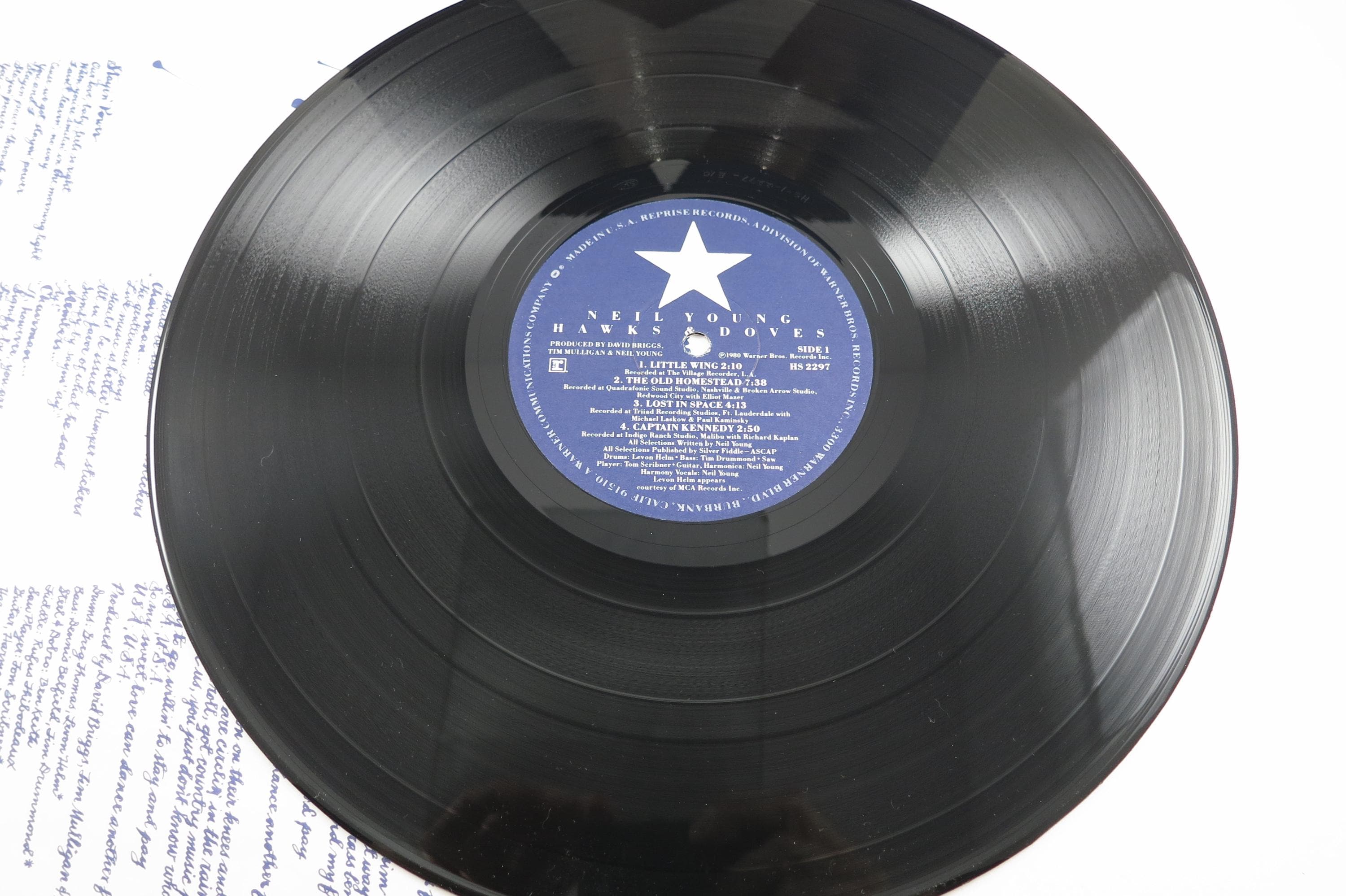 Vintage 1980 Vinyl LP Record Hawks & Doves Neil Young Excellent Condition. Original cover is in excellent condition and includes the original inner paper sleeve. Record is excellent plus. Tracks are as follows